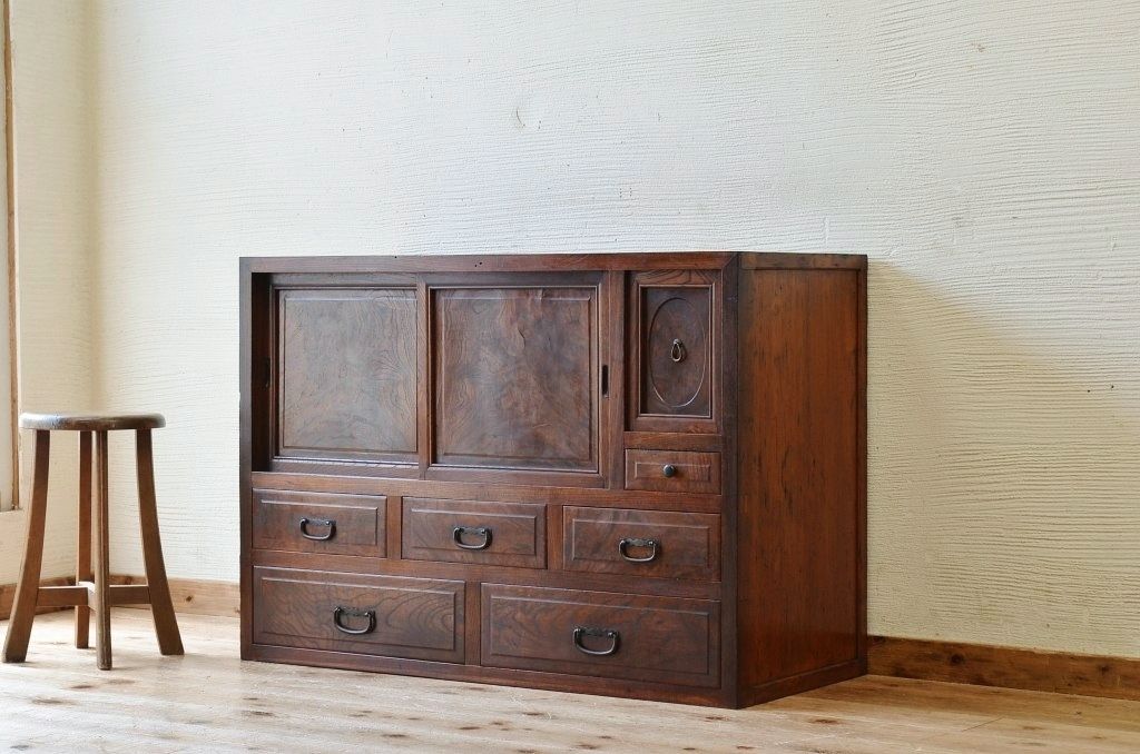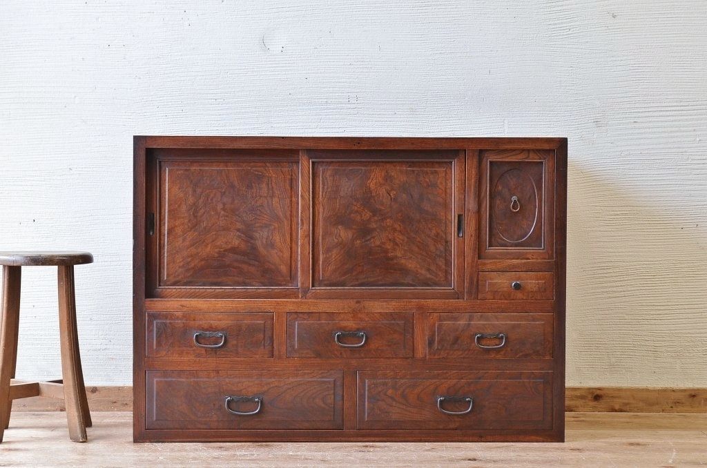 アンティーク家具 前面欅!木目の素晴らしいアンティーク収納棚