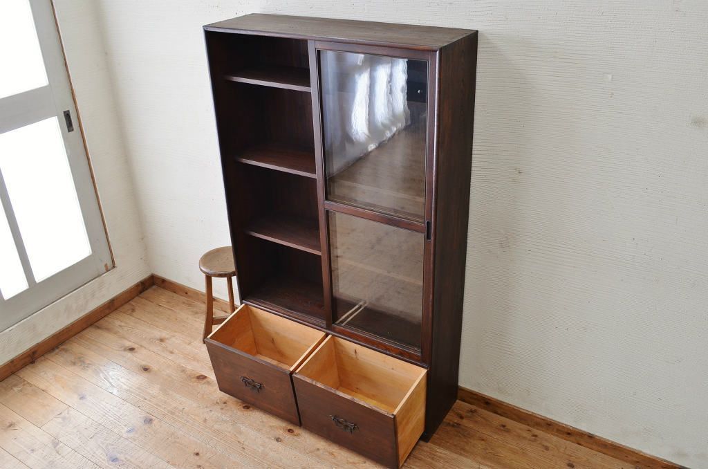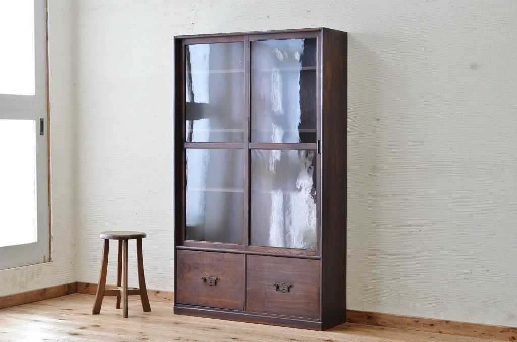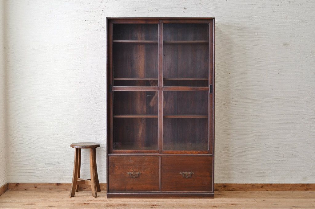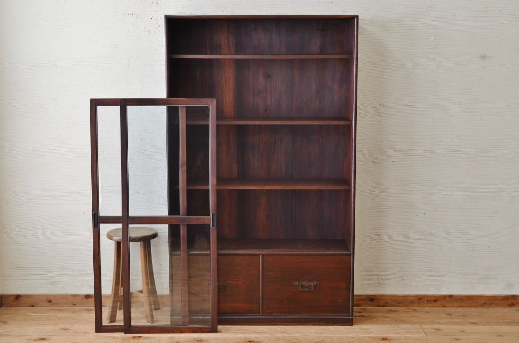 アンティーク家具 古い栓材のアンティーク本棚(収納棚、飾り棚)
