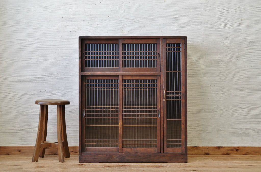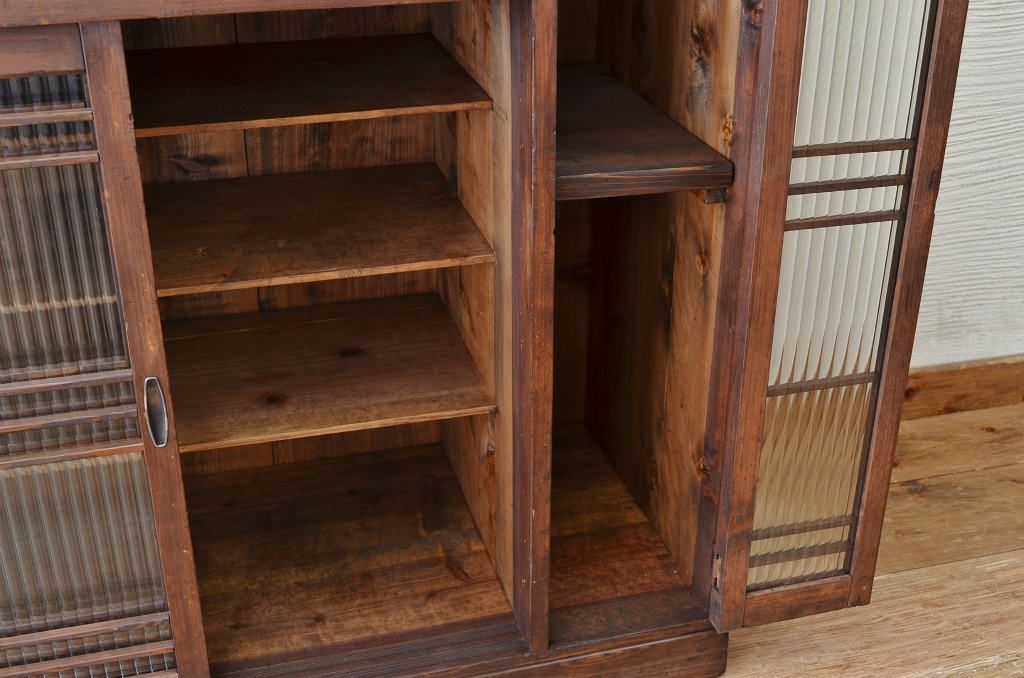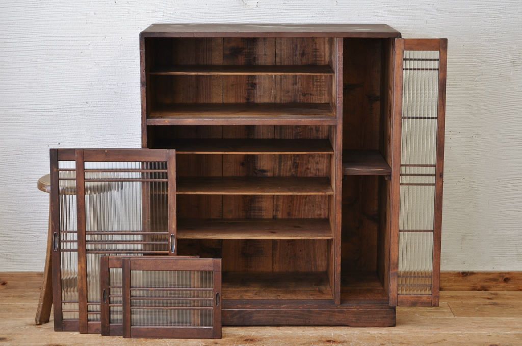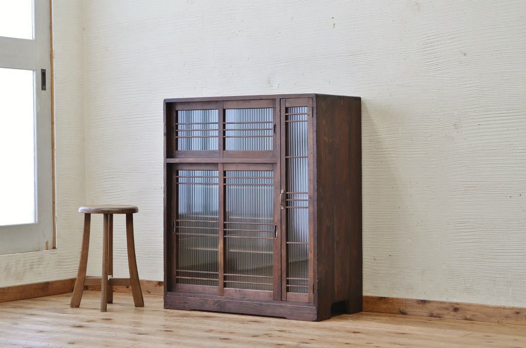 アンティーク家具 モールガラスアンティーク収納棚(下駄箱)