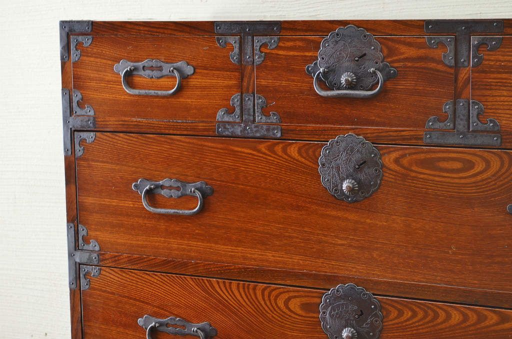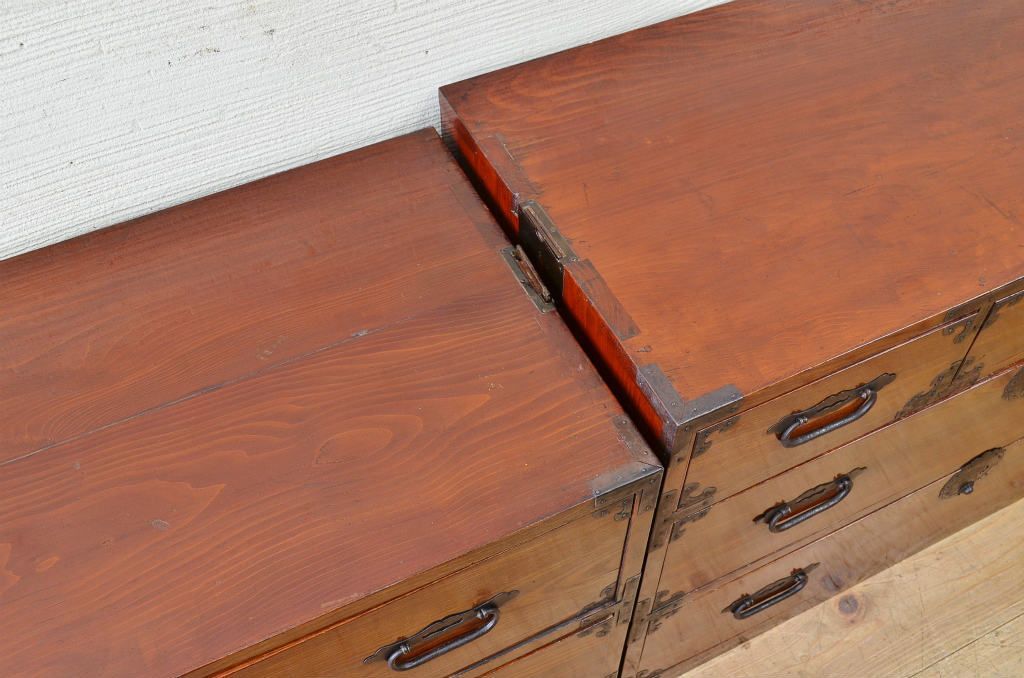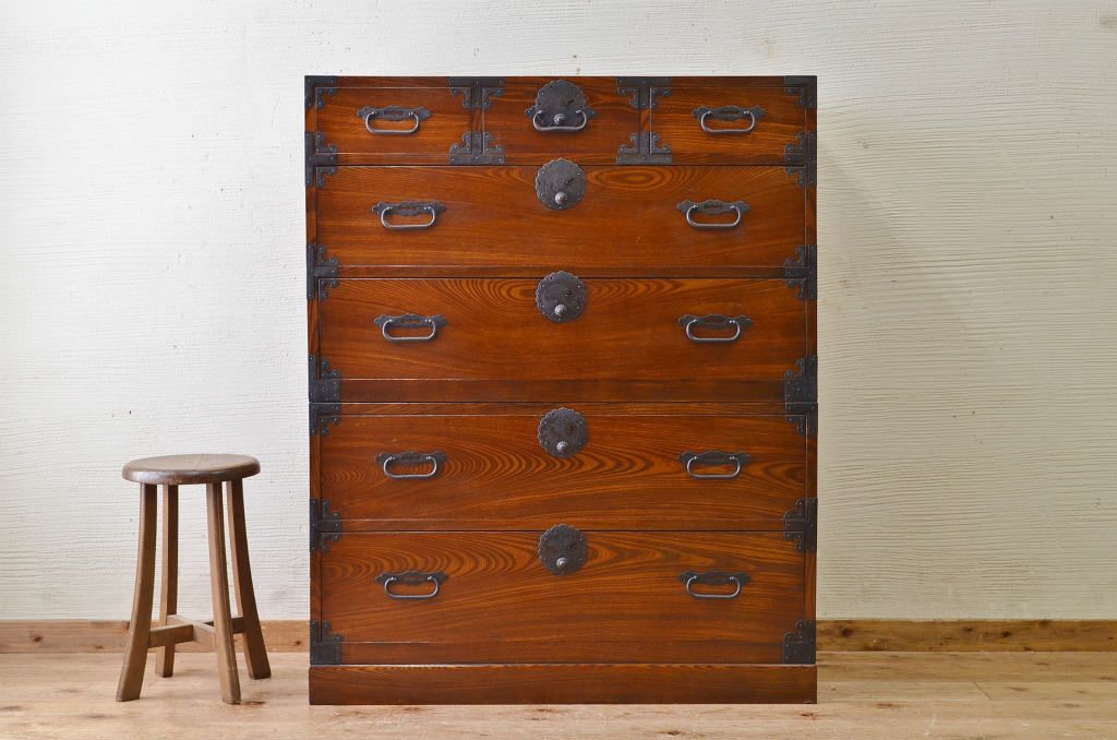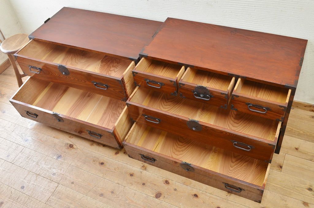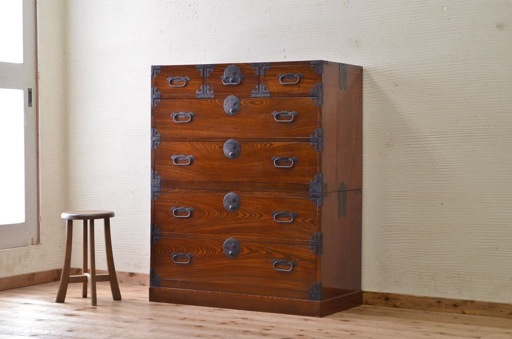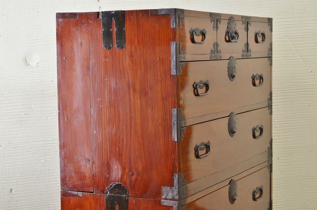 アンティーク家具 ☆木目の素晴らしい二段重ね庄内箪笥