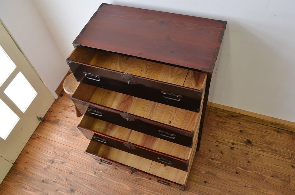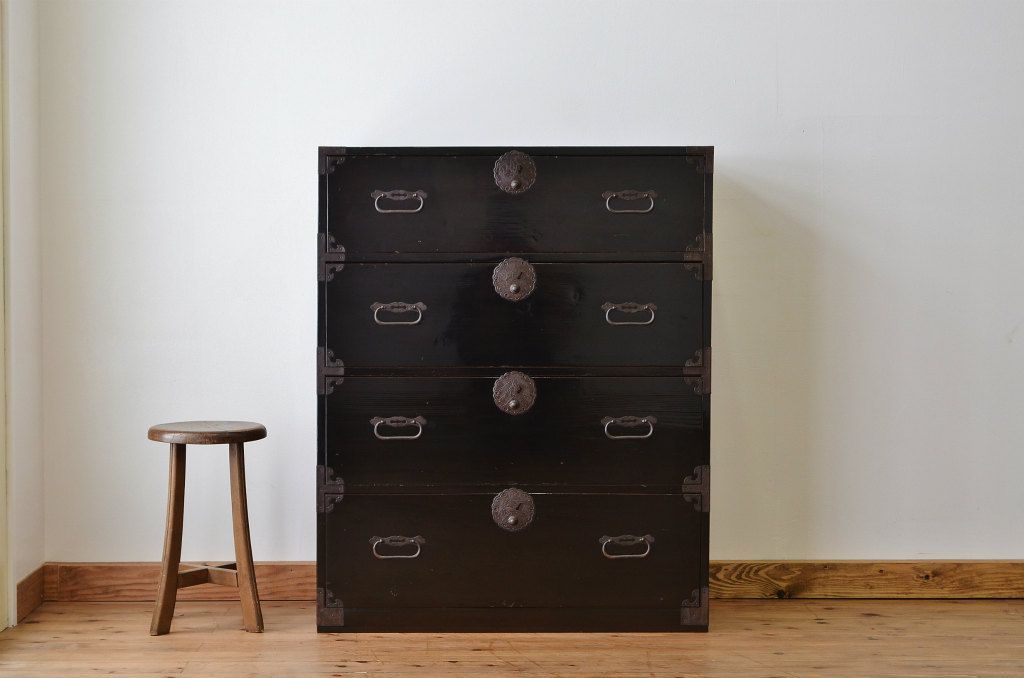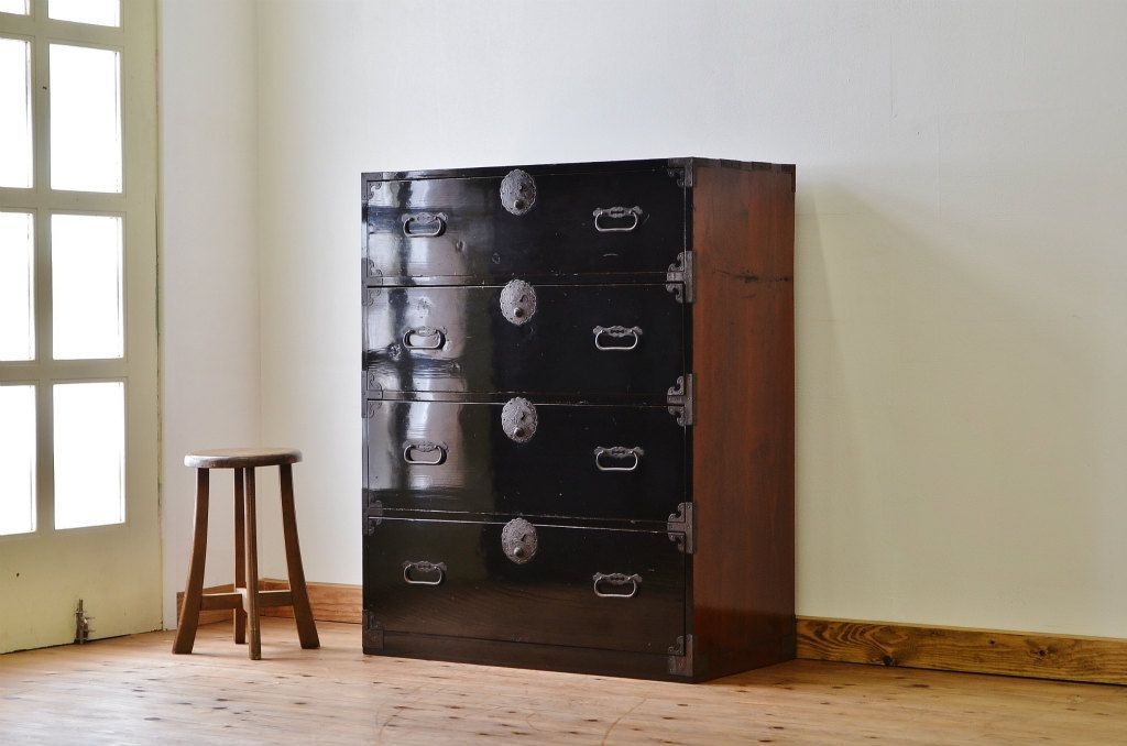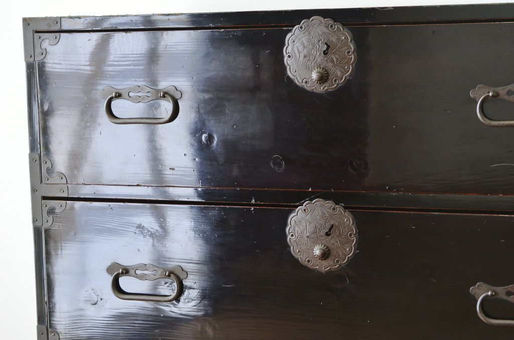 アンティーク家具 漆の綺麗な黒漆庄内箪笥