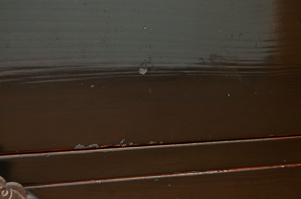 画像にありますように天板にわずかに古い虫食い跡がありますが、使用上、強度上に問題はありません。