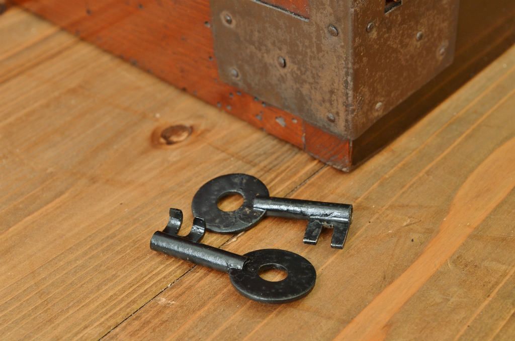 鍵は付属します。画像にありますように、袋に入れお付けします。スムーズに動くように調整していますが、あくまでも古いものや中古品ですので、長期の使用保証は出来かねます。ご購入後不具合が発生した場合は、当店でサポートさせていただきますので、お気軽にご相談くださいませ。