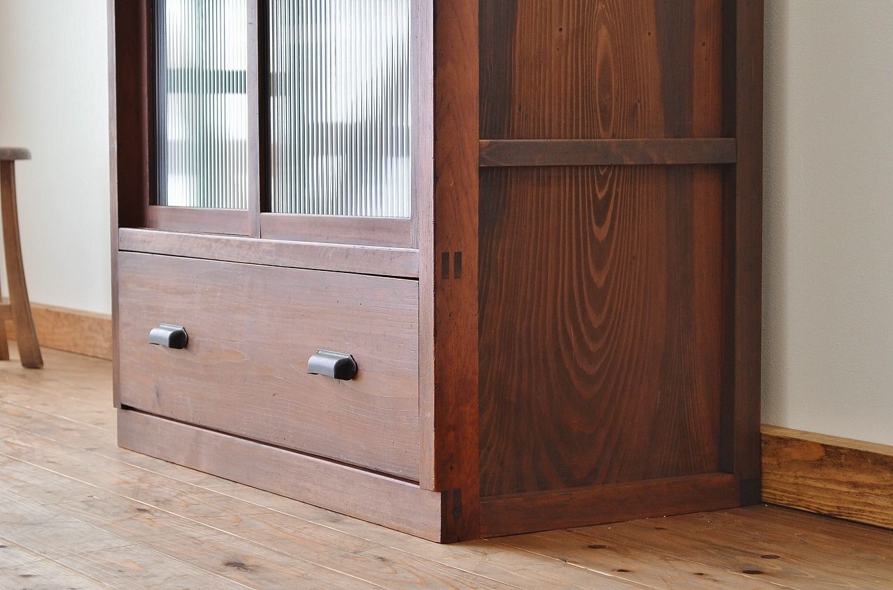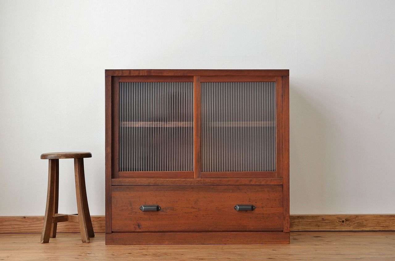 アンティーク家具 シンプルなモールガラスアンティーク収納棚