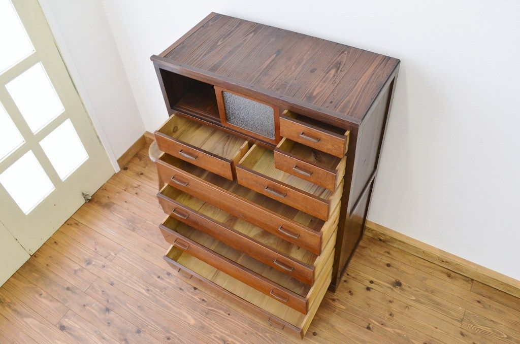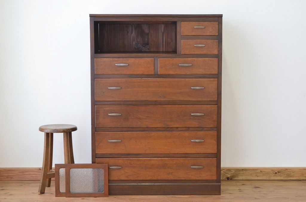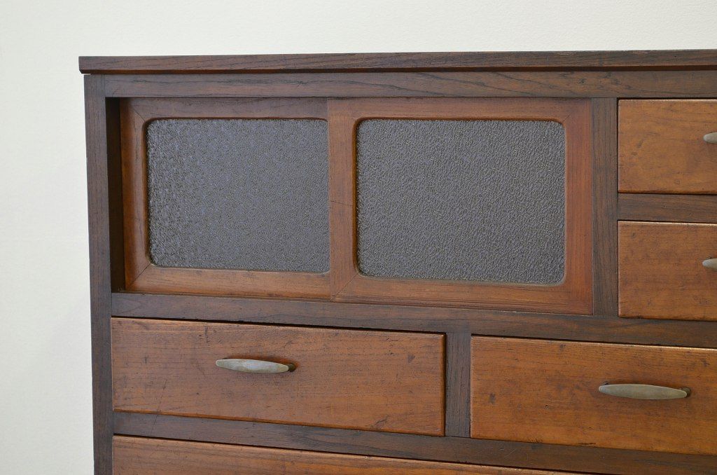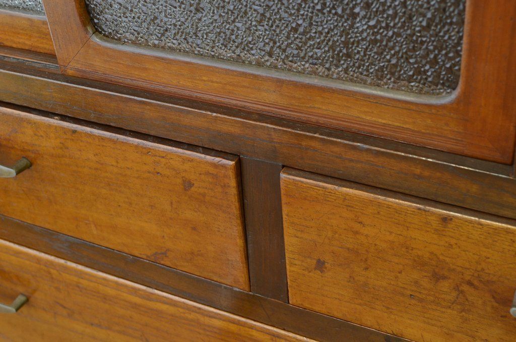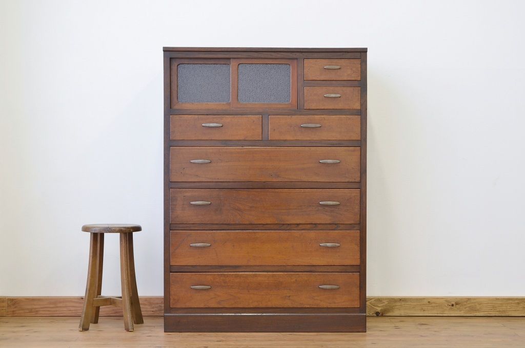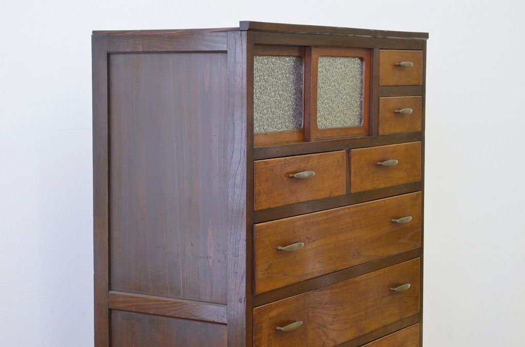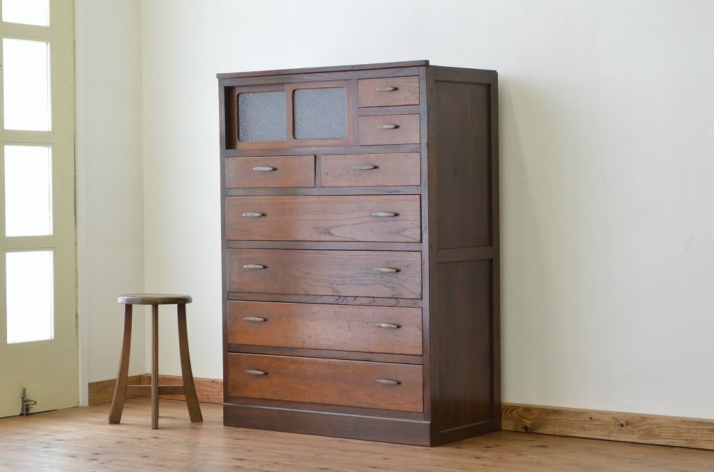 アンティーク家具 ★前面欅!ダイヤガラスアンティークチェスト(箪笥)