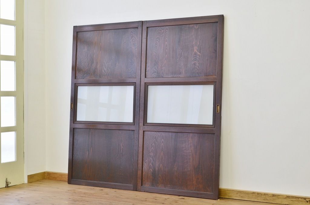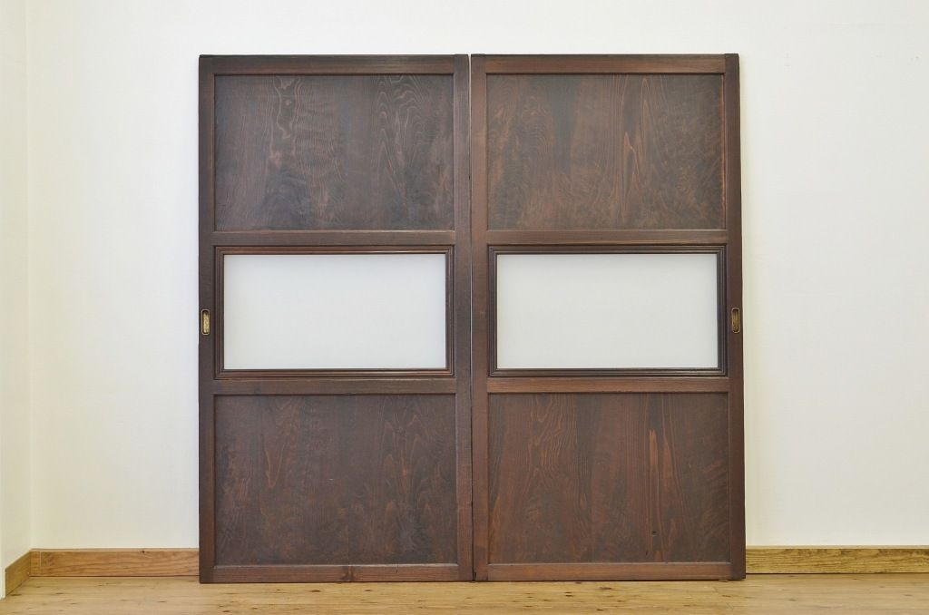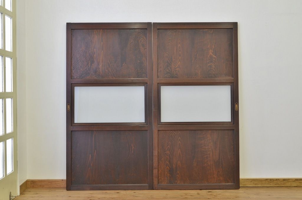 ★古い木のシックなガラス帯戸2枚セット(アンティーク)
