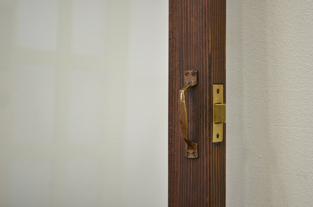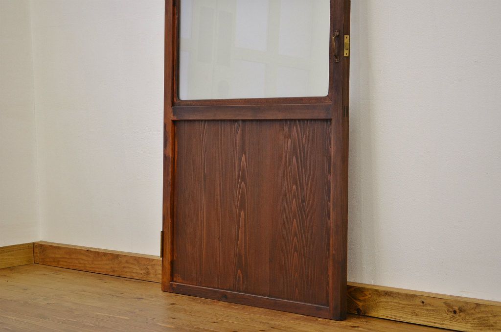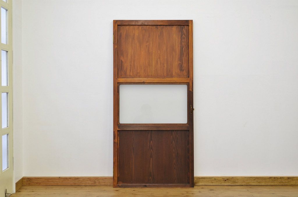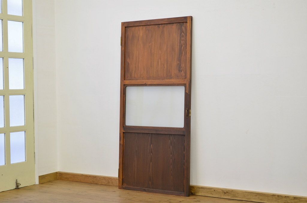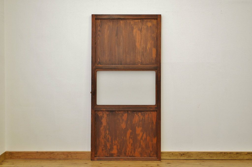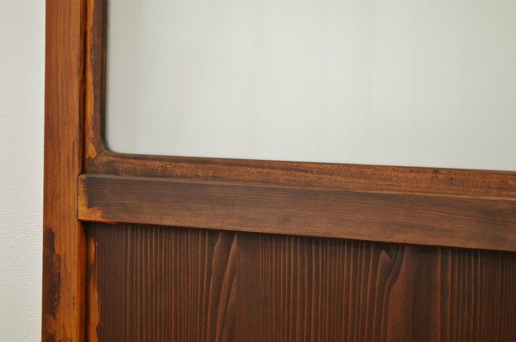 古い木のすりガラス入りドア1(ガラス帯戸、アンティーク)