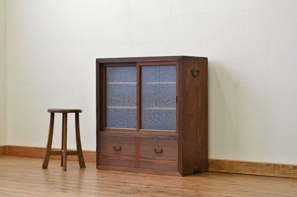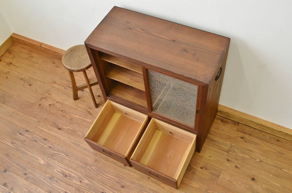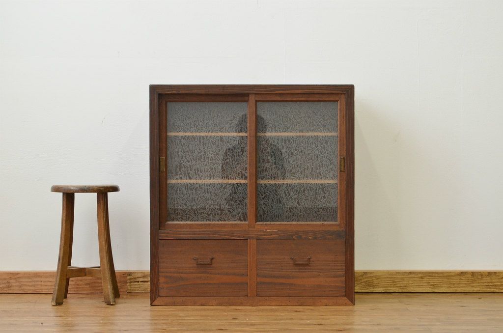 結霜ガラスの引き出し付収納棚(食器棚)です。
