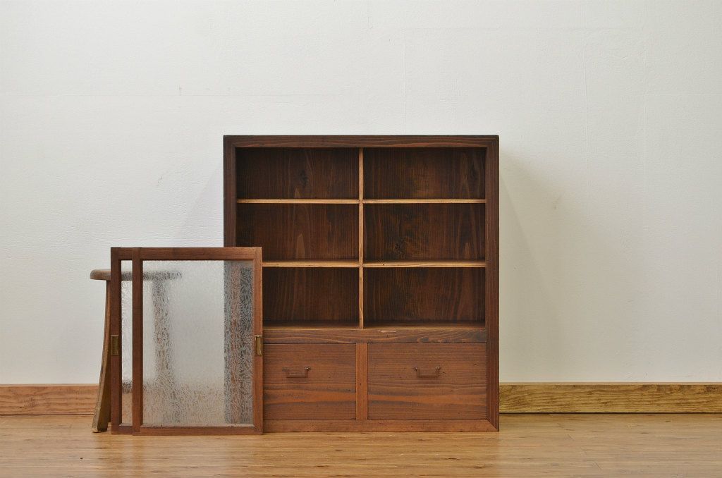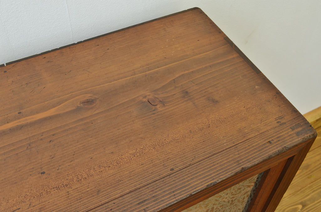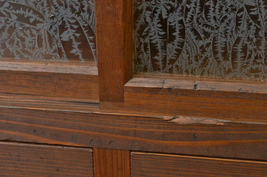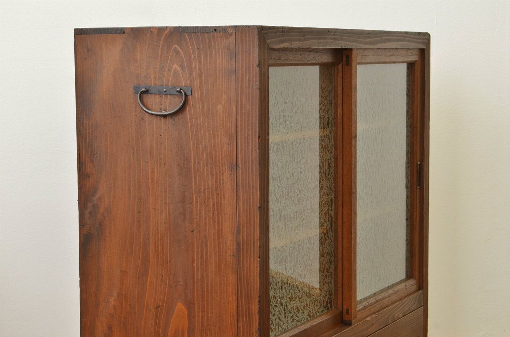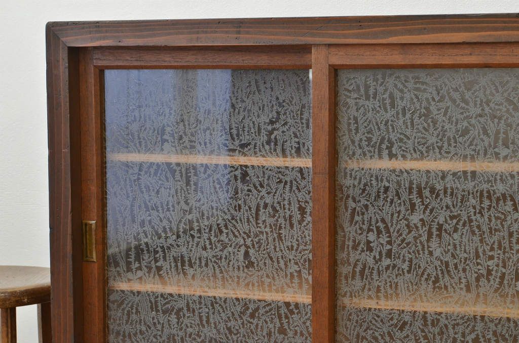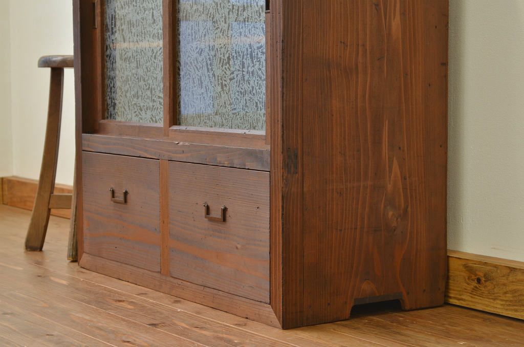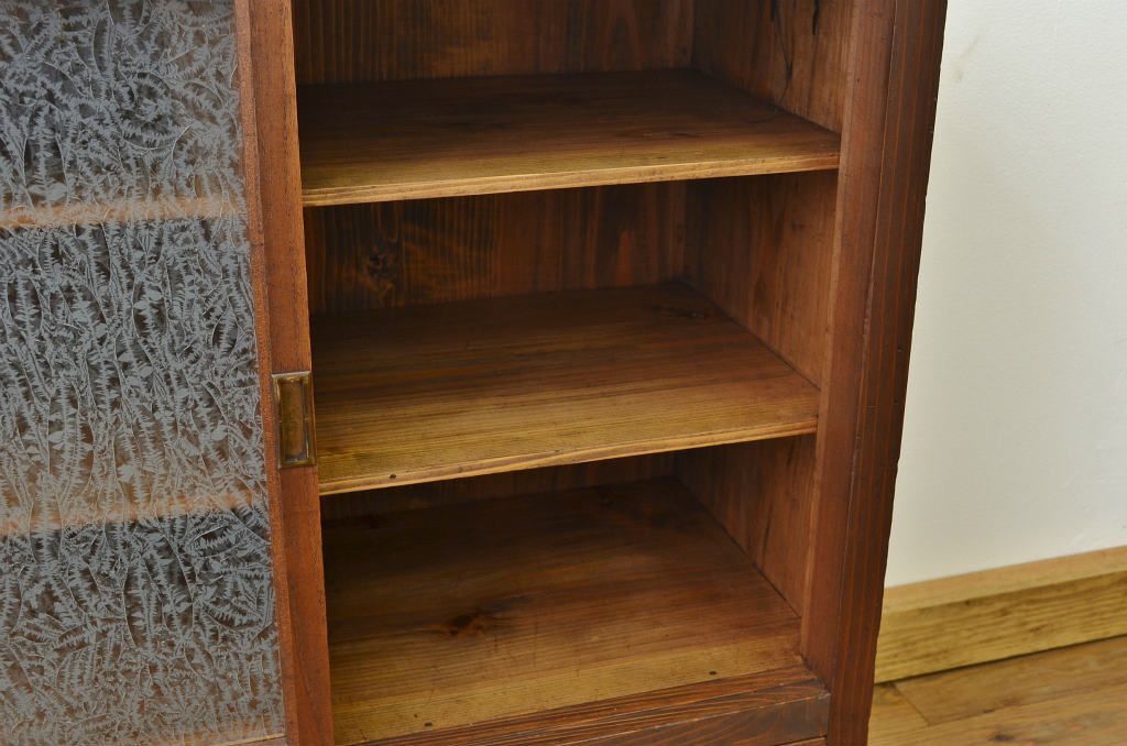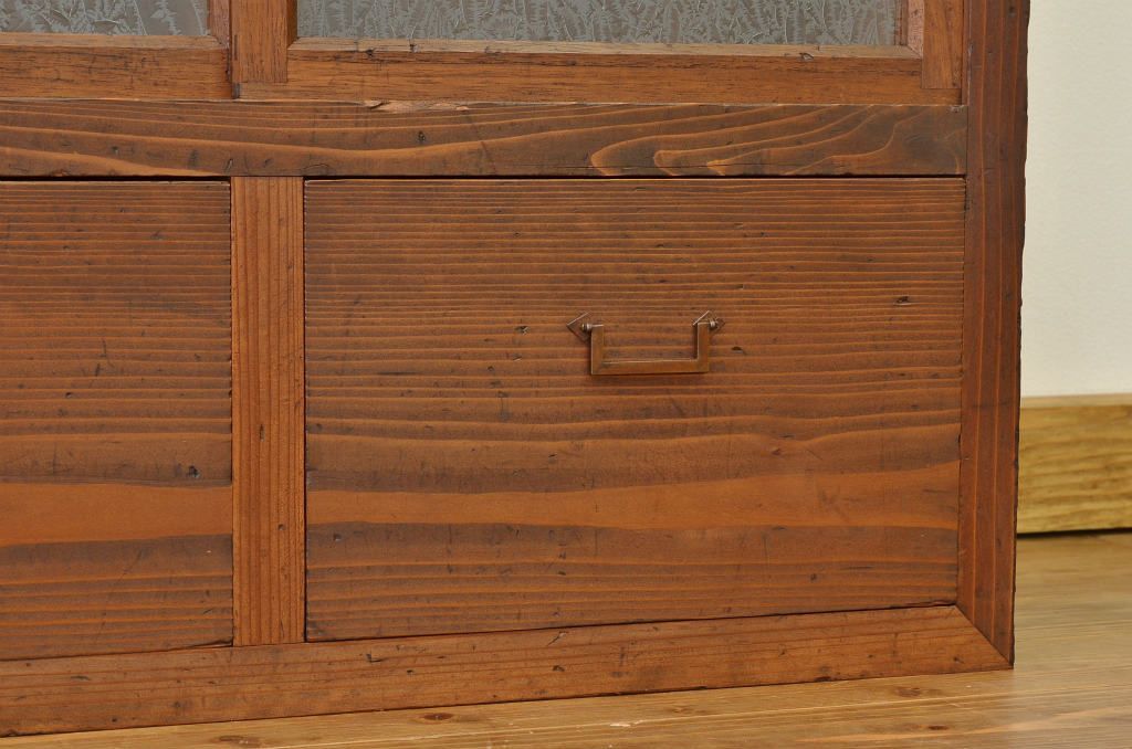 アンティーク家具 アンティーク 結霜ガラスの引き出し付収納棚(食器棚)