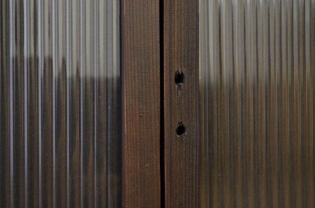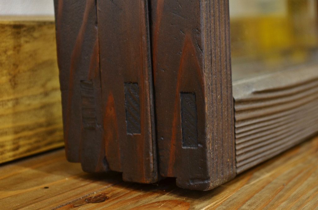 片面は若干雨風にさらされたため荒れ、木部痩せがありますが、使用上、強度上に問題はありません。