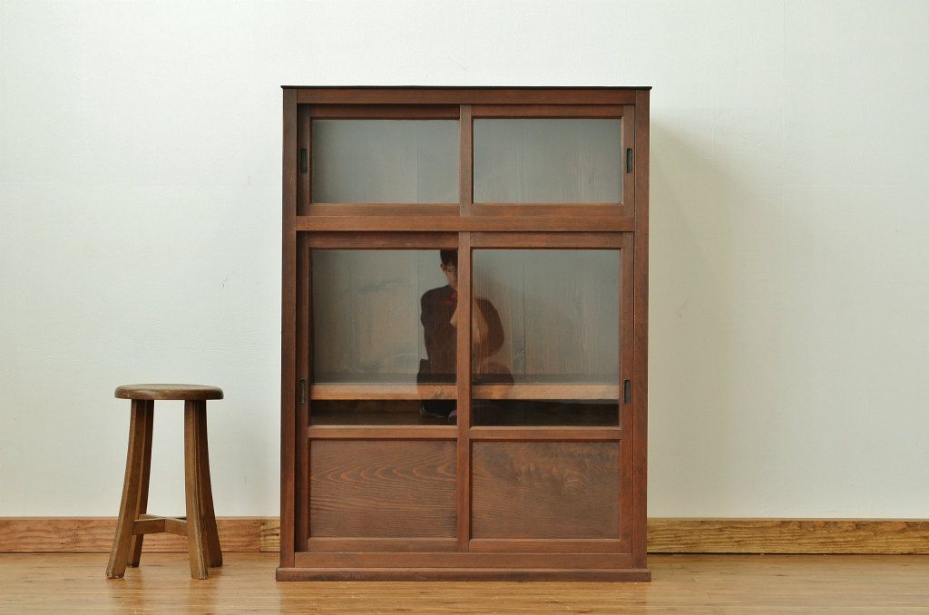 アンティーク家具 アンティーク 古い木のシンプルな収納棚(食器棚)