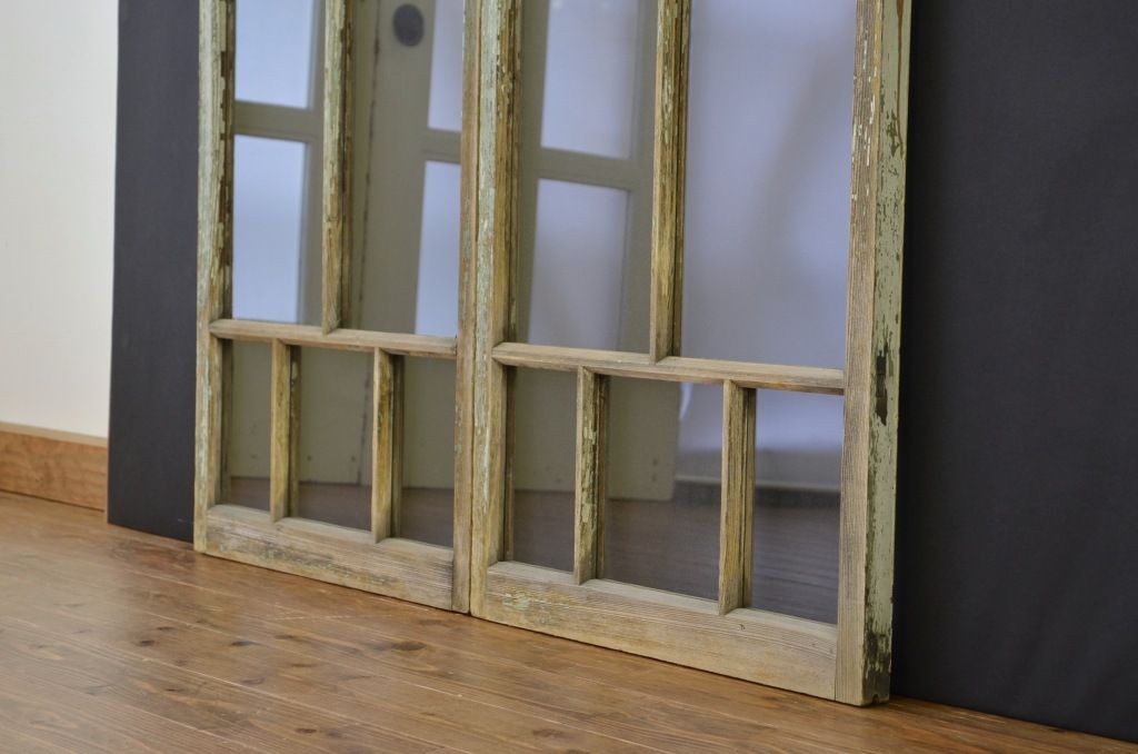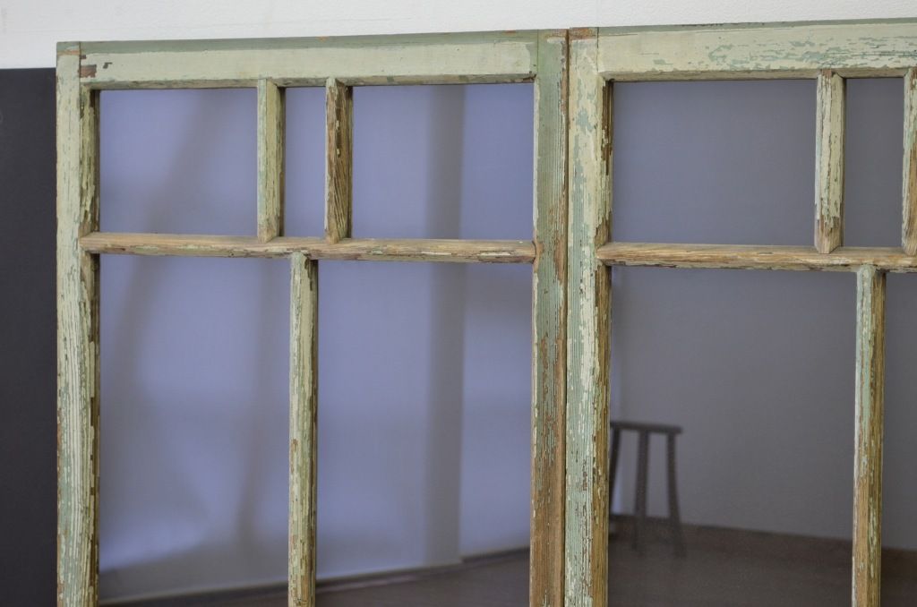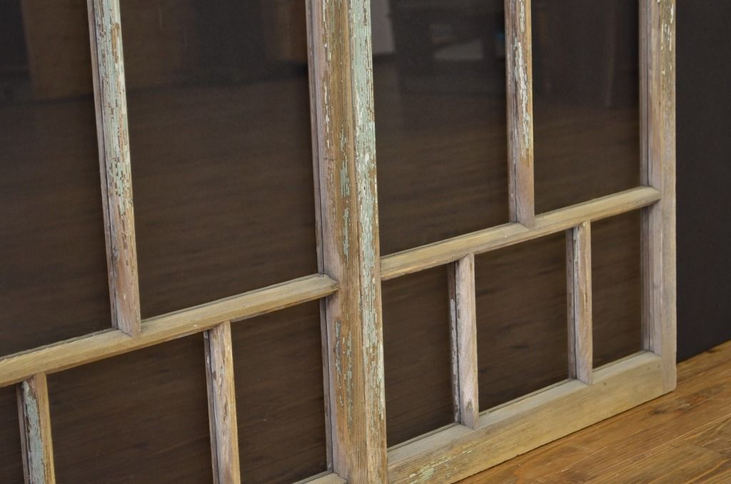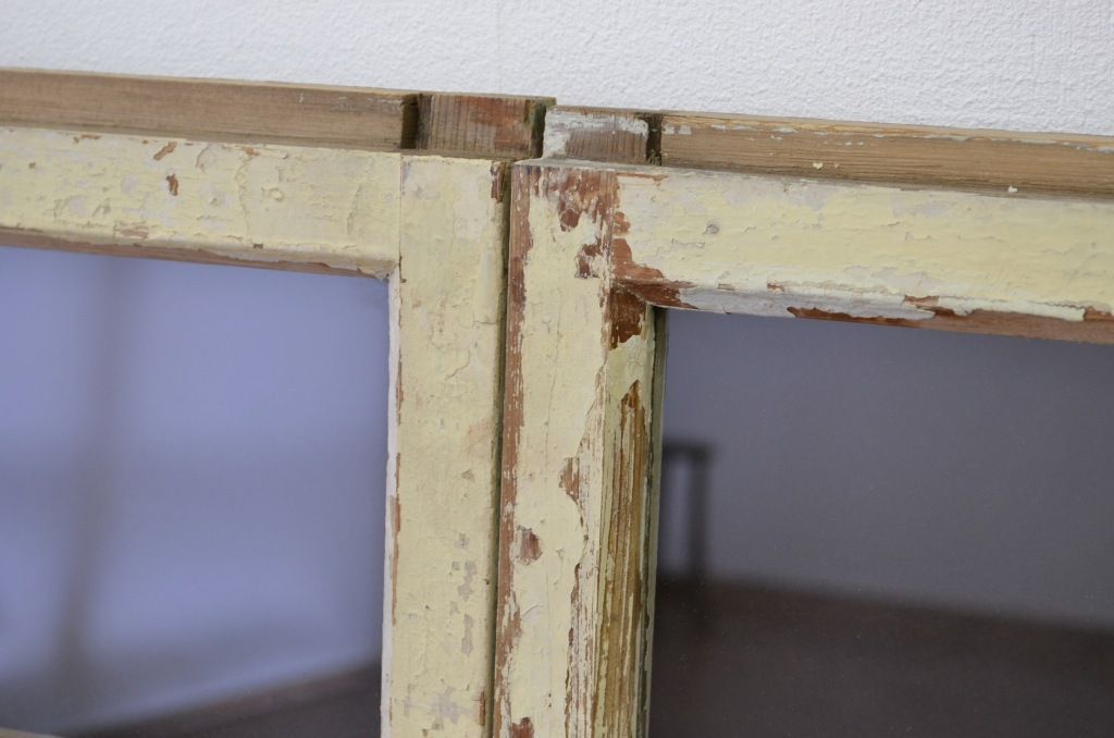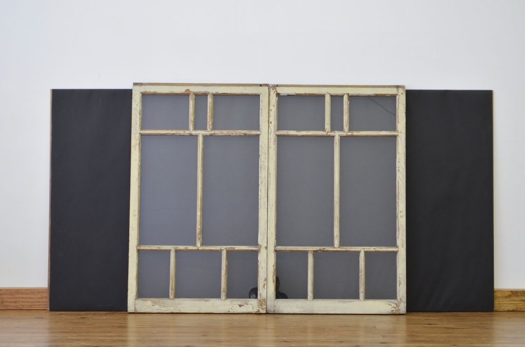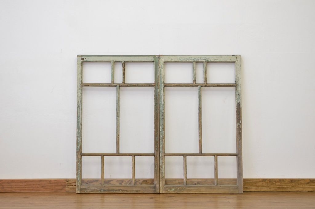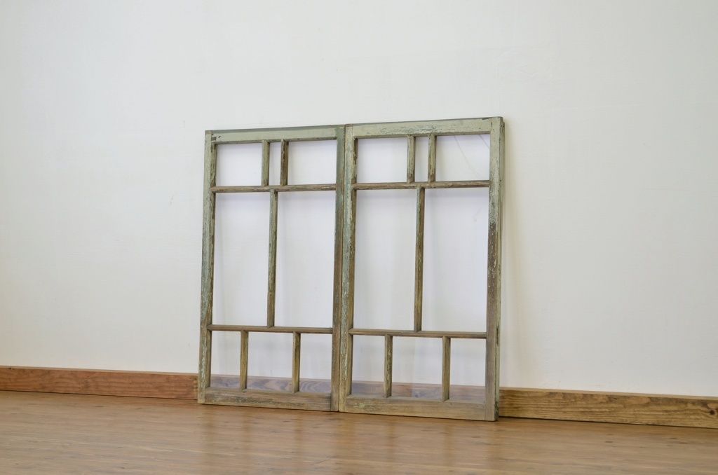 アンティーク ペンキの剥げたガラス窓2枚セット(引き戸、ガラス戸)