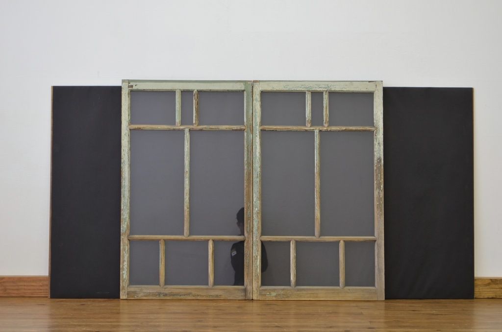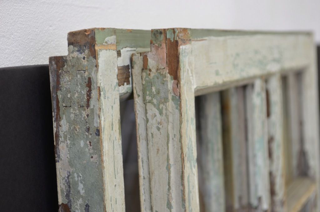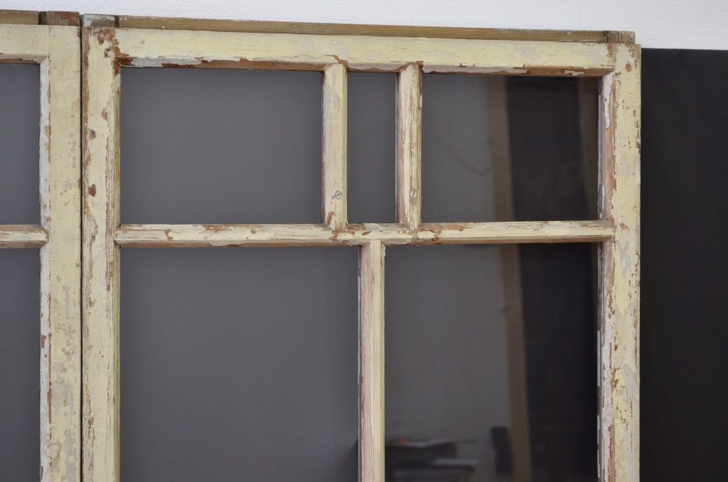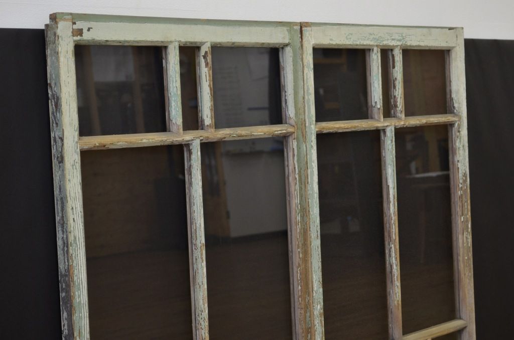 ペンキの剥げたガラス窓2枚セット(引き戸、ガラス戸)です。
