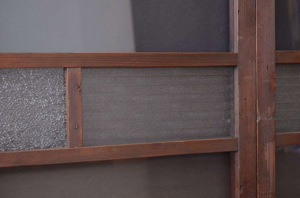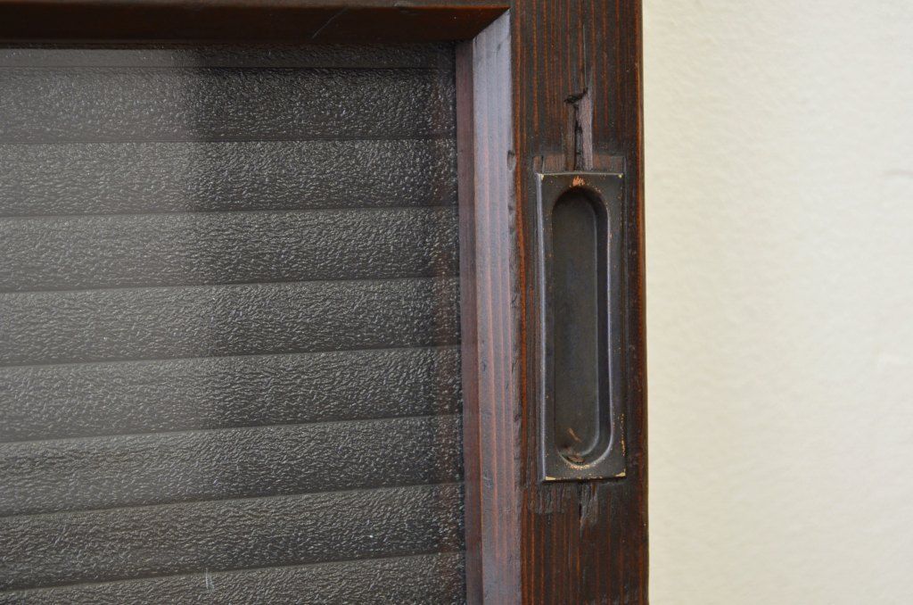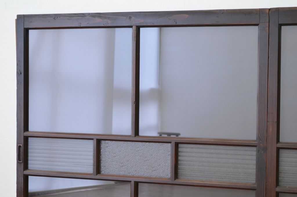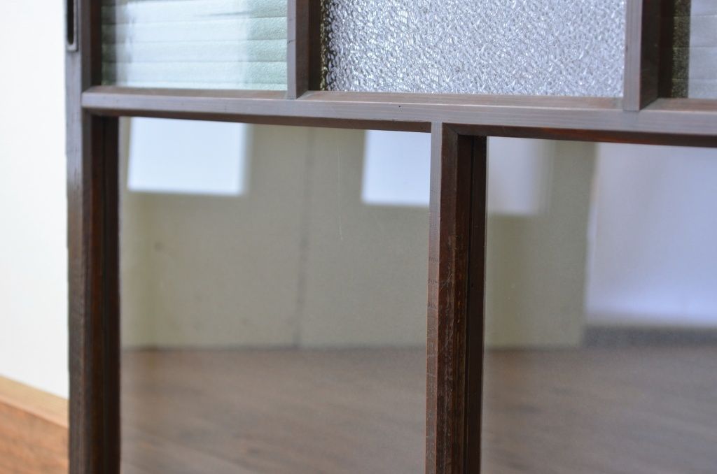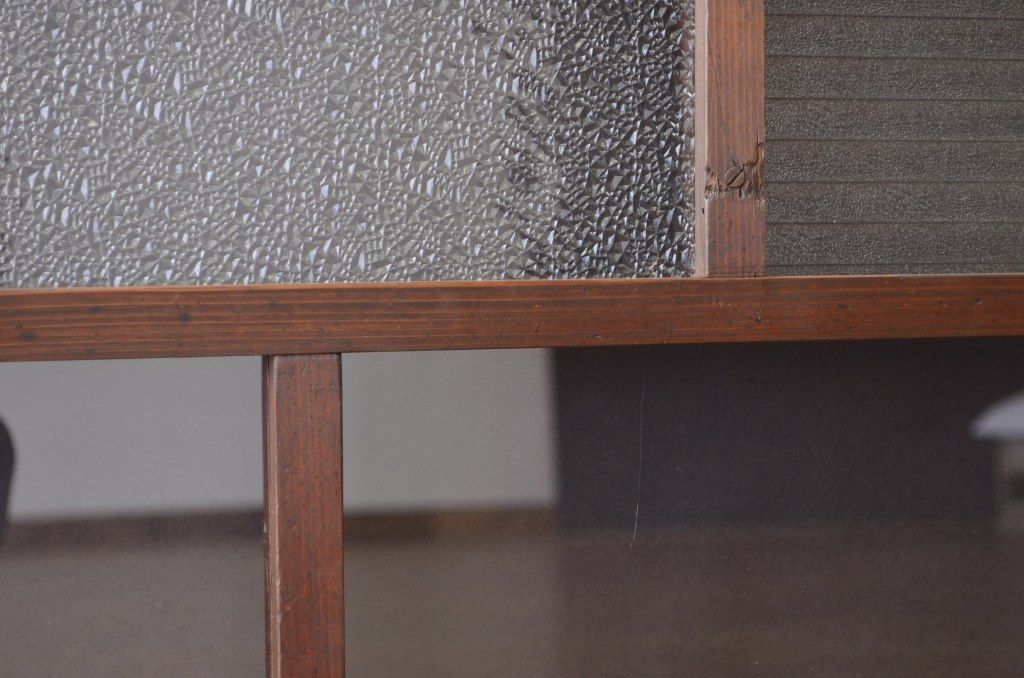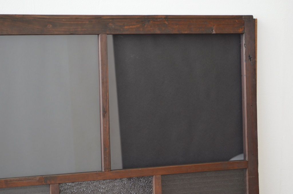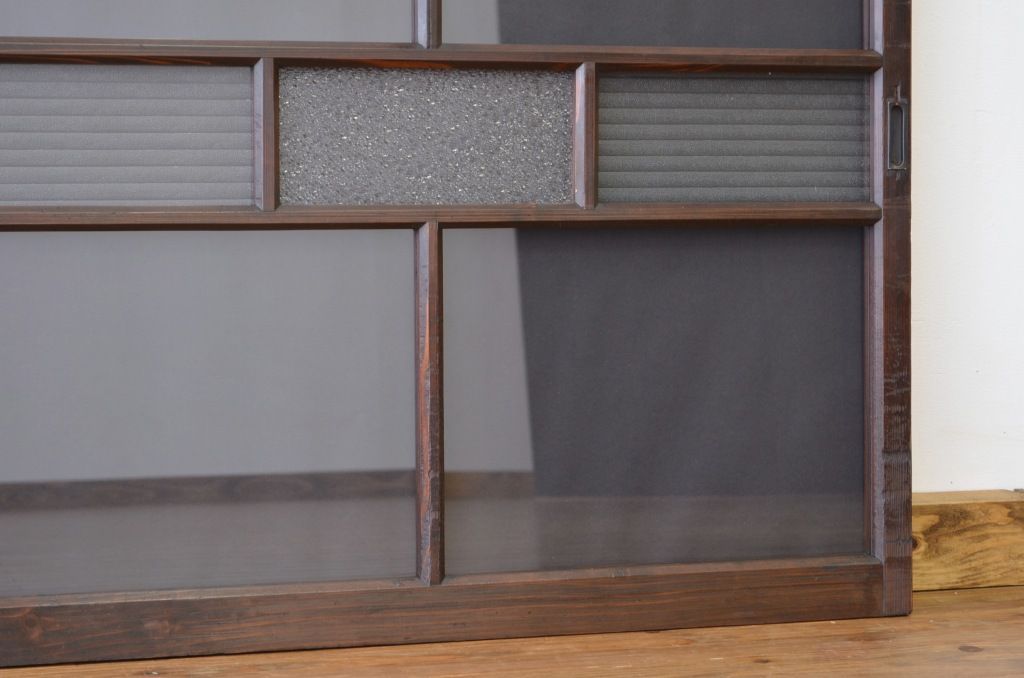アンティーク 古い木のダイヤと銀モールガラスが入った窓2枚セット(引き戸、ガラス戸)