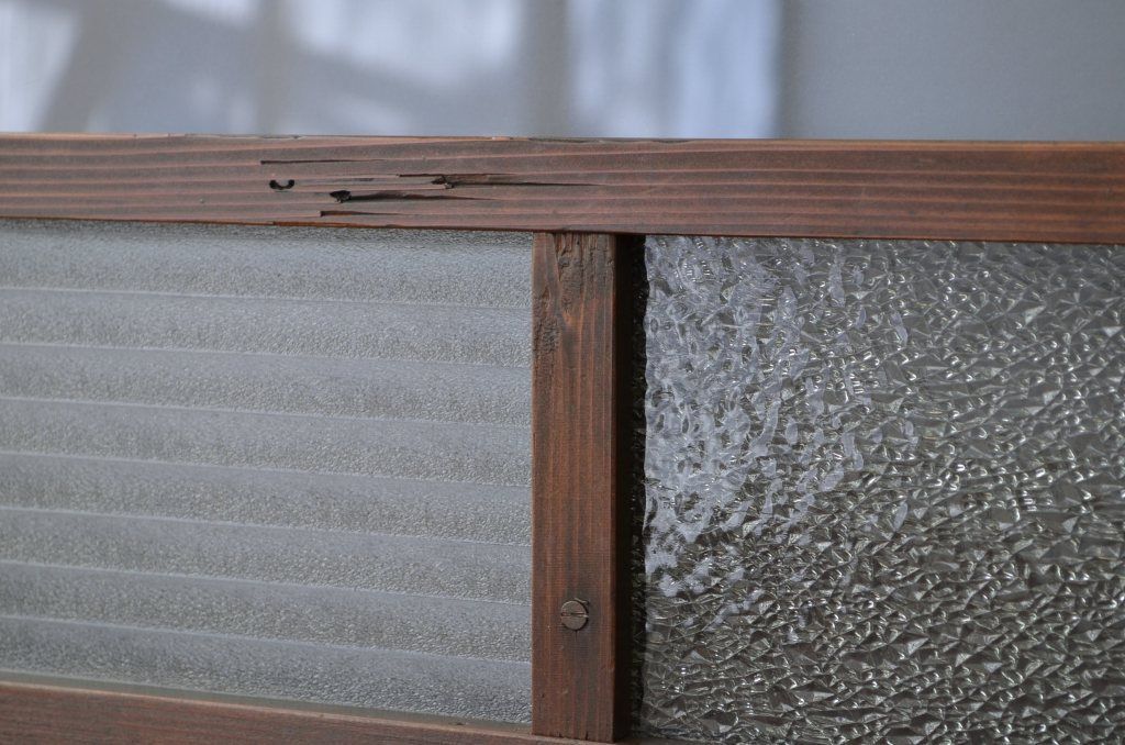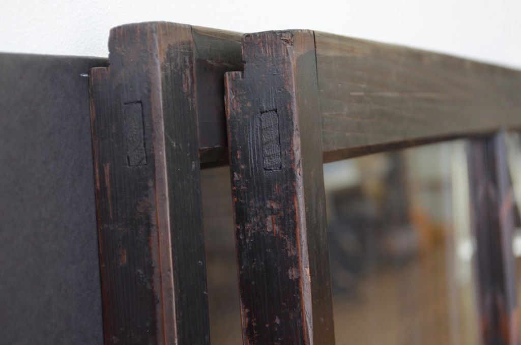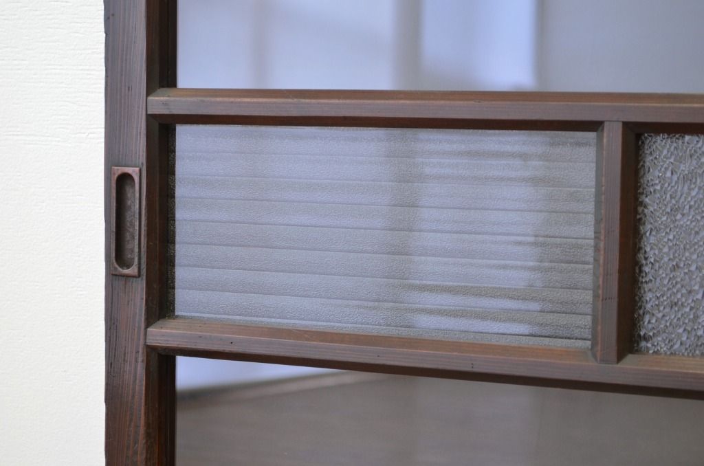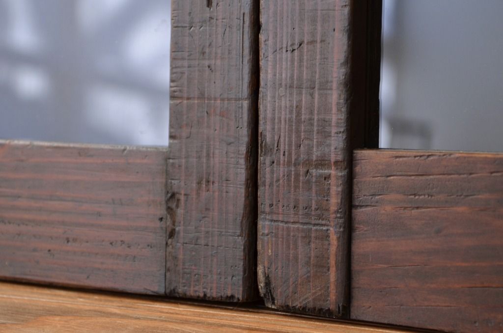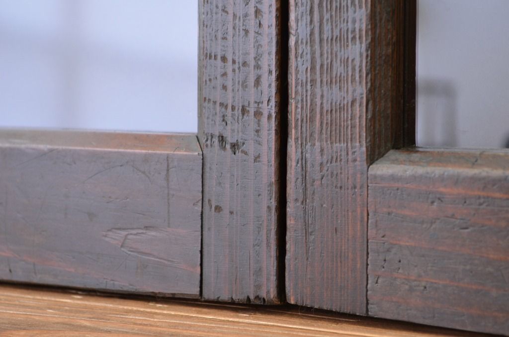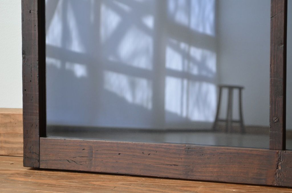 アンティーク 古い木のダイヤと銀モールガラスが入った窓2枚セット(引き戸、ガラス戸)