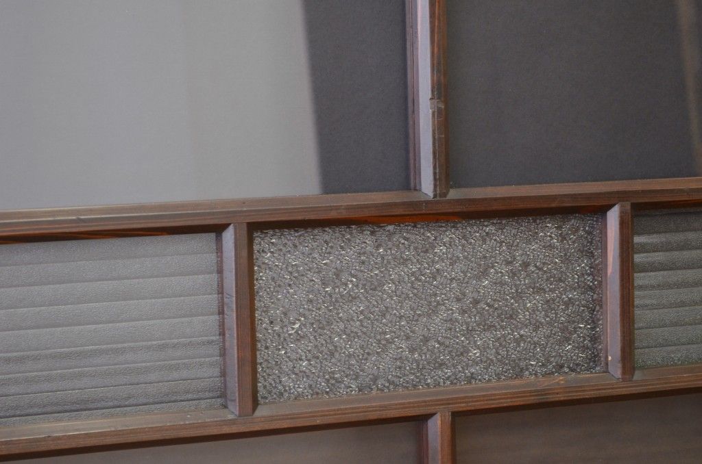 古い木のダイヤと銀モールガラスが入った窓2枚セット(引き戸、ガラス戸)です。