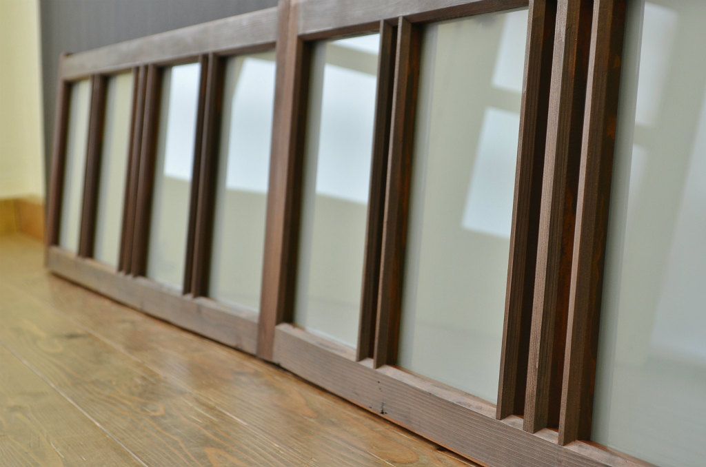 アンティーク シンプルな木の明り取り2枚セット(欄間)