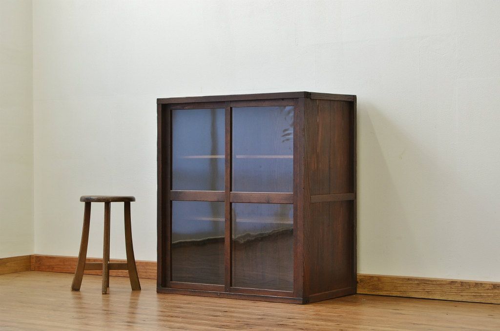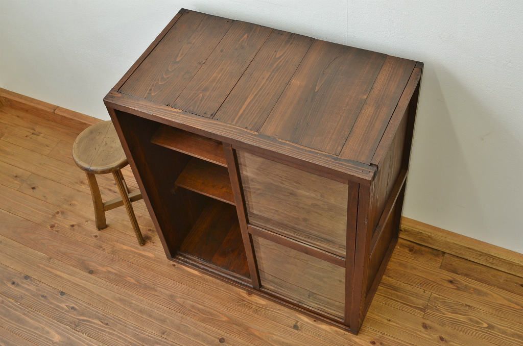 アンティーク家具 アンティーク 古い木の使い込まれた収納棚(食器棚)
