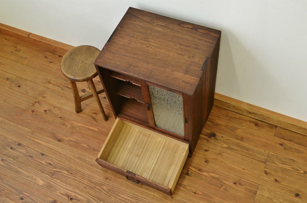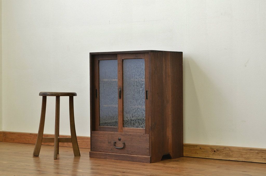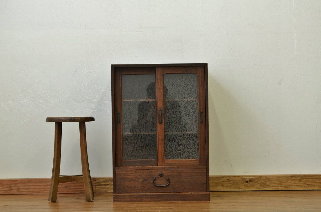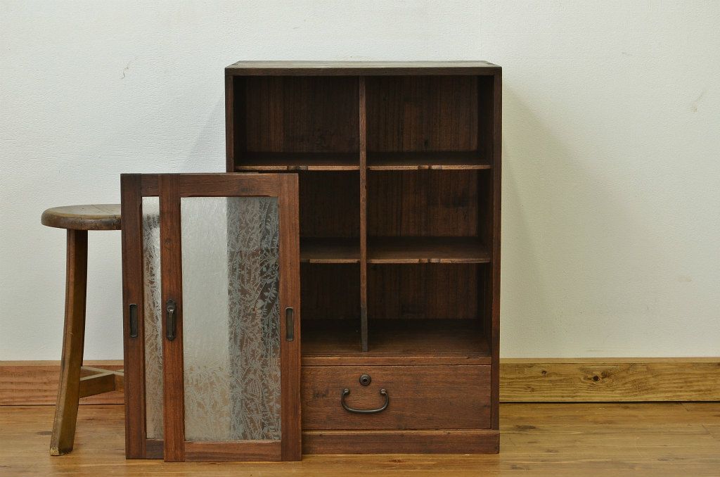 アンティーク家具 アンティーク 小さな結霜ガラス収納棚(本箱)