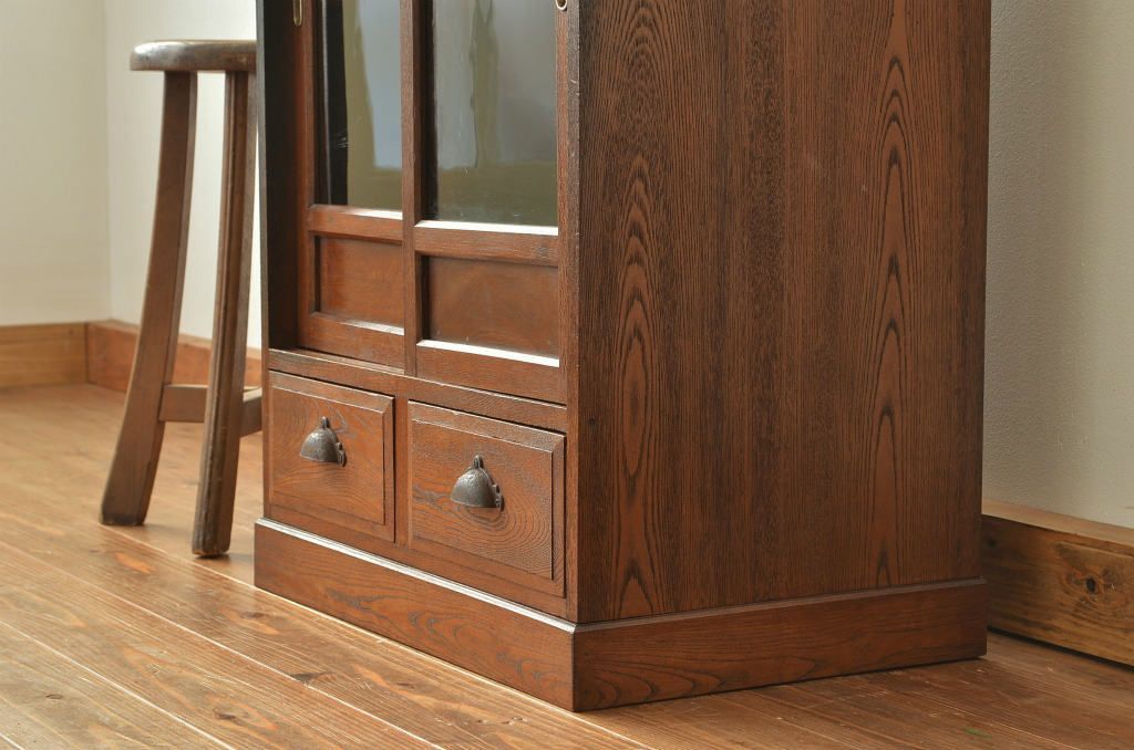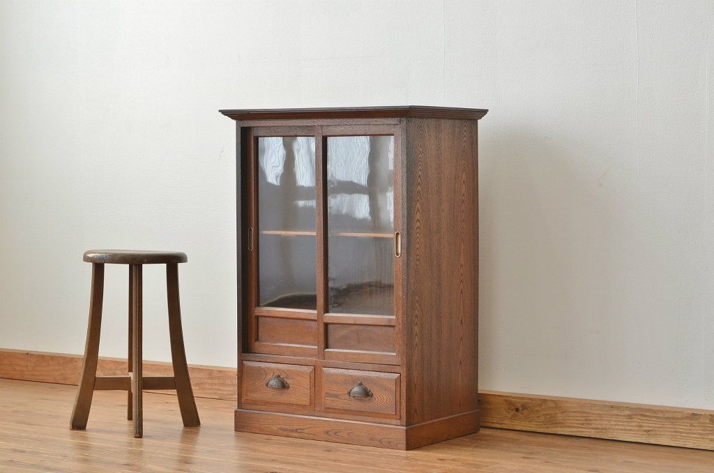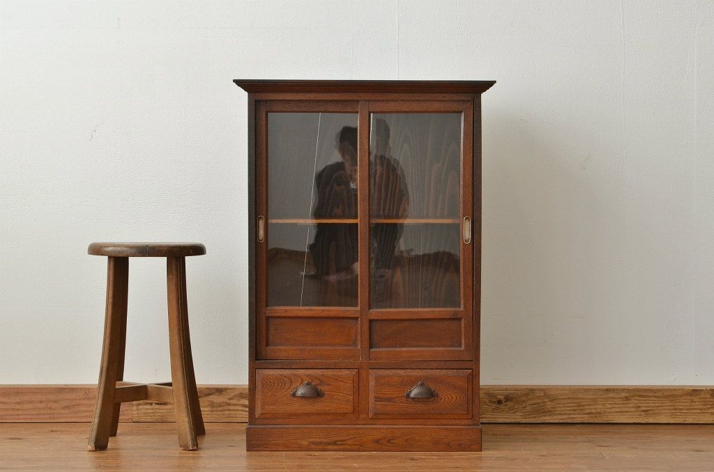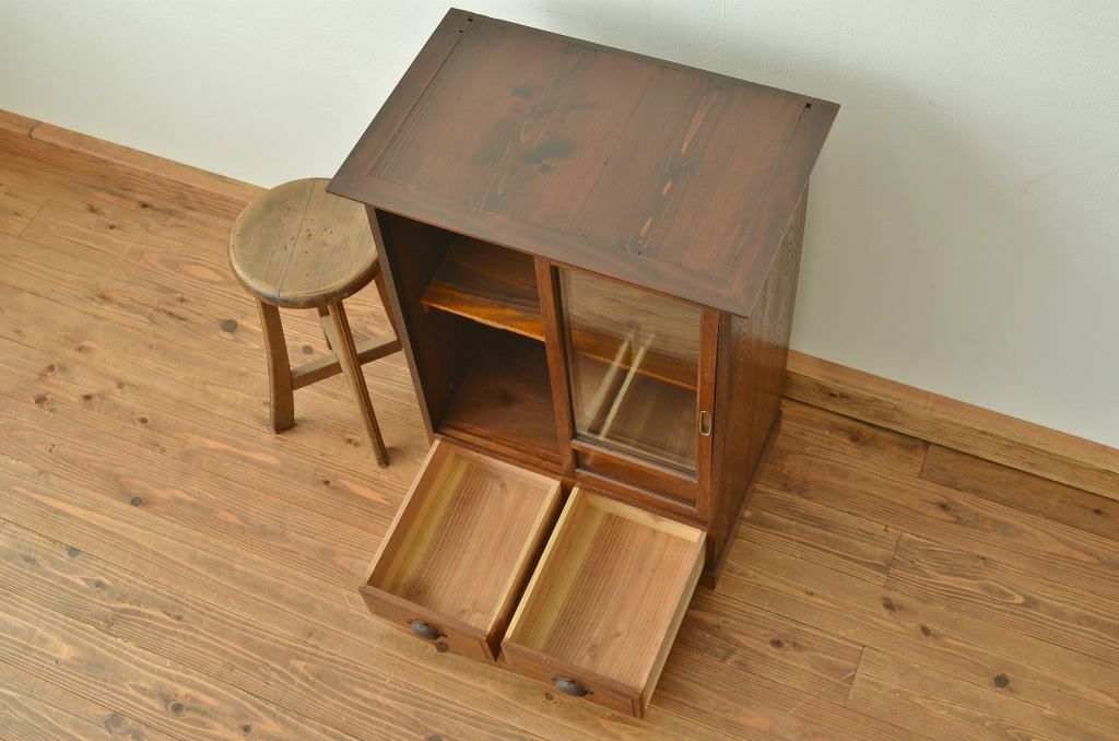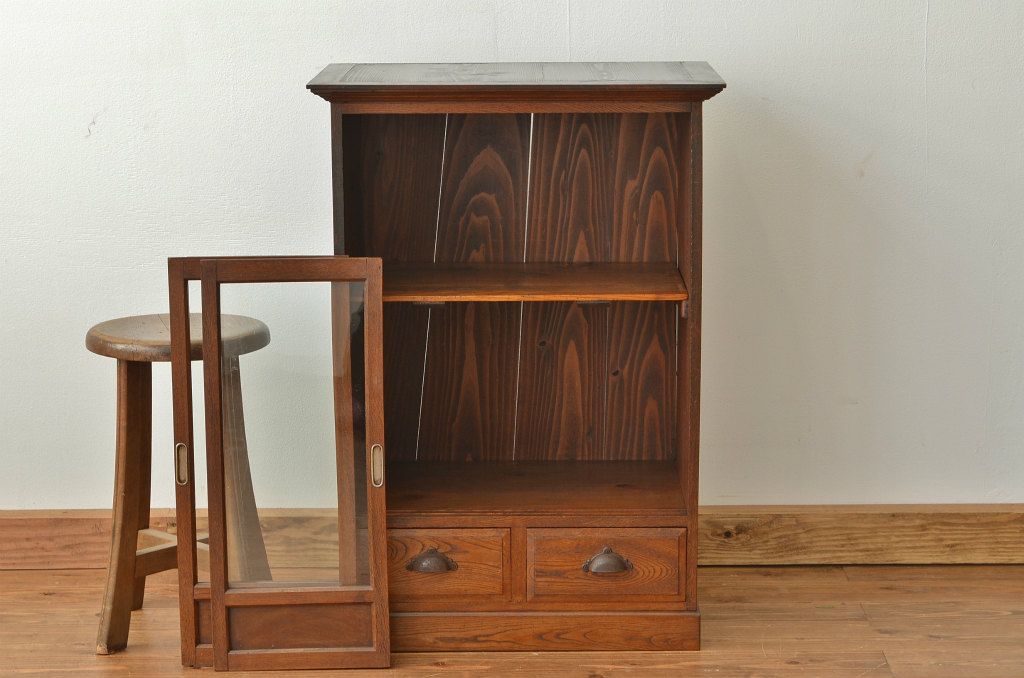 アンティーク家具 アンティーク 古い木の小ぶりな引き出し付収納棚(本箱)