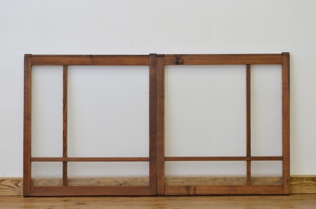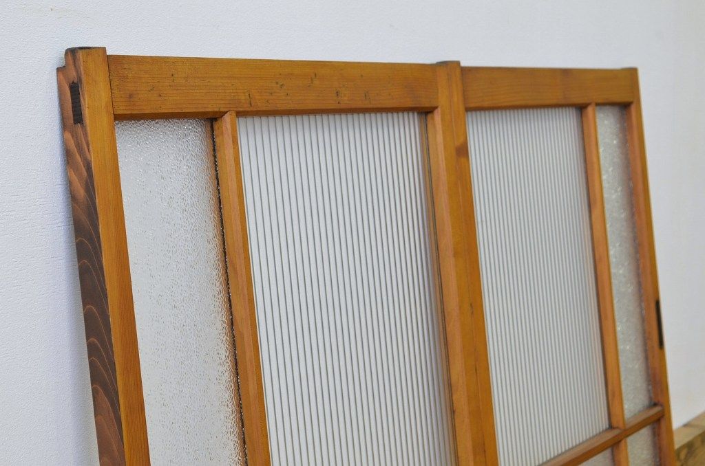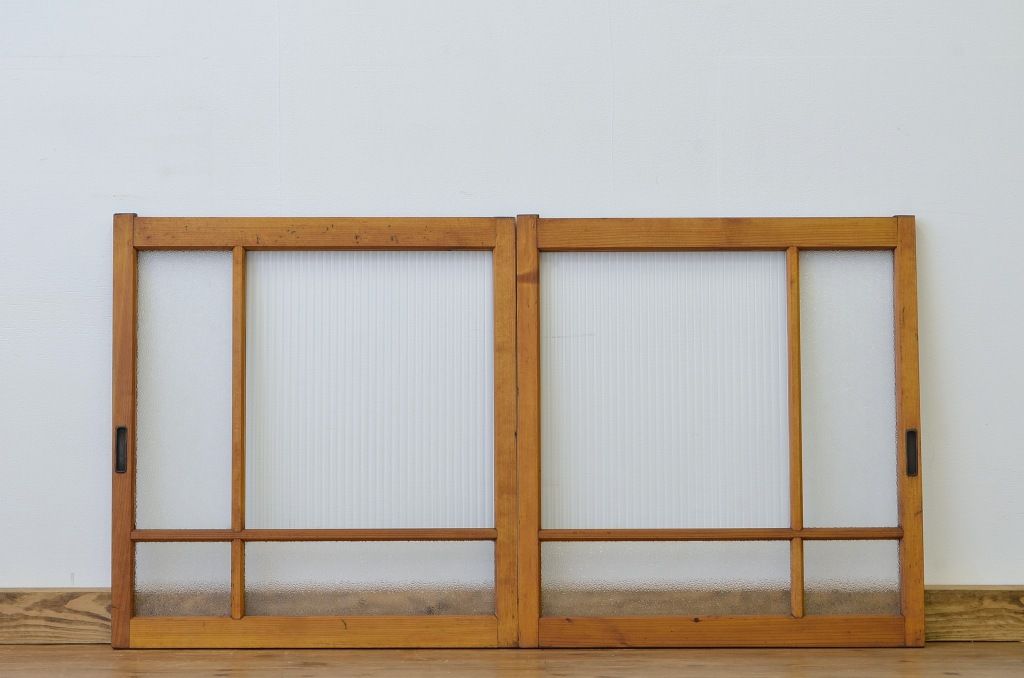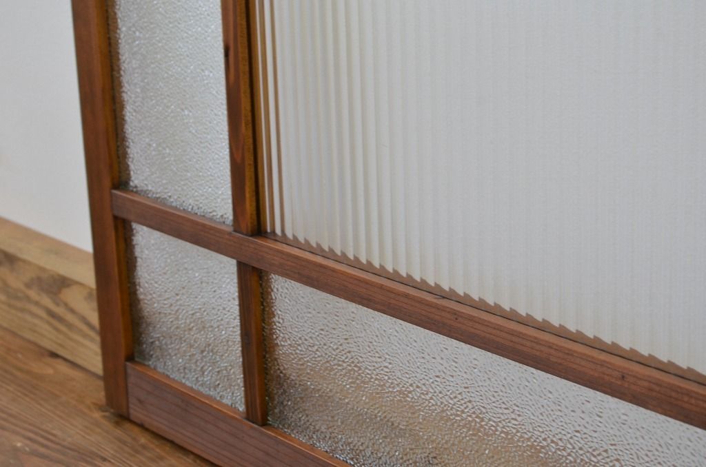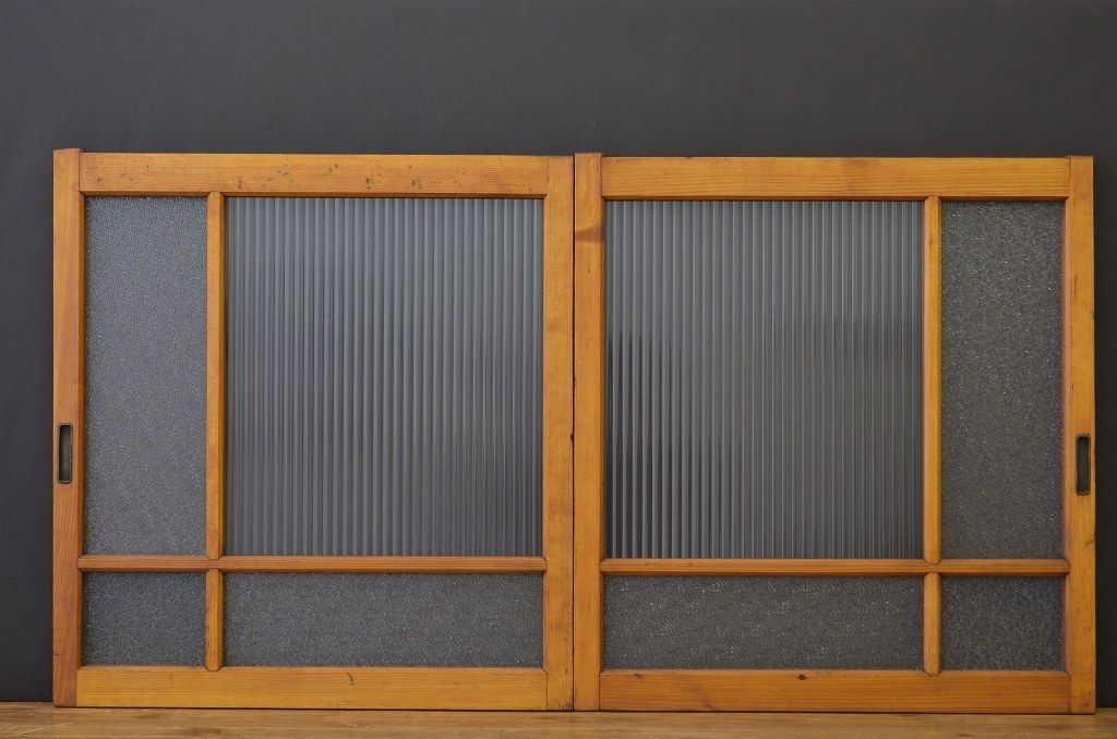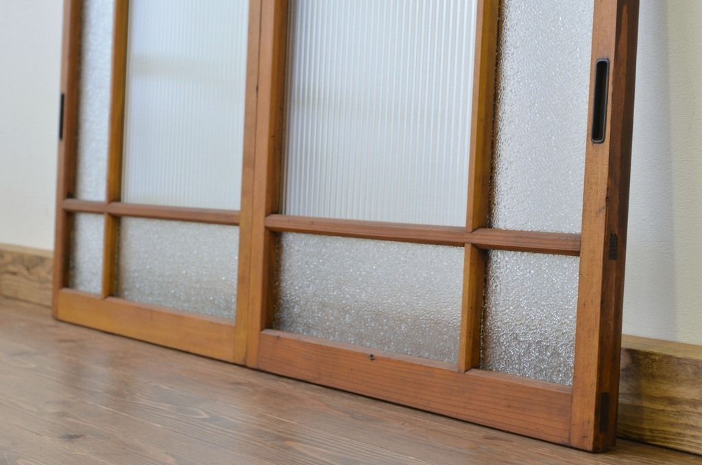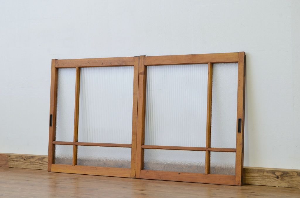 アンティーク 人気のモールガラスとダイヤガラスの引き戸2枚セット(ガラス戸)