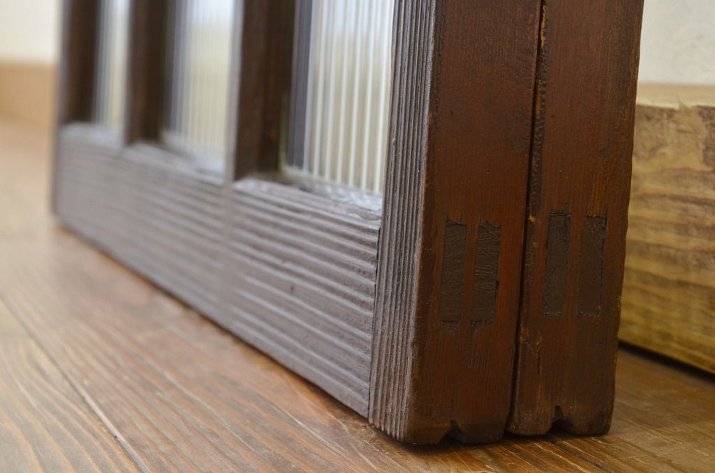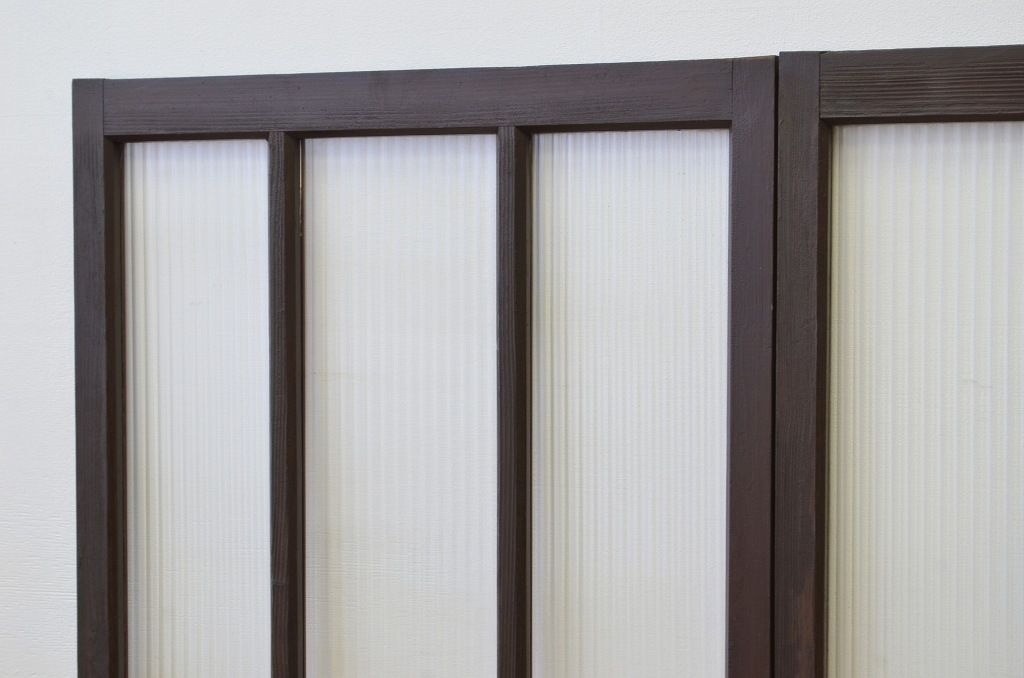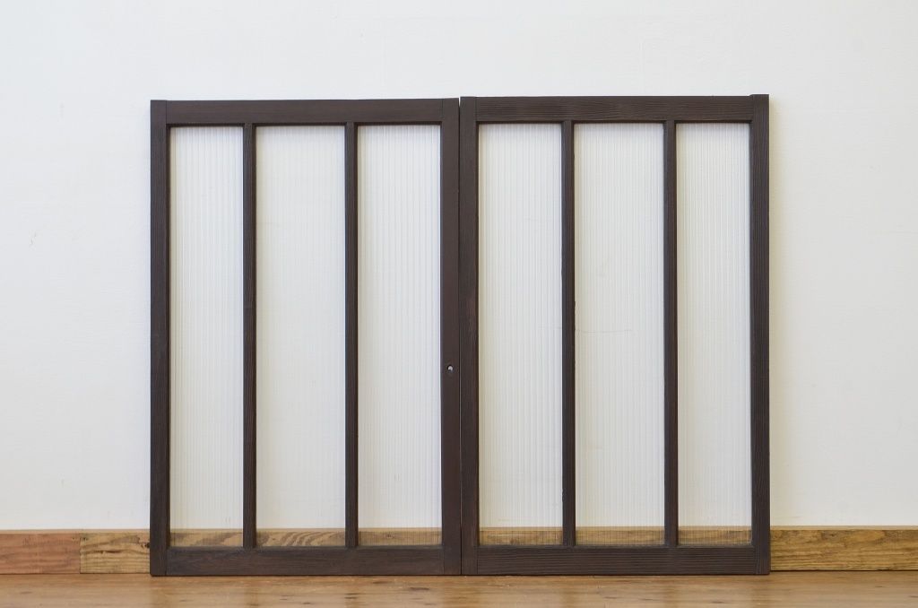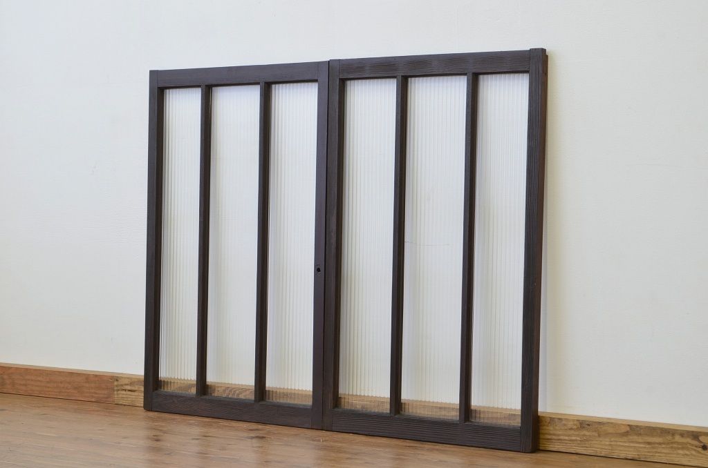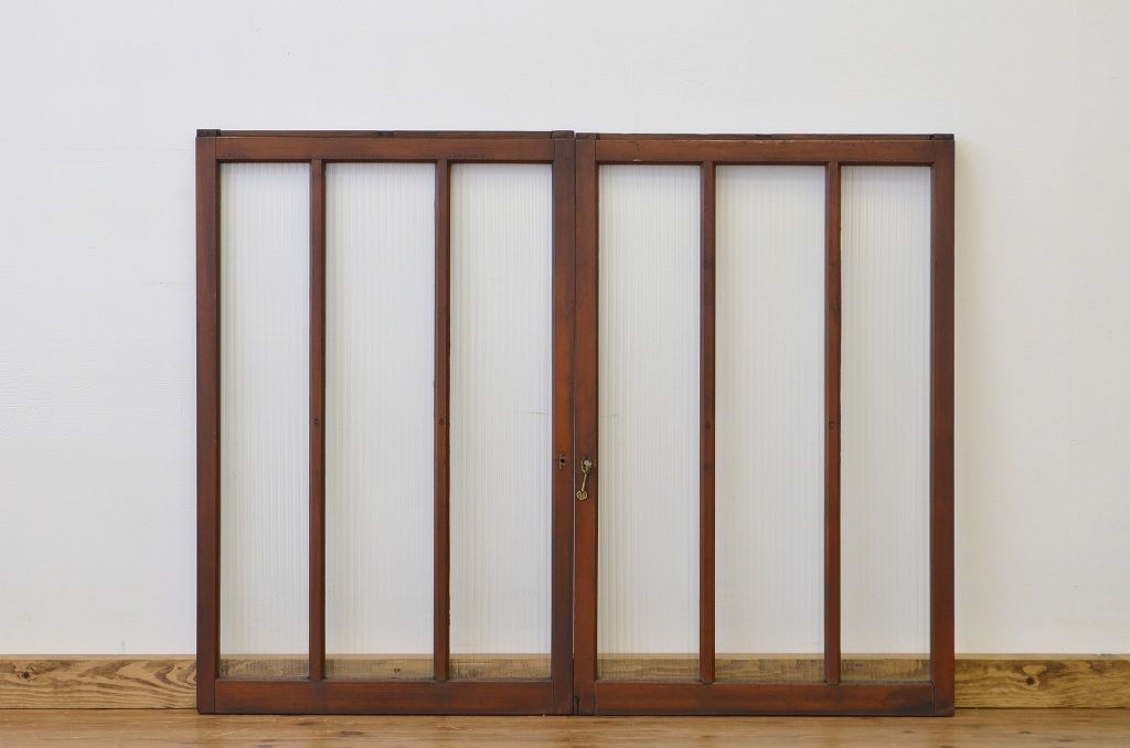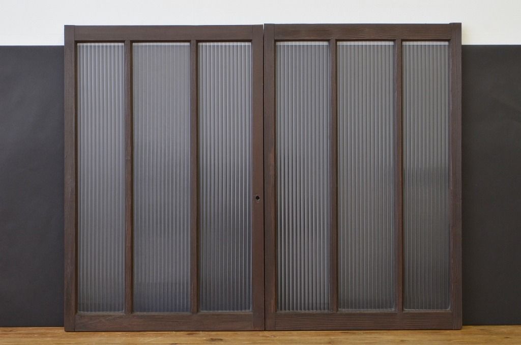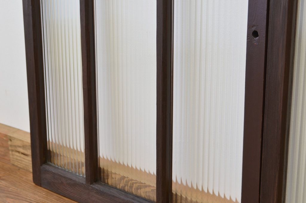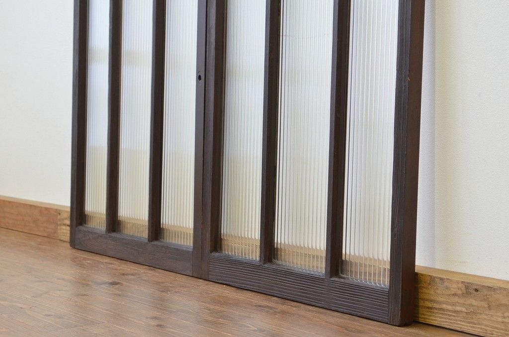 アンティーク 古いモールガラス引き戸2枚セット(ガラス戸)