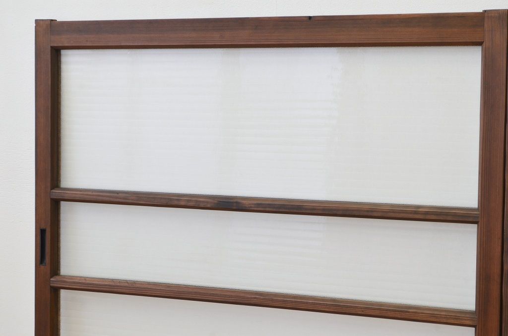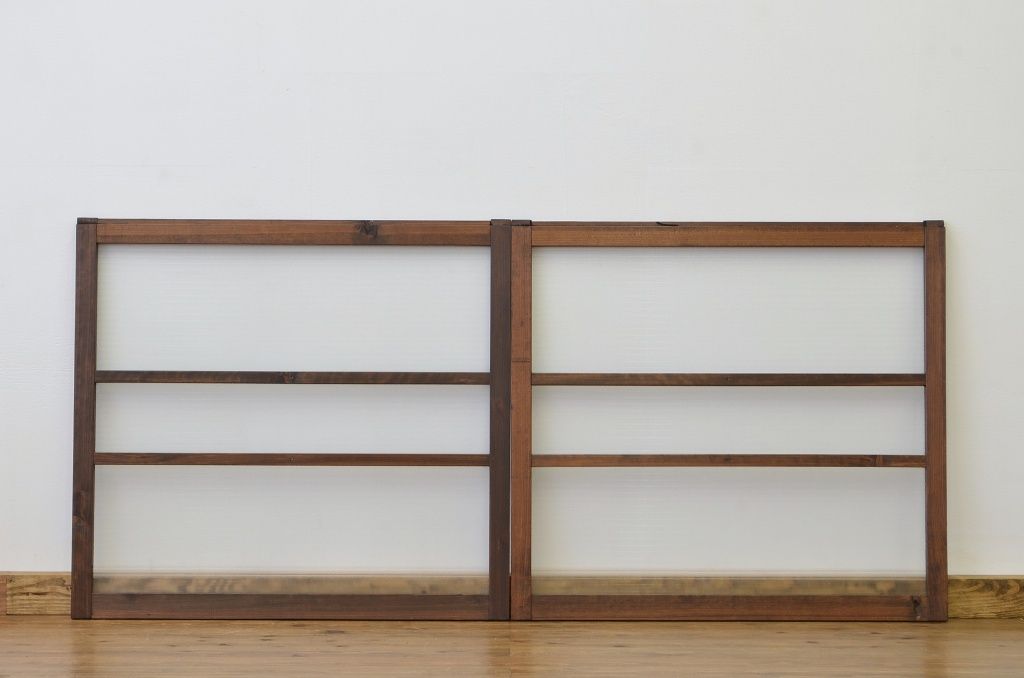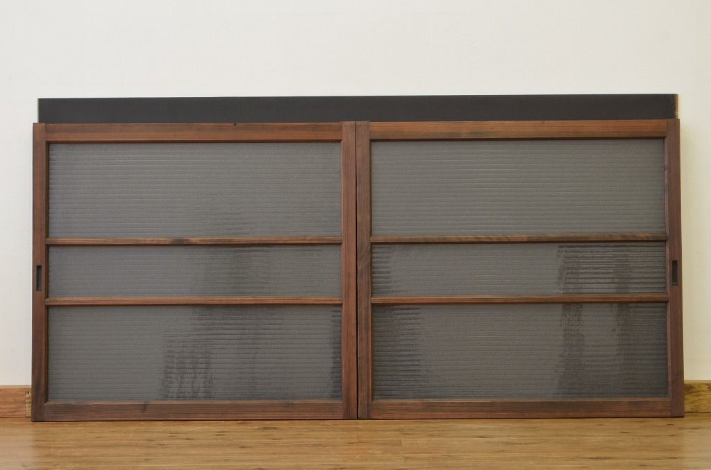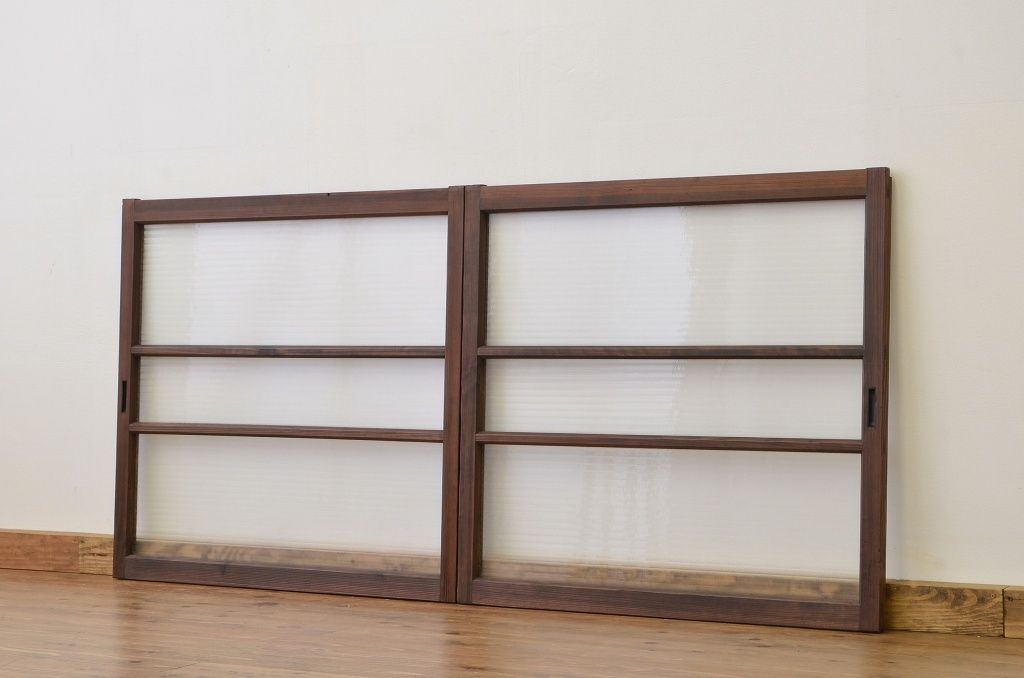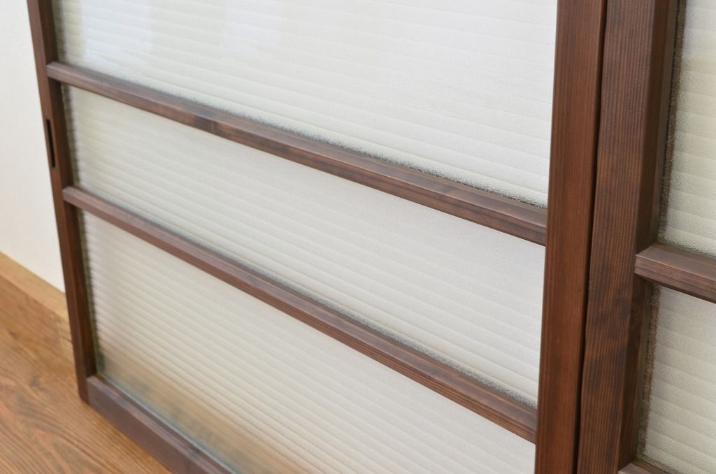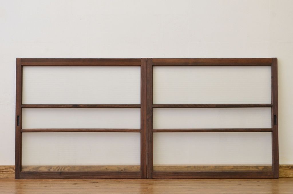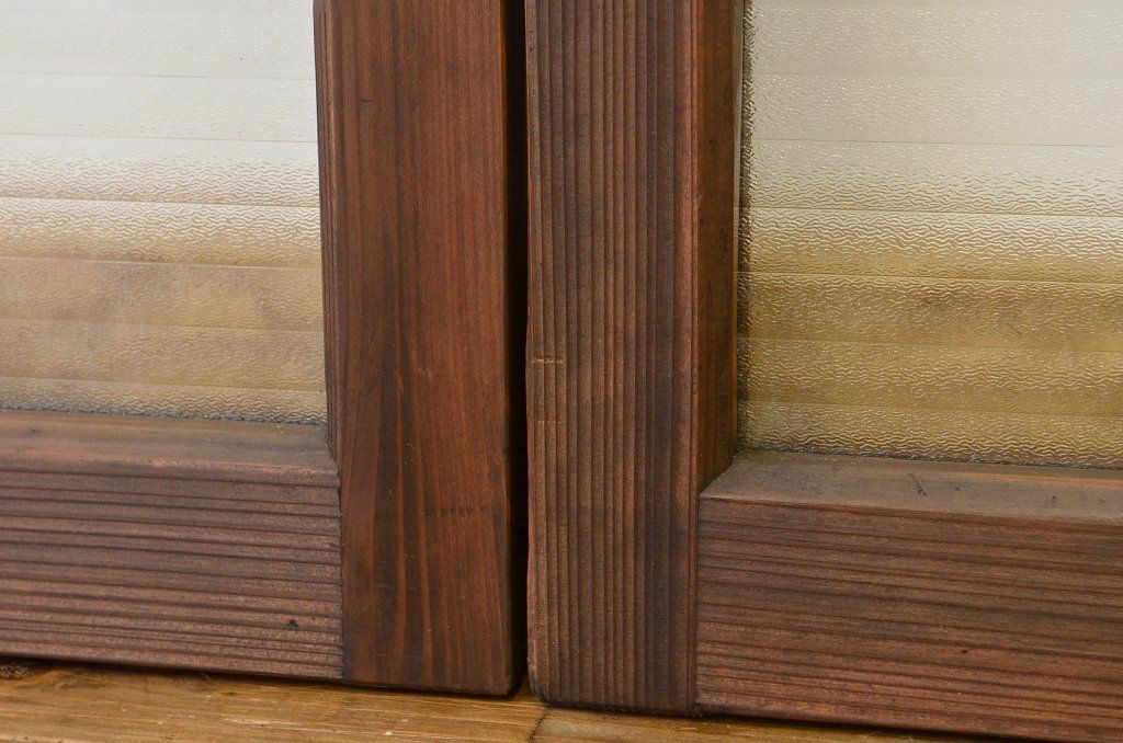 アンティーク 古い木の銀モールガラス引き戸2枚セット(窓建具)
