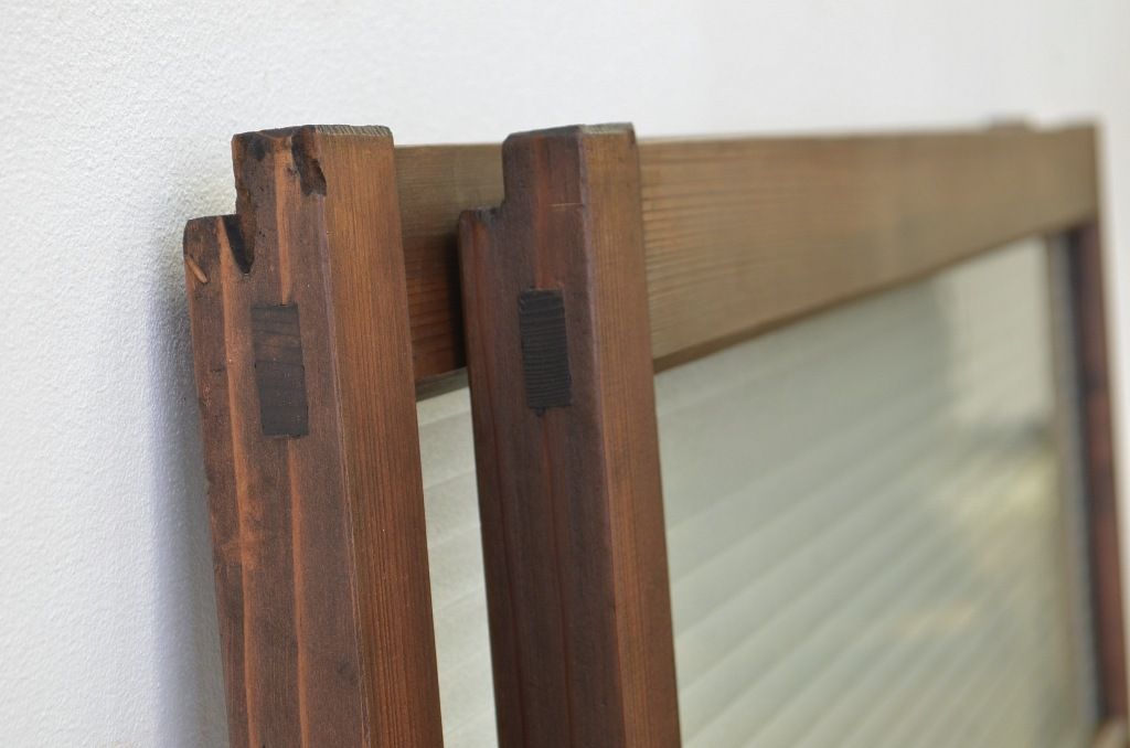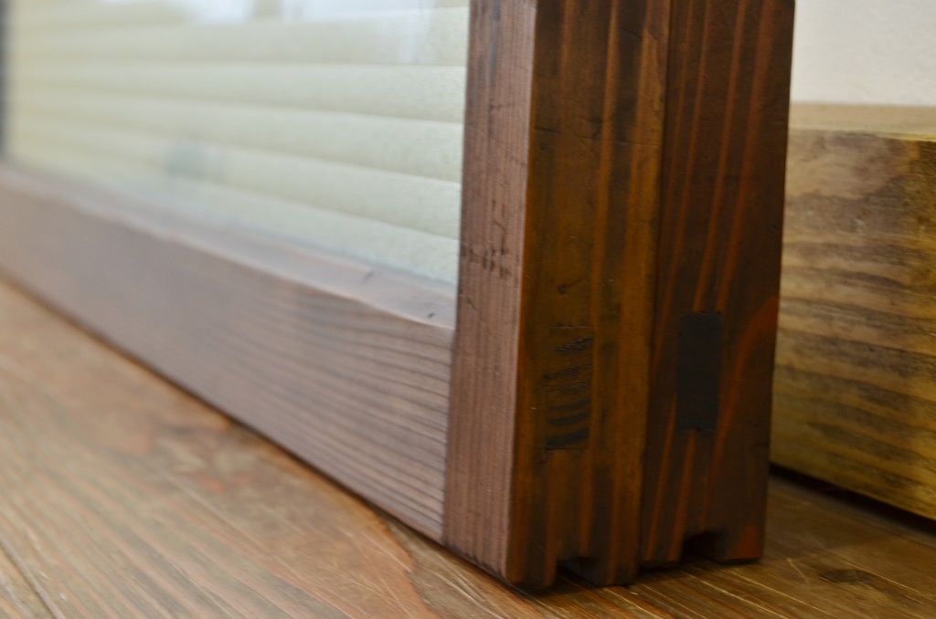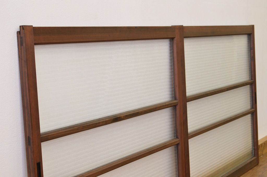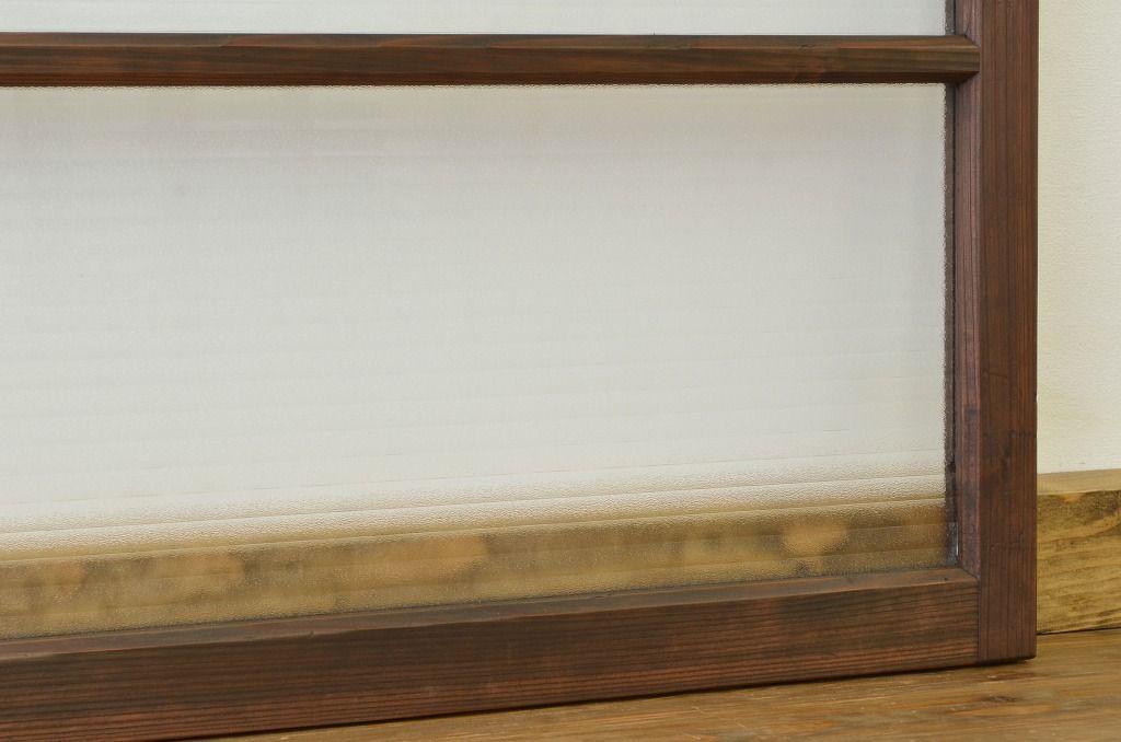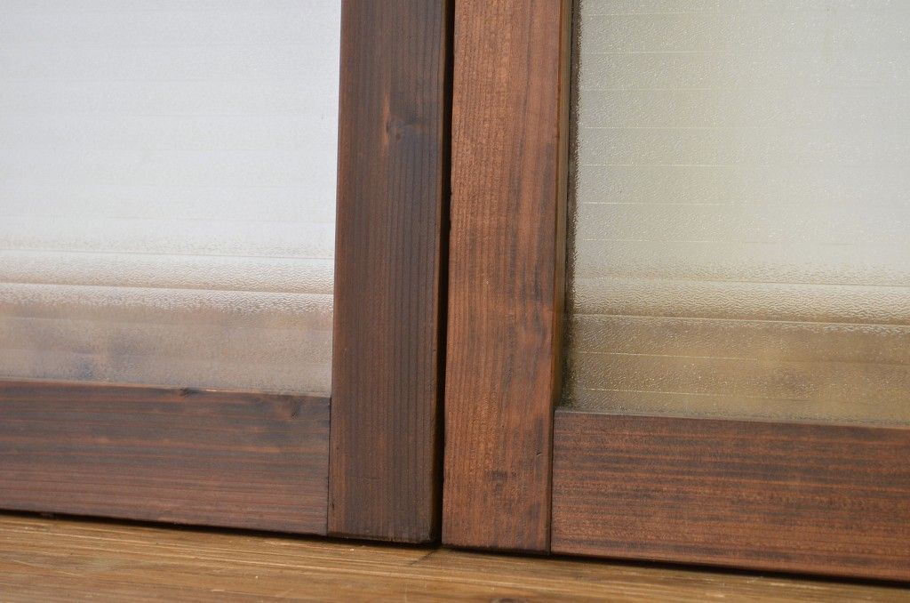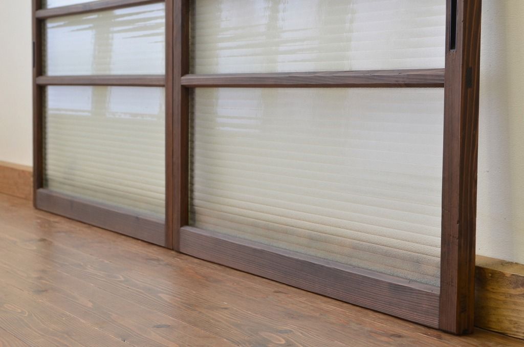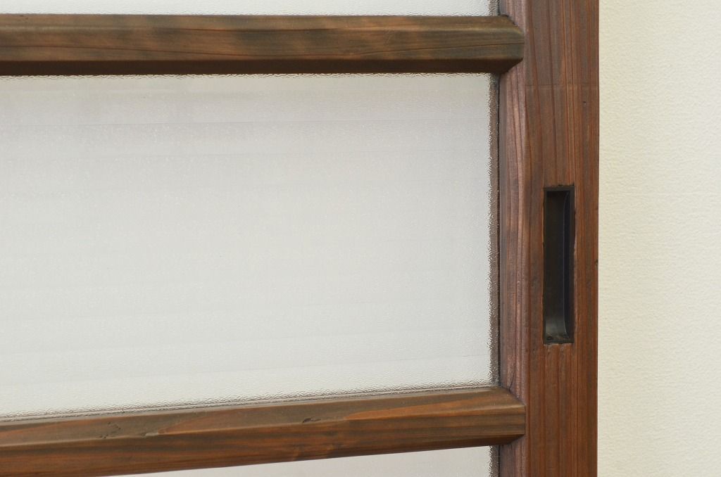 アンティーク 古い木の銀モールガラス引き戸2枚セット(窓建具)