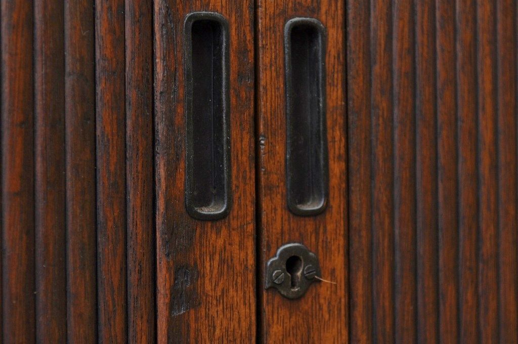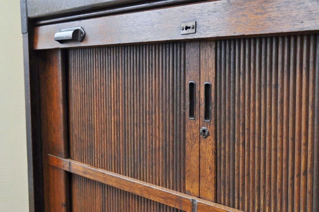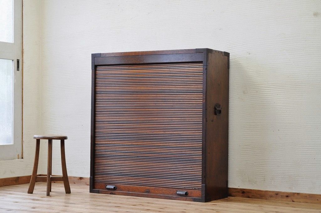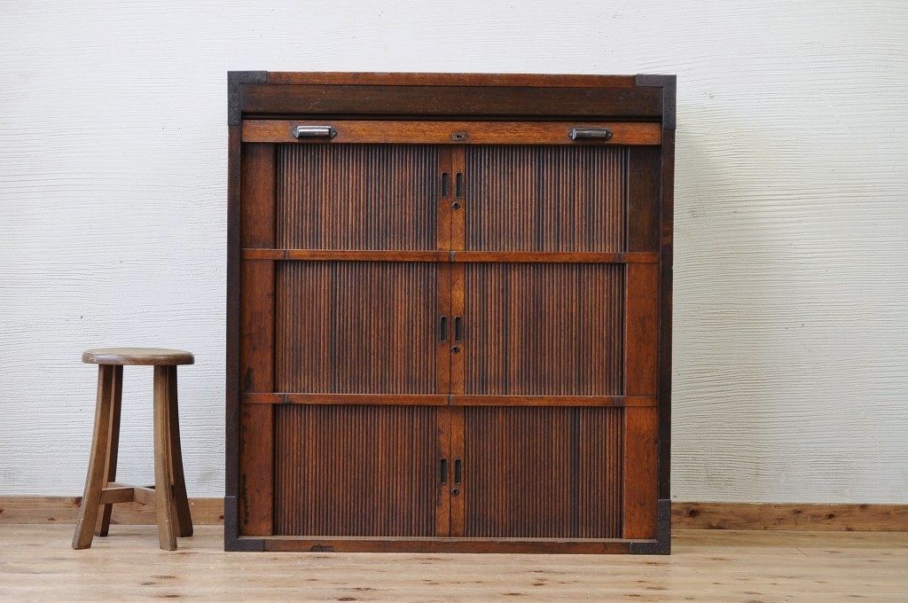アンティーク家具 希少!古い質屋の頑丈なシャッター収納棚(蛇腹)