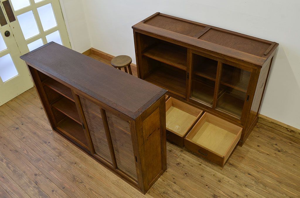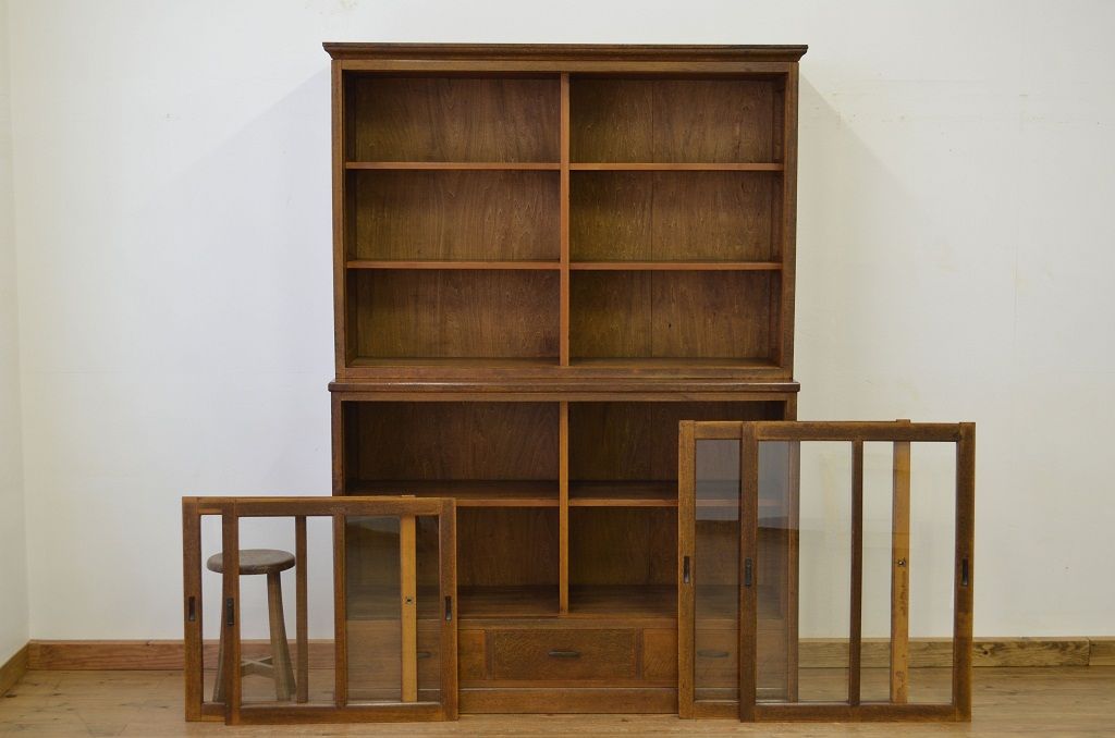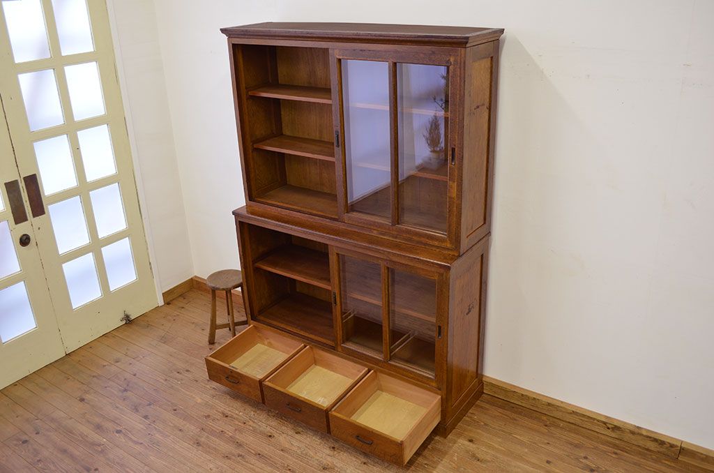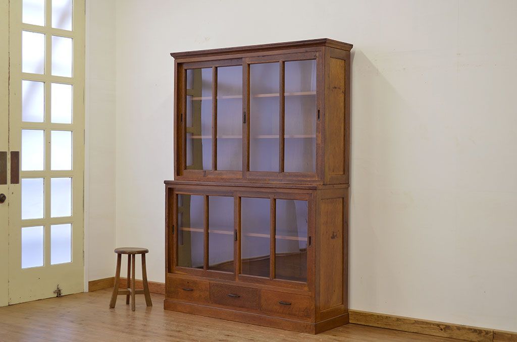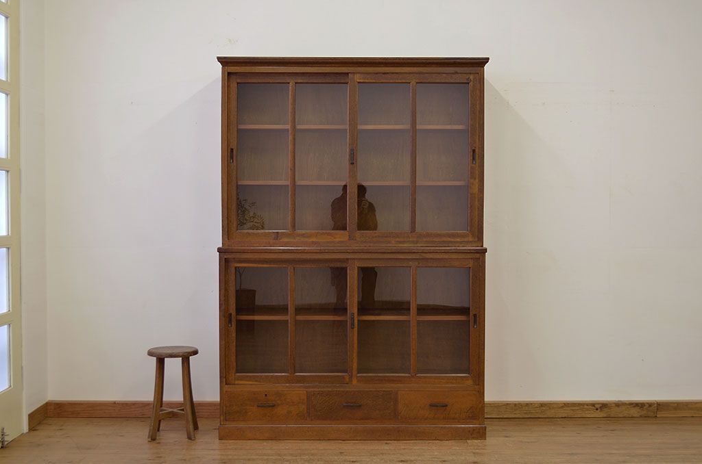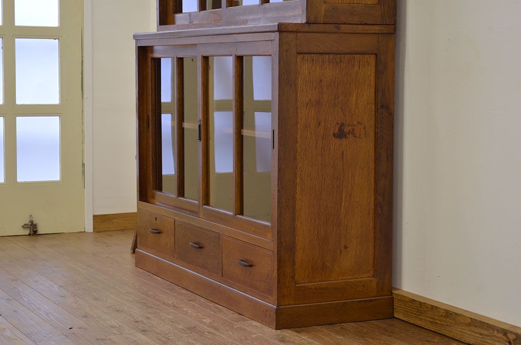 アンティーク家具 アンティーク 古いナラ材の上質な重ね食器棚(カップボード収納棚)