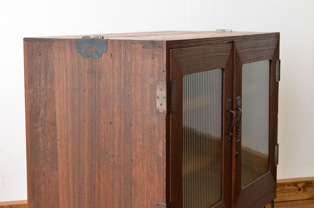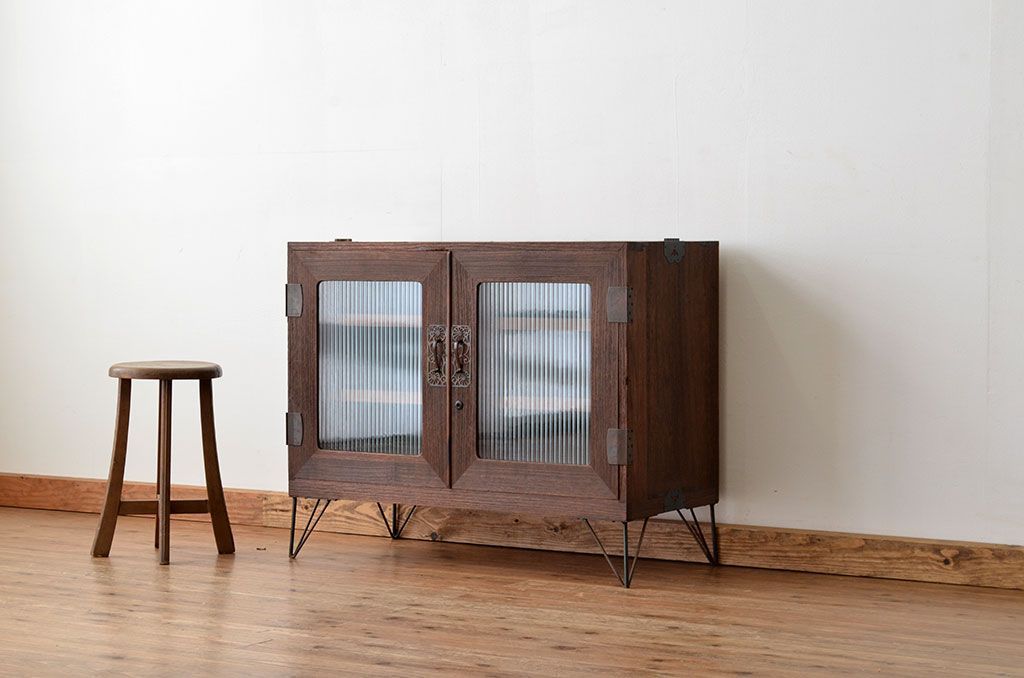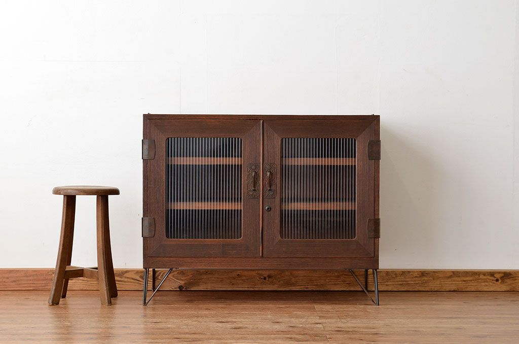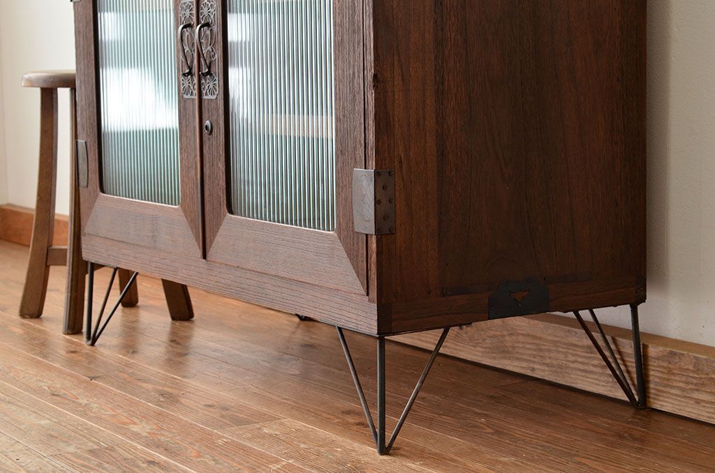アンティーク家具 鉄脚の観音開き アンティークローボード