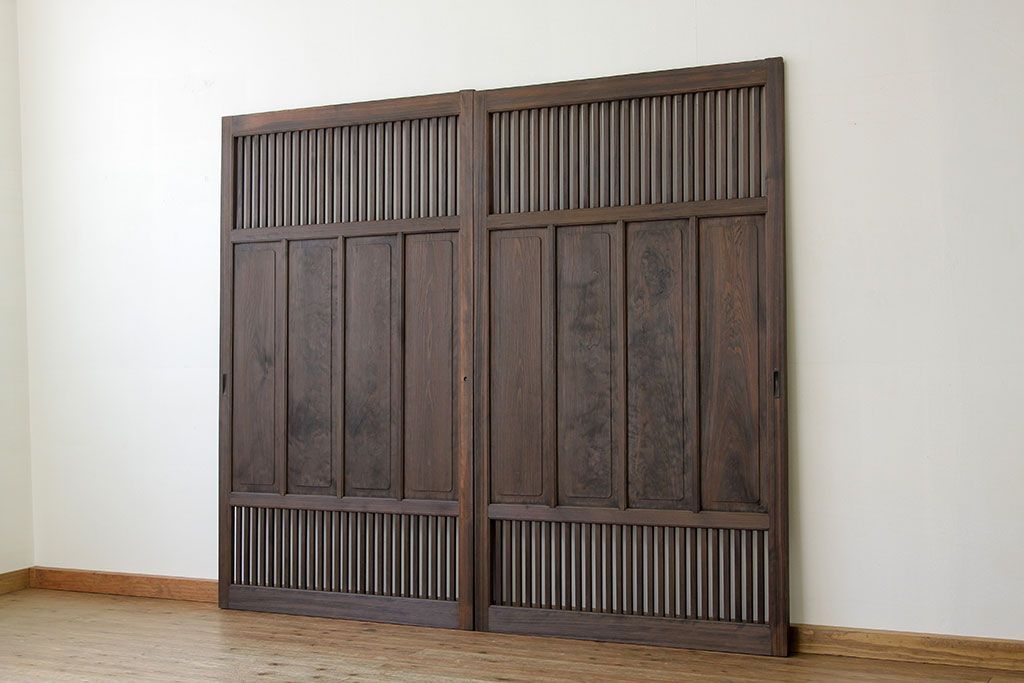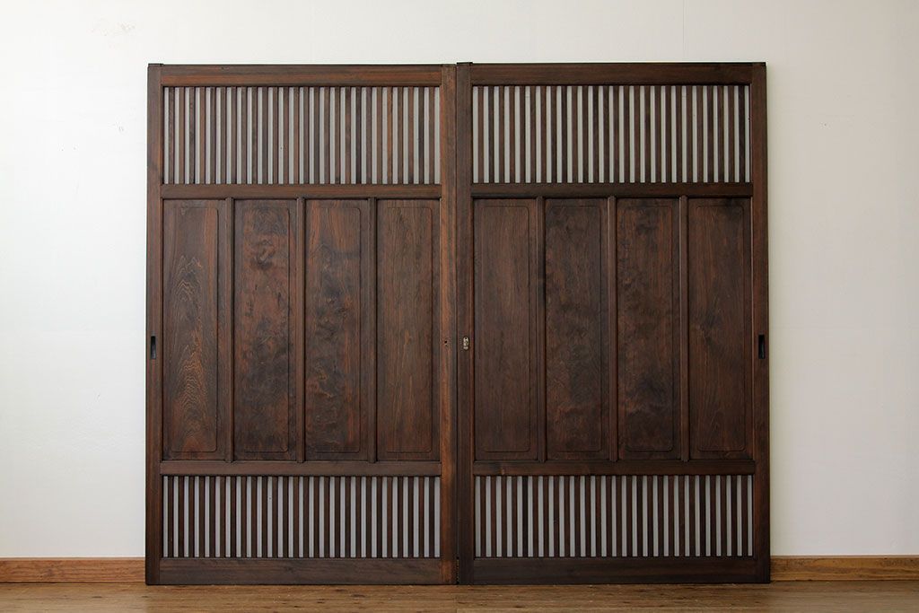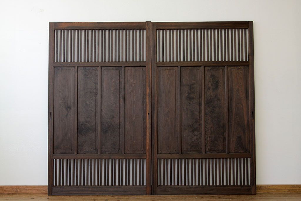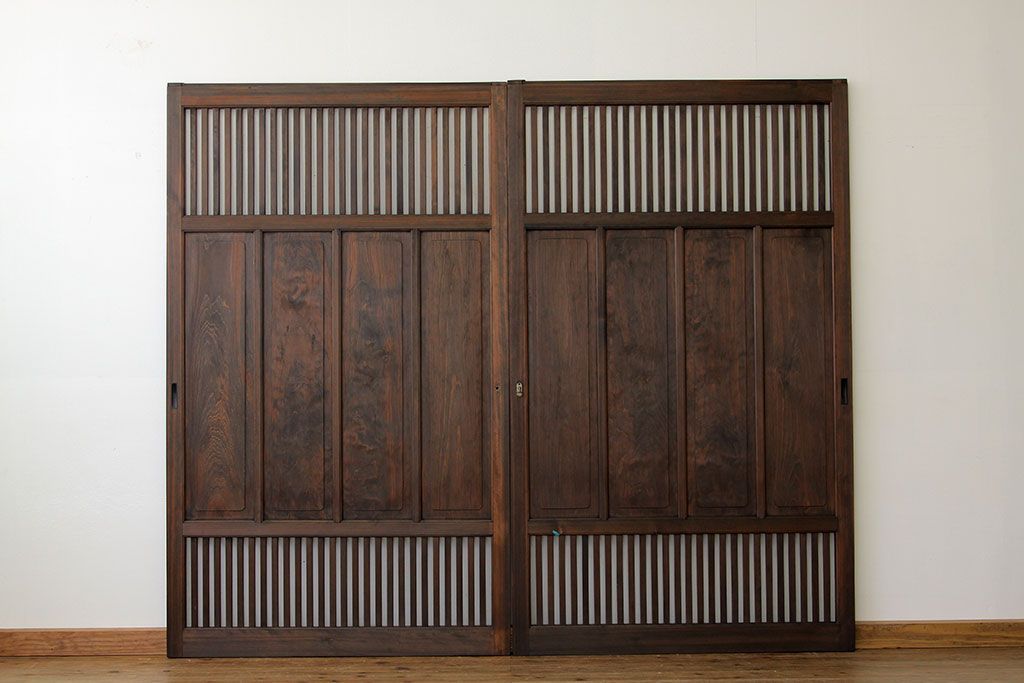 1960年頃古い木の上質な作りの格子戸2枚セット(引き戸)