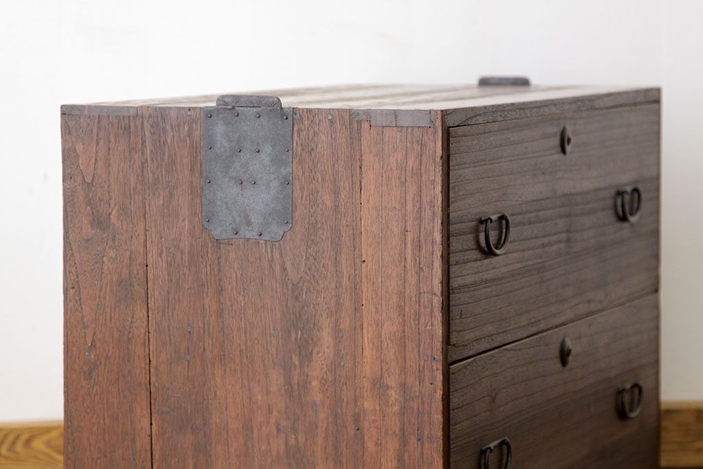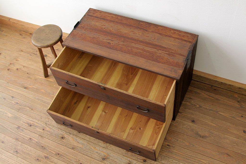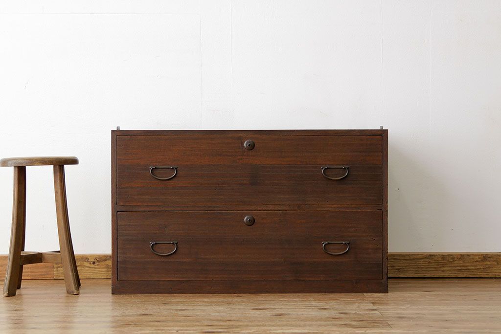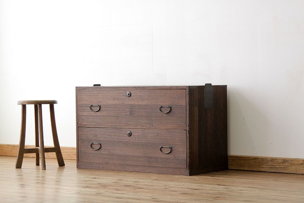 和箪笥 > アンティーク家具 古い木の2杯引き出し時代箪笥アンティークローボード?
