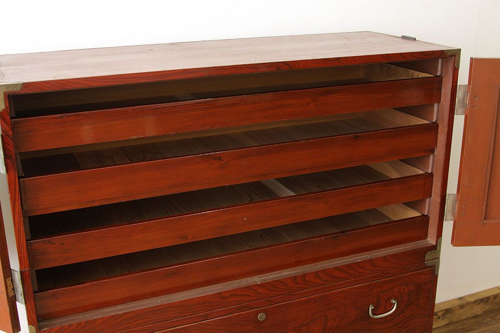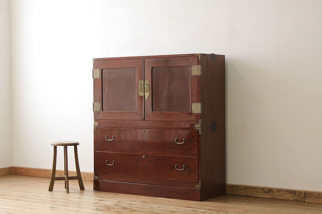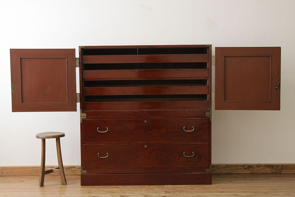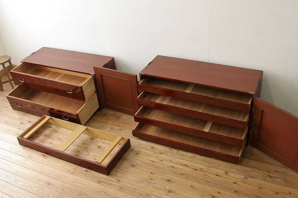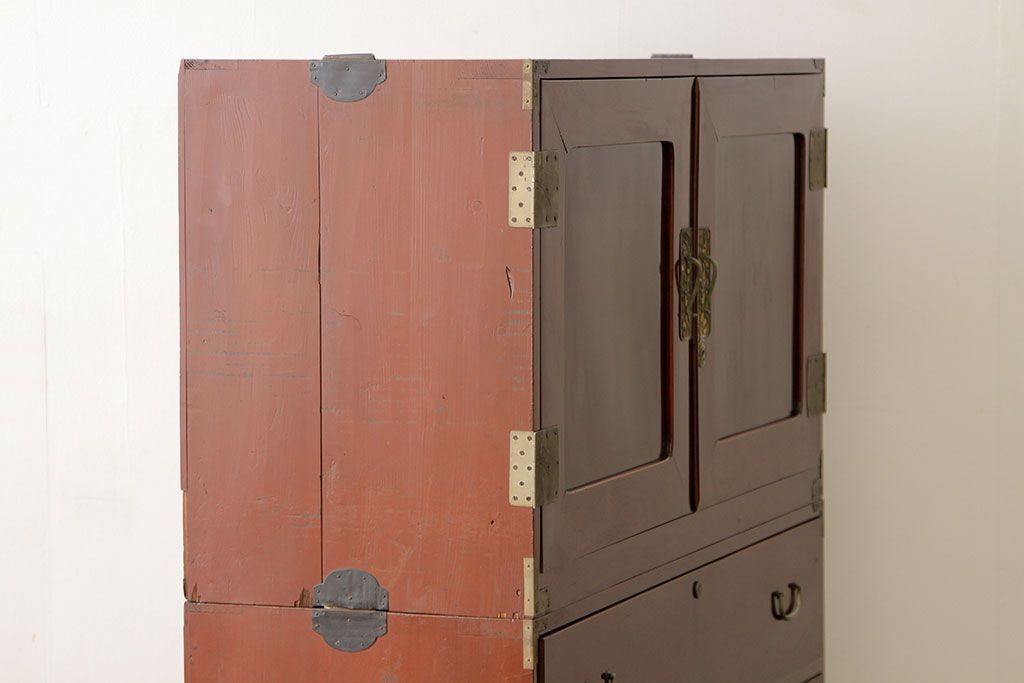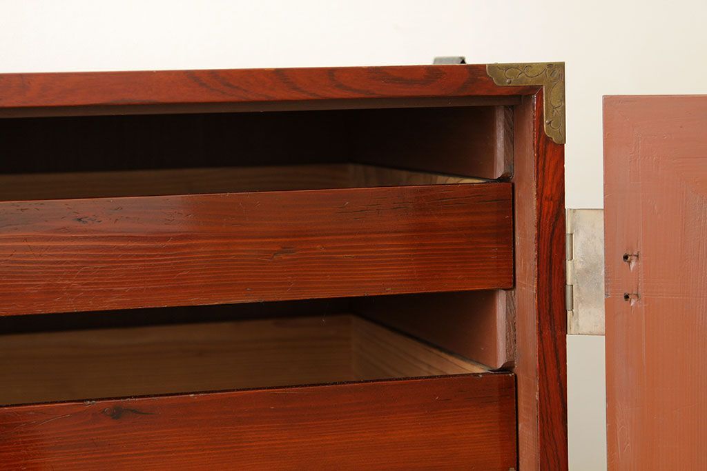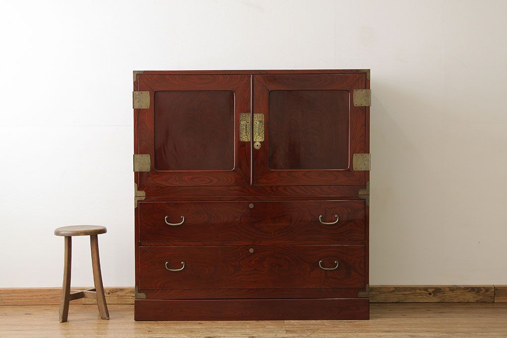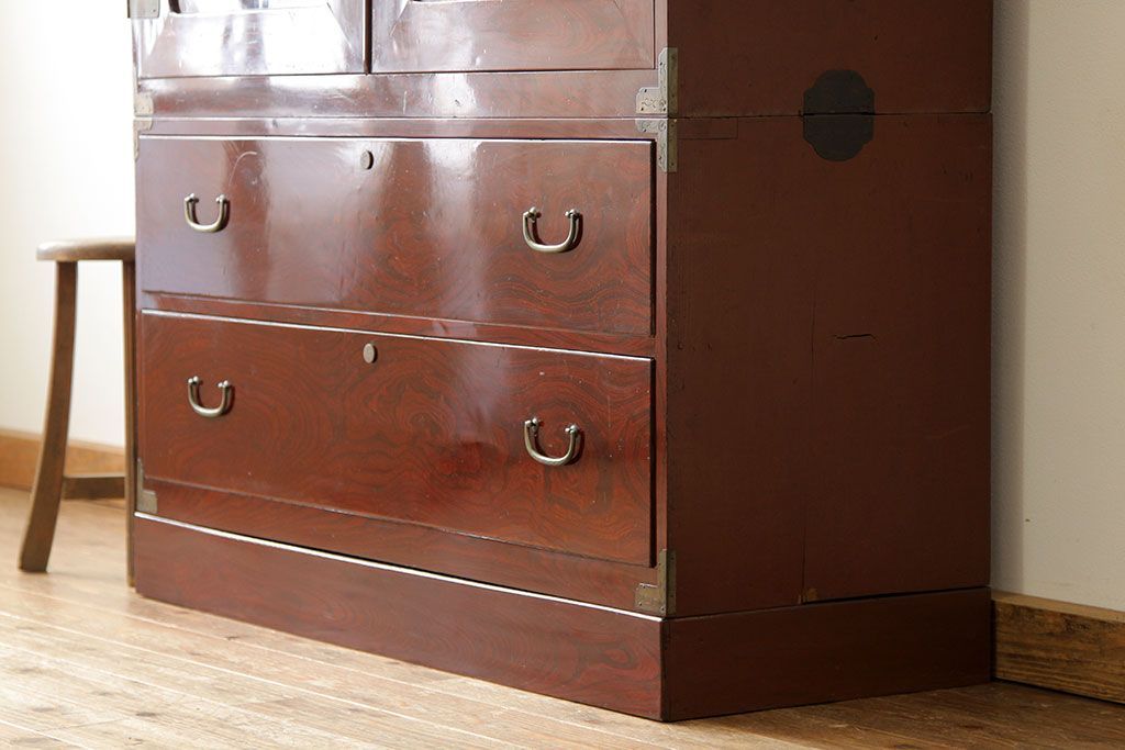 アンティーク家具 アンティーク 漆の綺麗な前欅重ね衣装箪笥(チェスト)