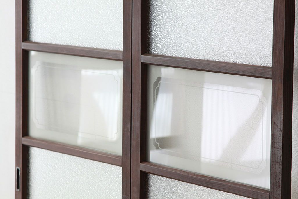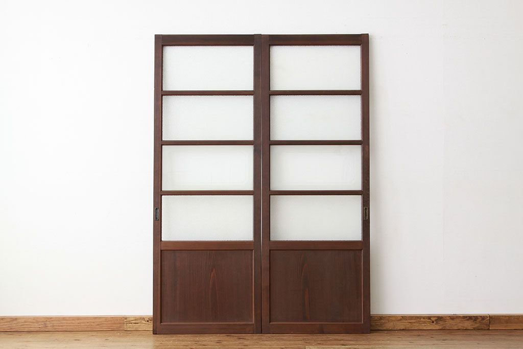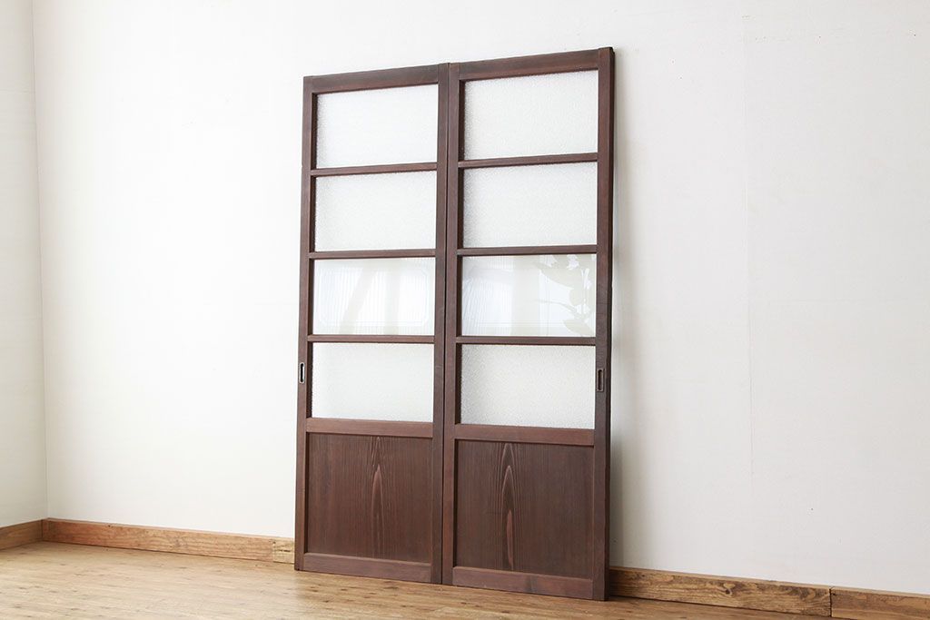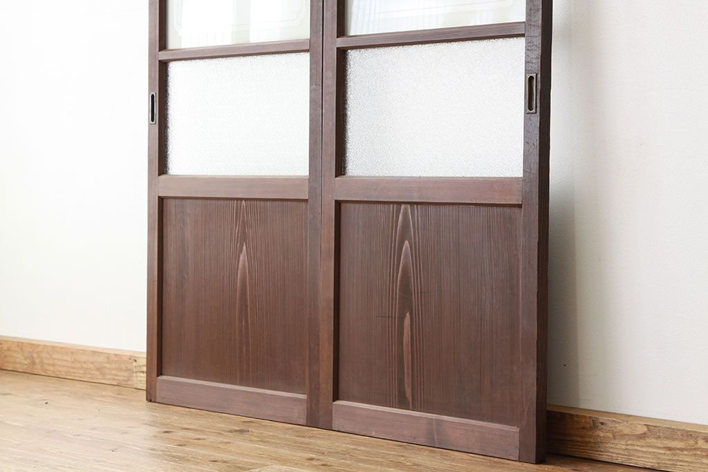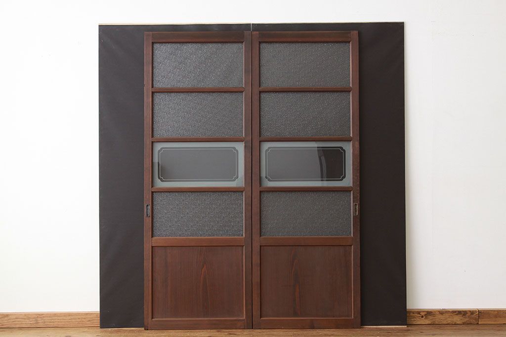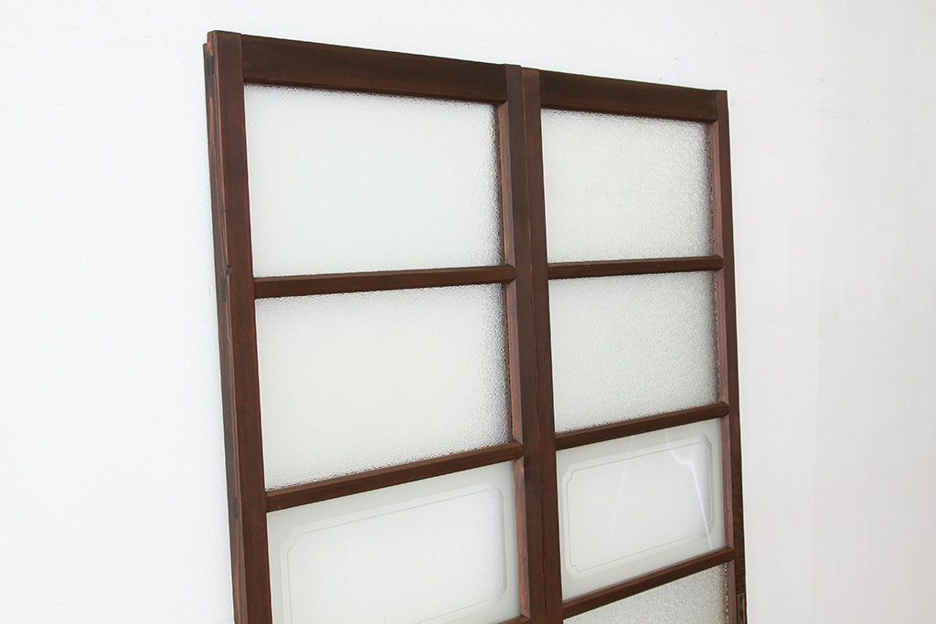 アンティーク 巾のせまいダイヤガラス引き戸2枚セット(建具、ガラス戸)