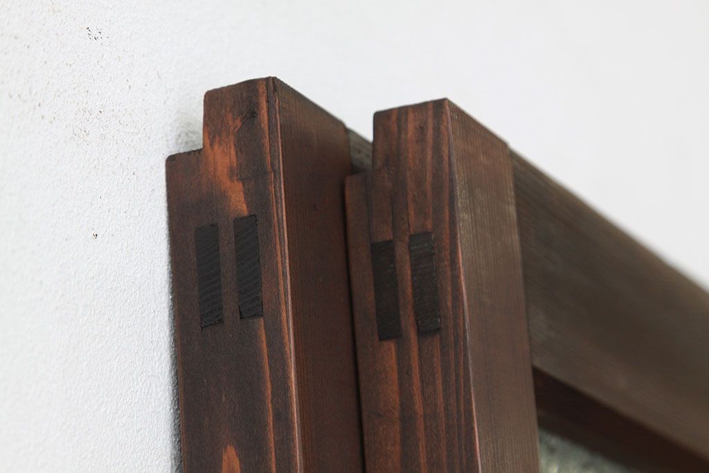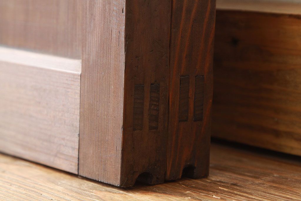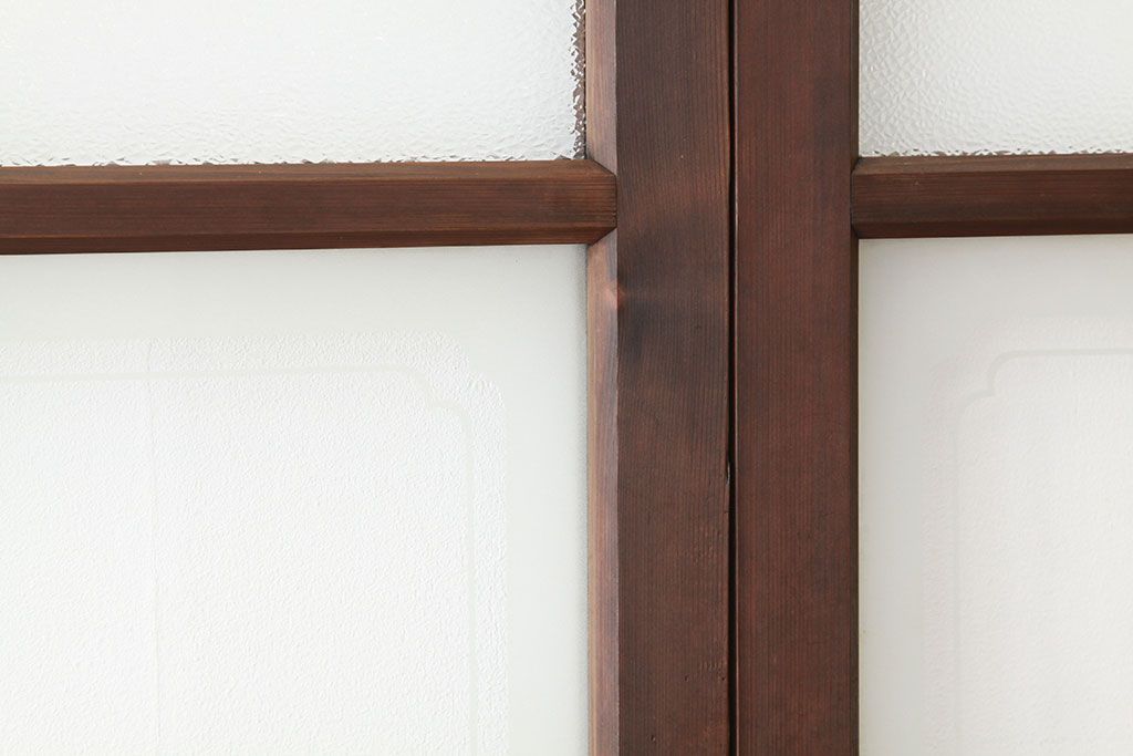 古い木の質感とレトロな雰囲気のガラスとが相まって、
