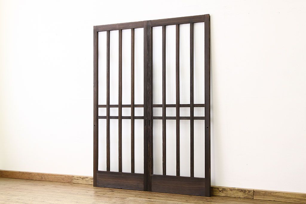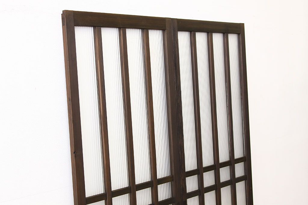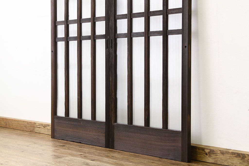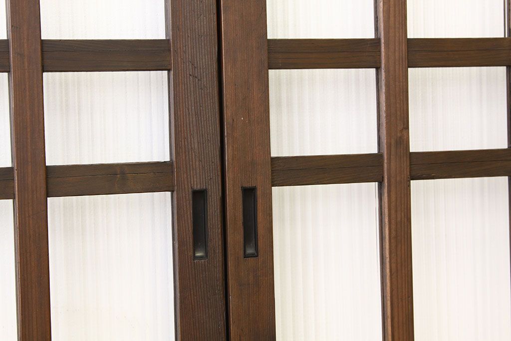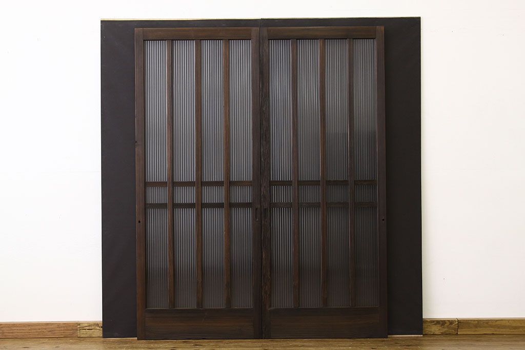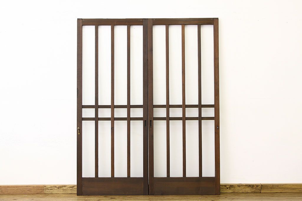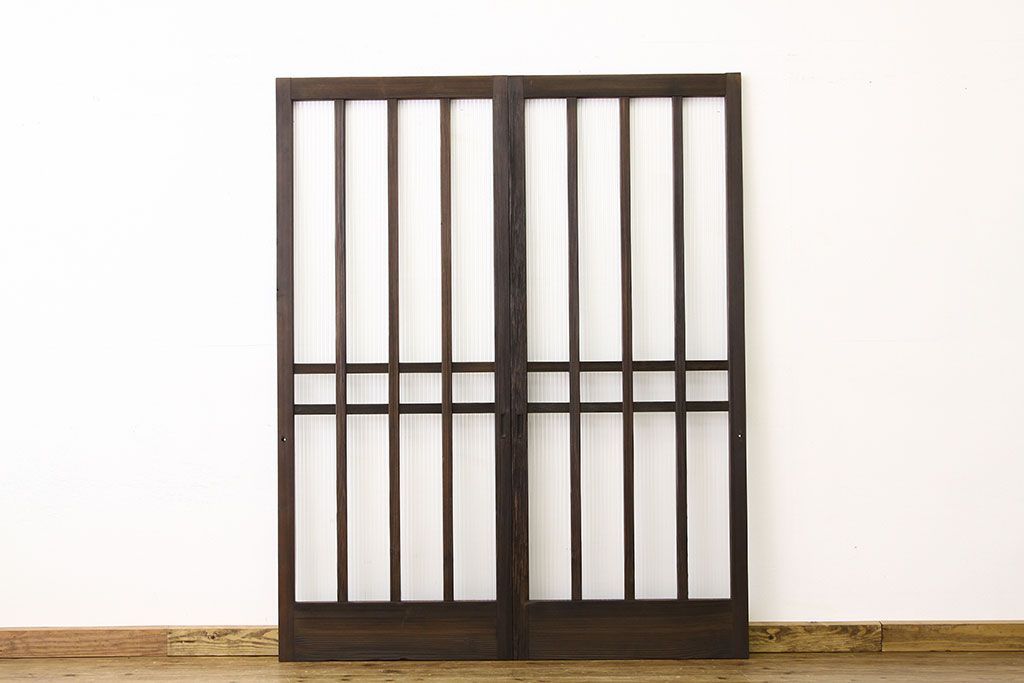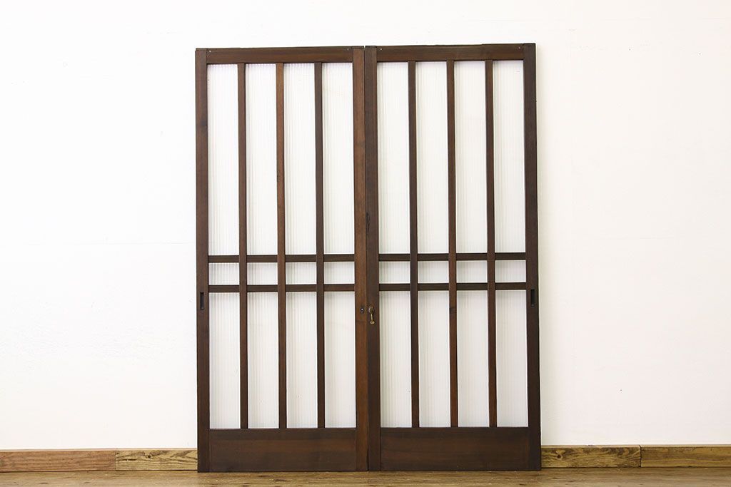 アンティーク 古い木のモールガラス格子戸2枚セット(ガラス戸・引き戸)