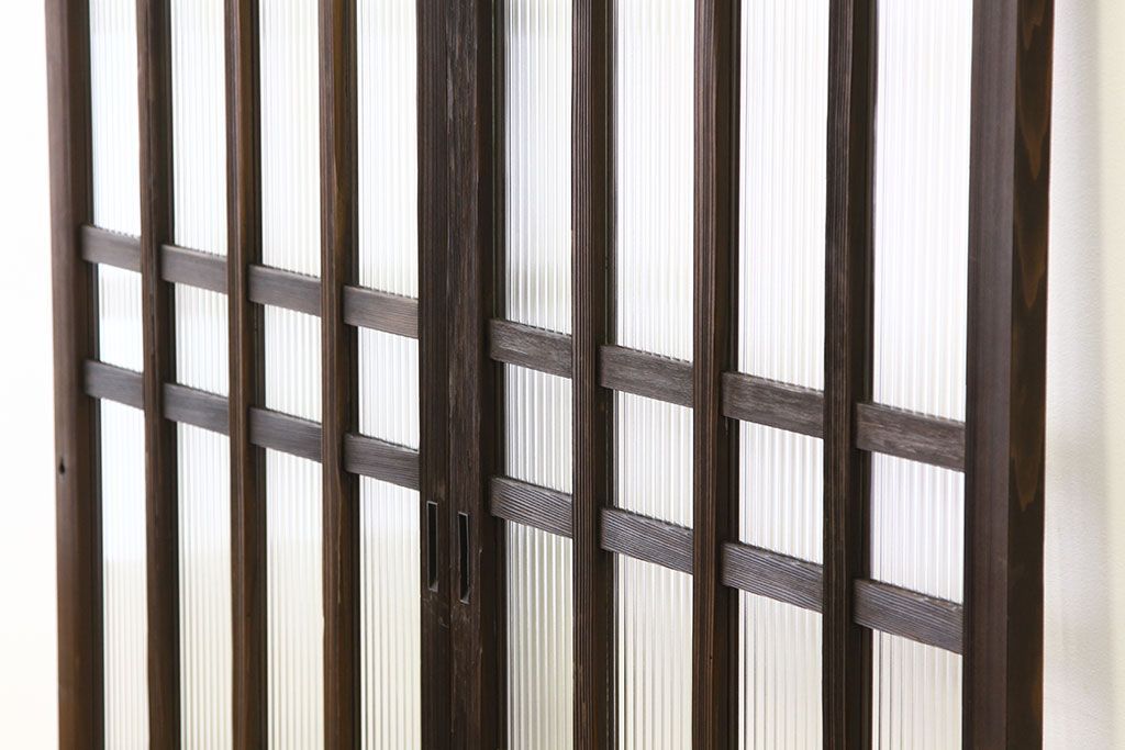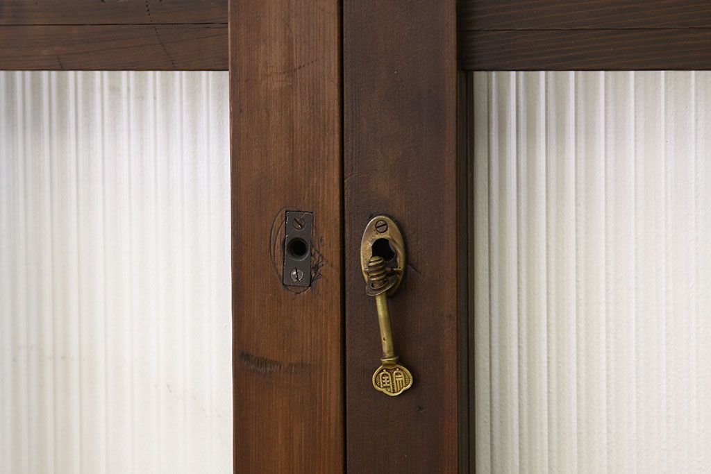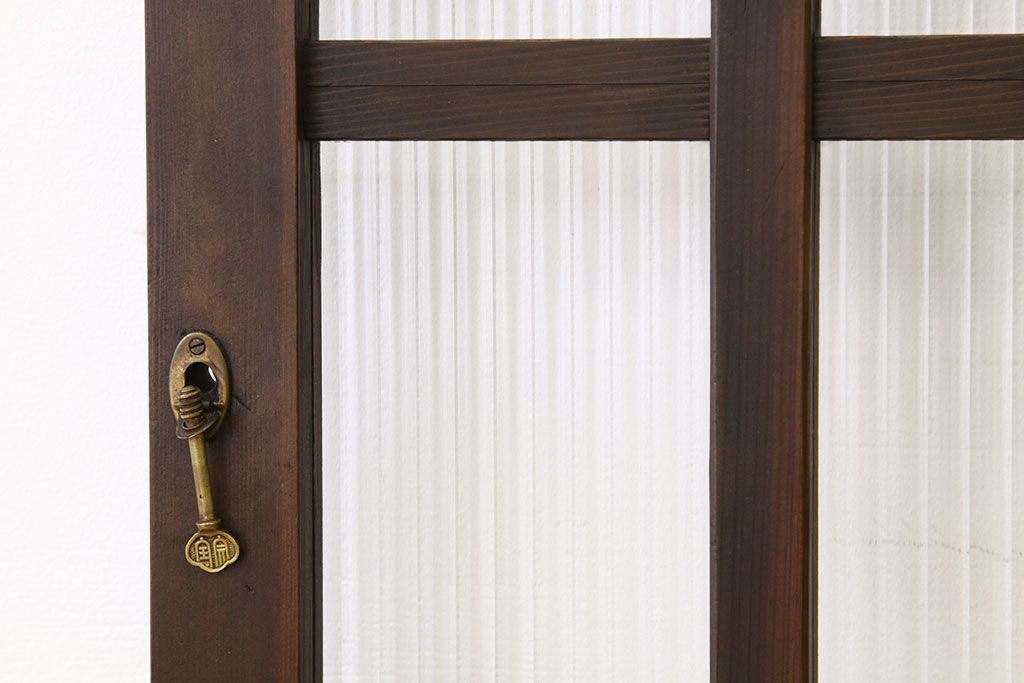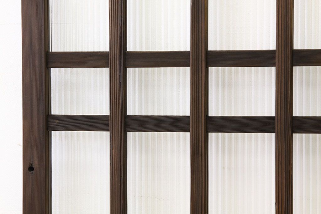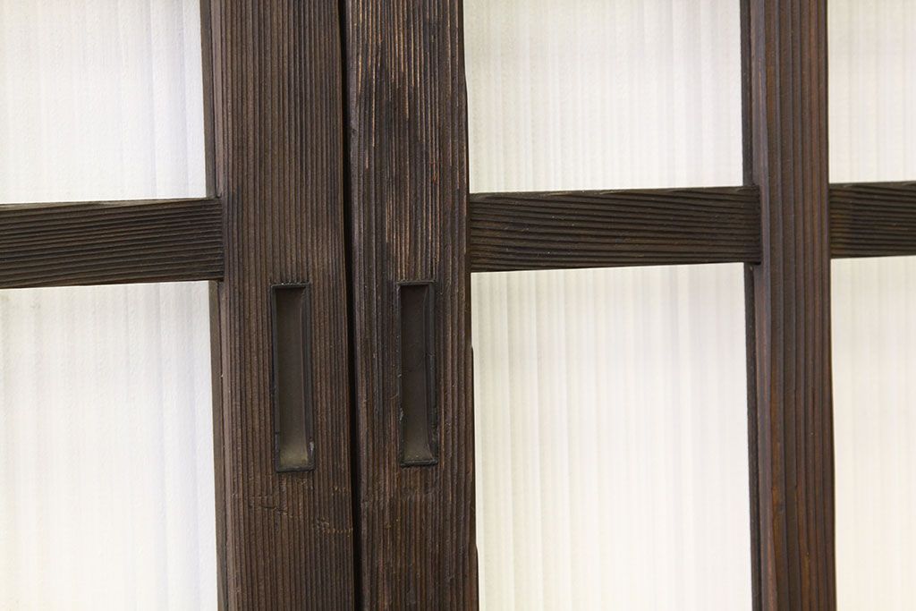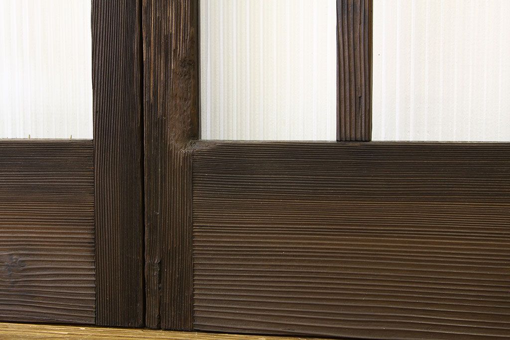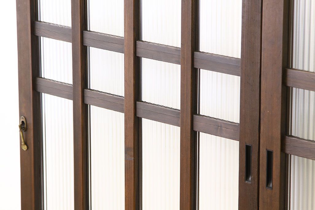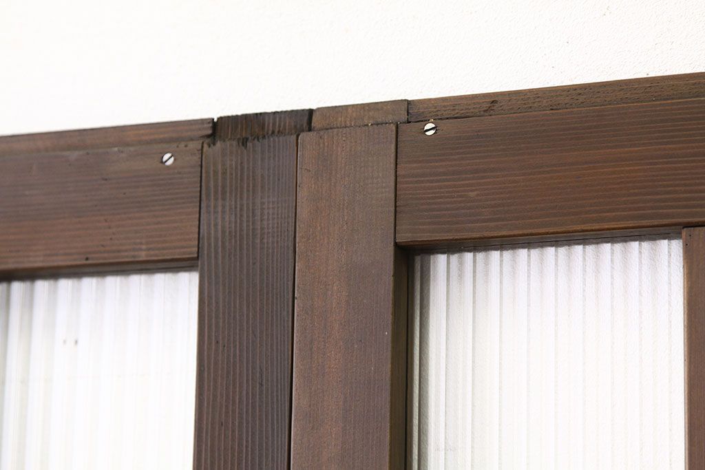 アンティーク 古い木のモールガラス格子戸2枚セット(ガラス戸・引き戸)