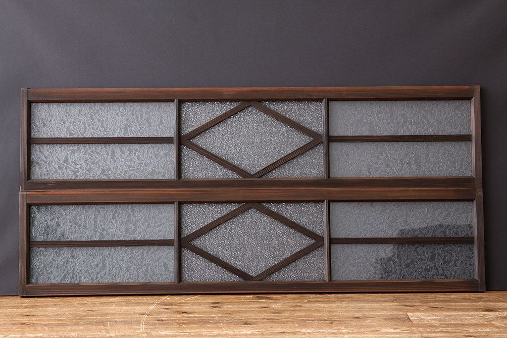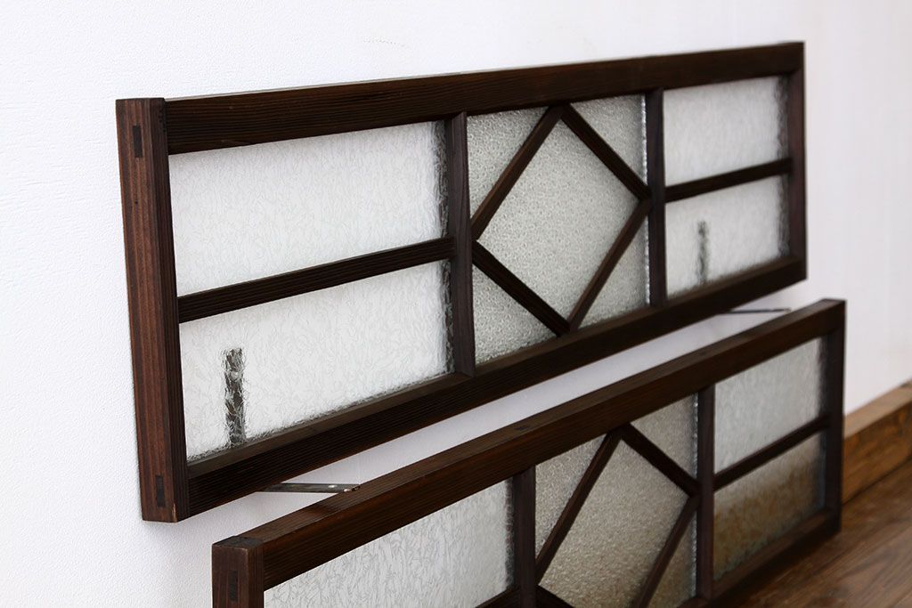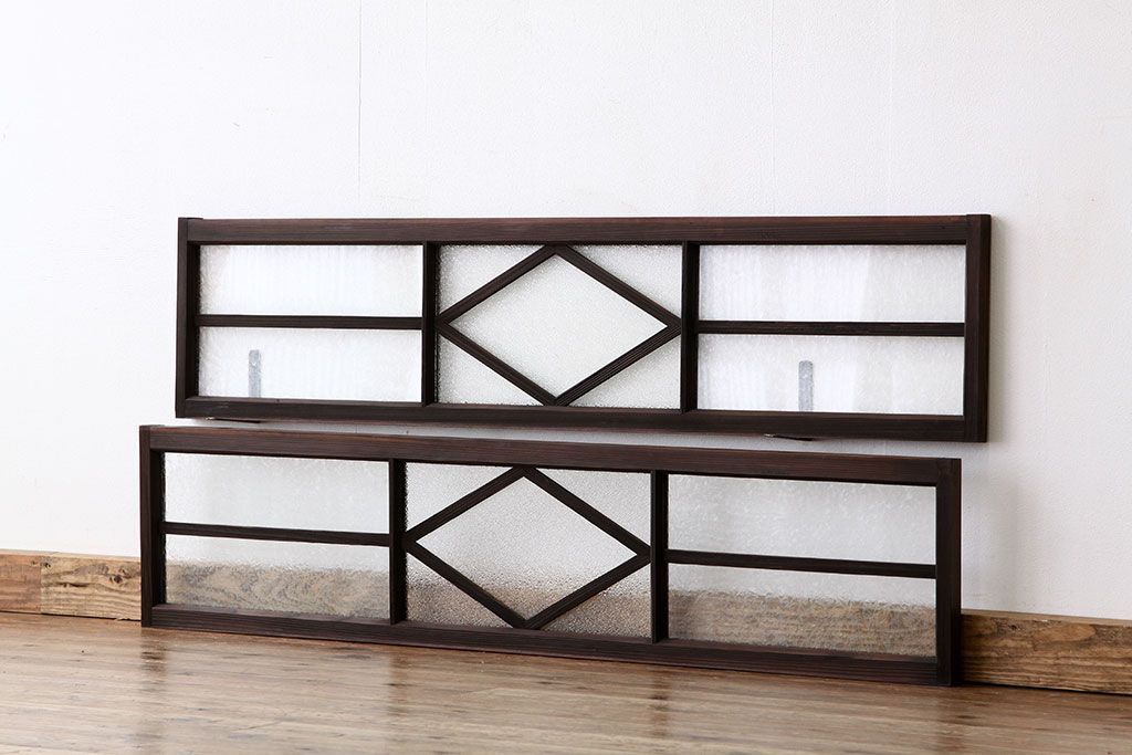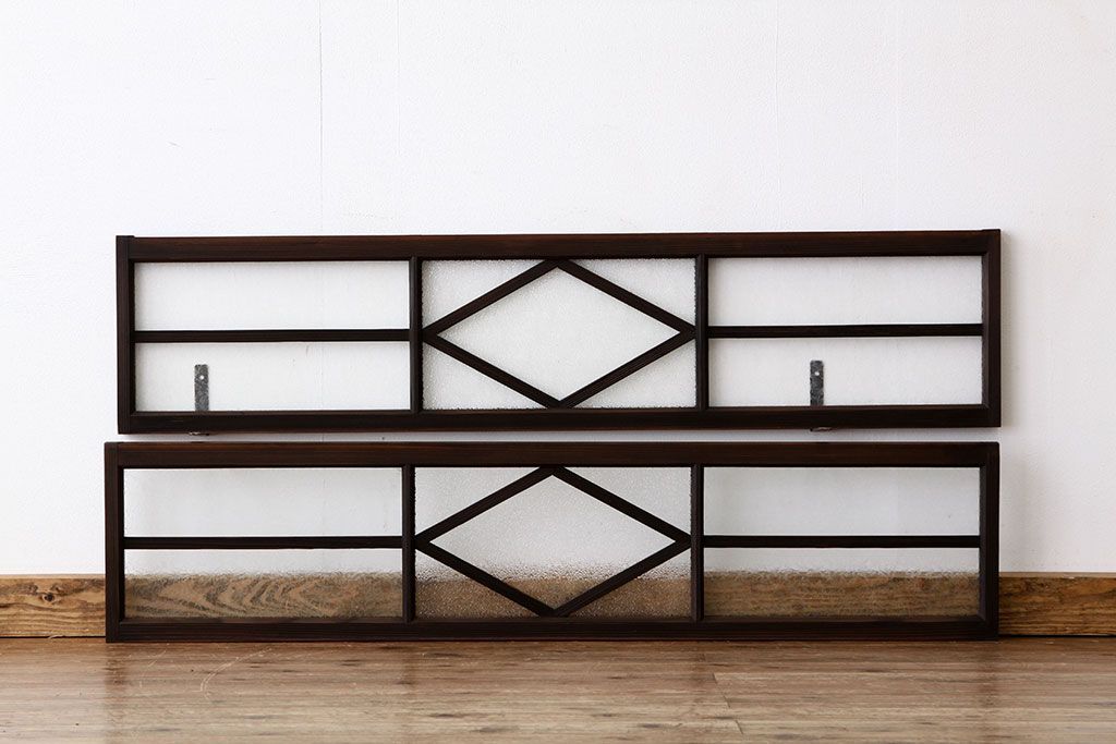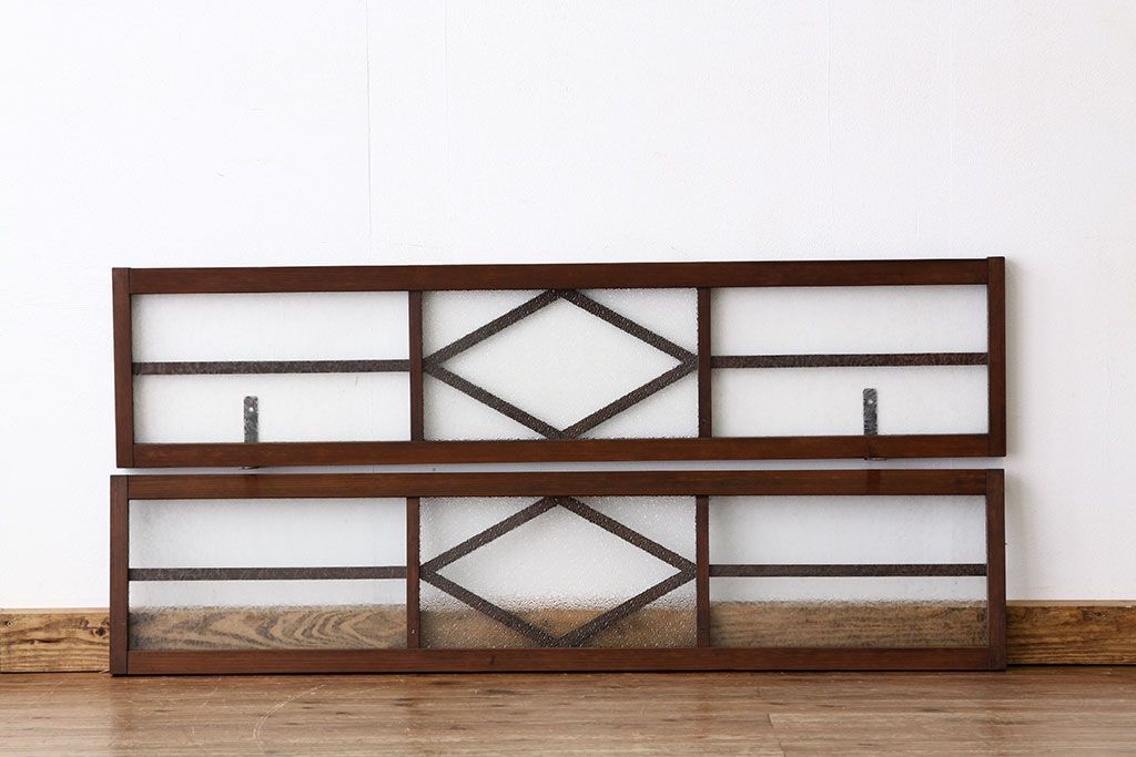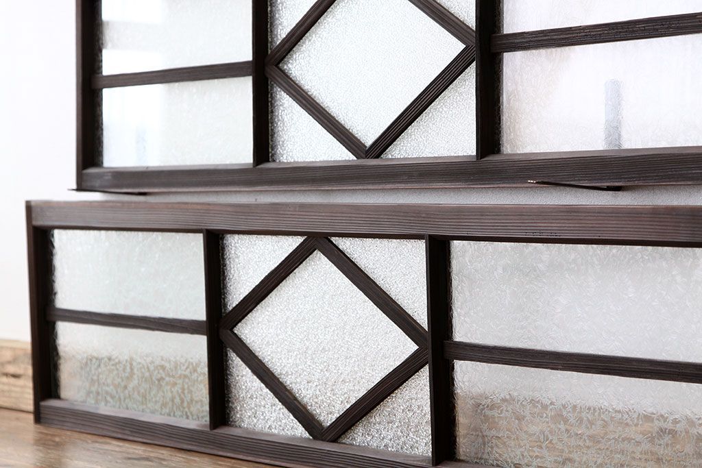 ドア・建具 > 素敵なデザイン 菱型の大正ロマンダイヤガラス・結霜ガラス明り取り2枚セット(ランマ・欄間)