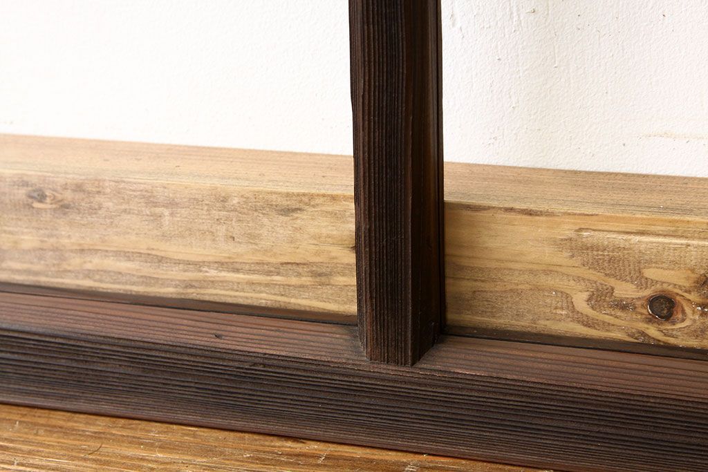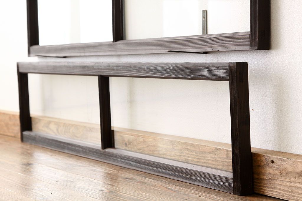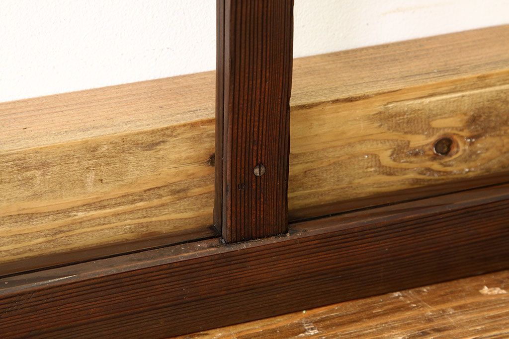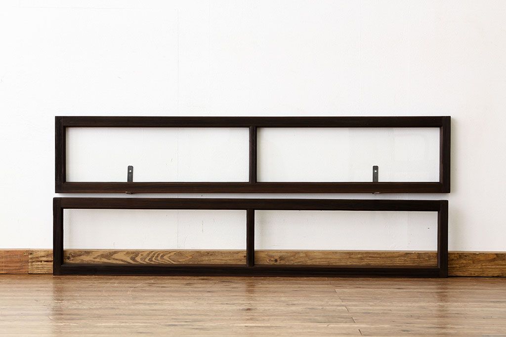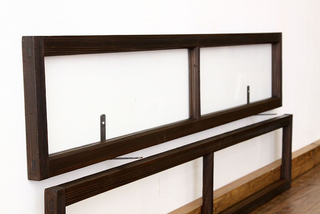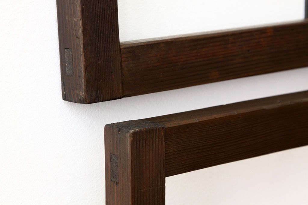 アンティーク 古い木のシンプルな明り取り2枚セット(3)(ガラス戸・欄間)です。