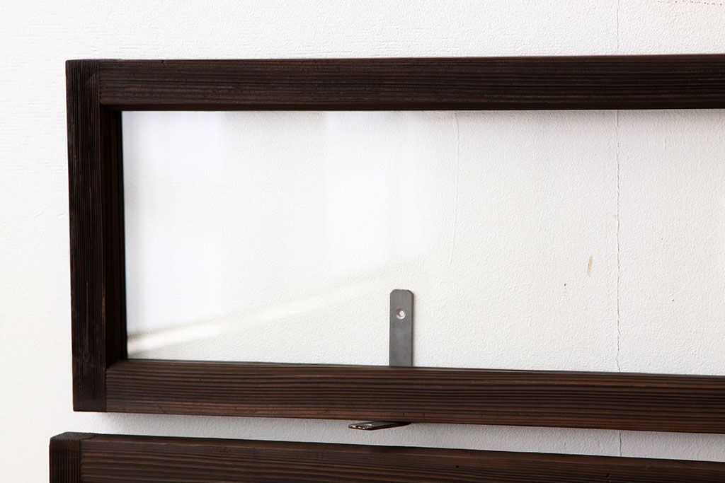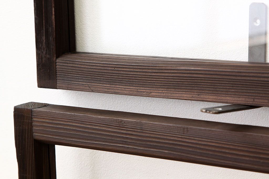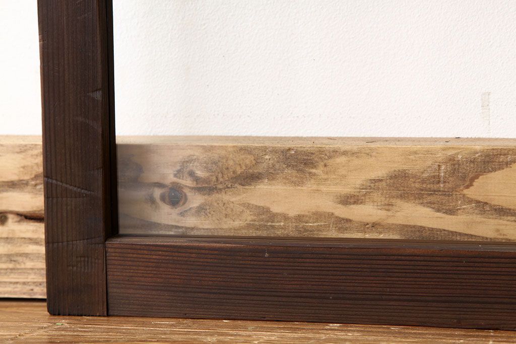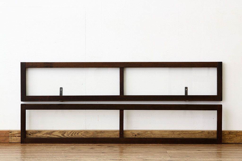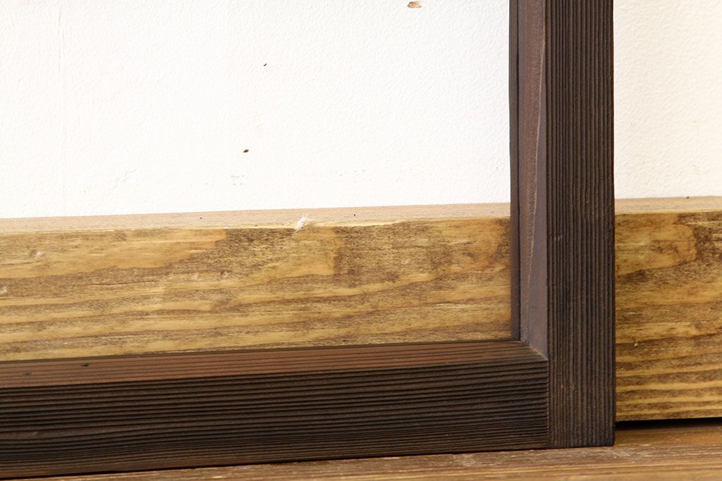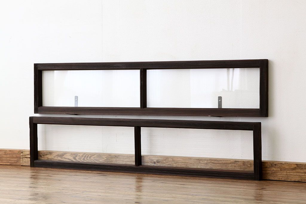 アンティーク 古い木のシンプルな明り取り2枚セット(3)(ガラス戸・欄間)です。