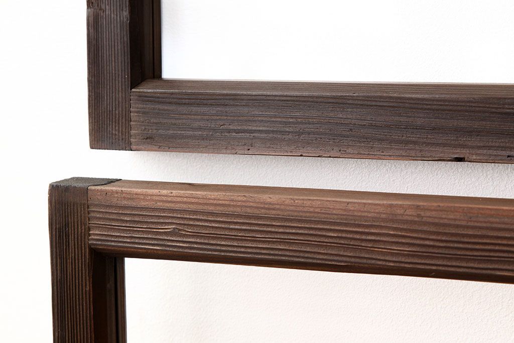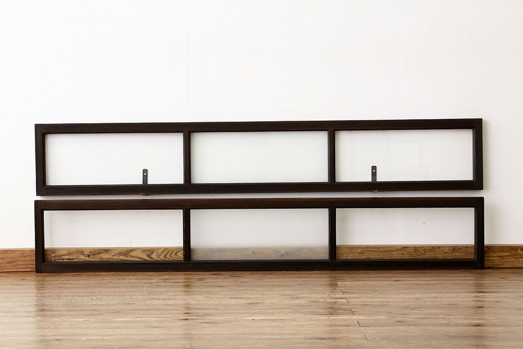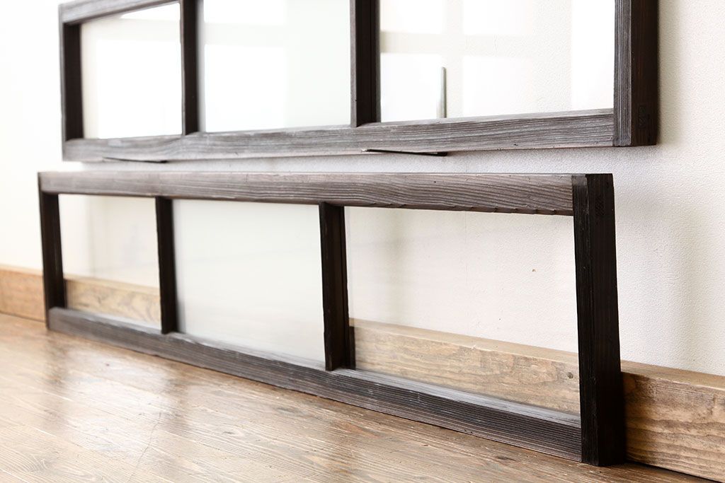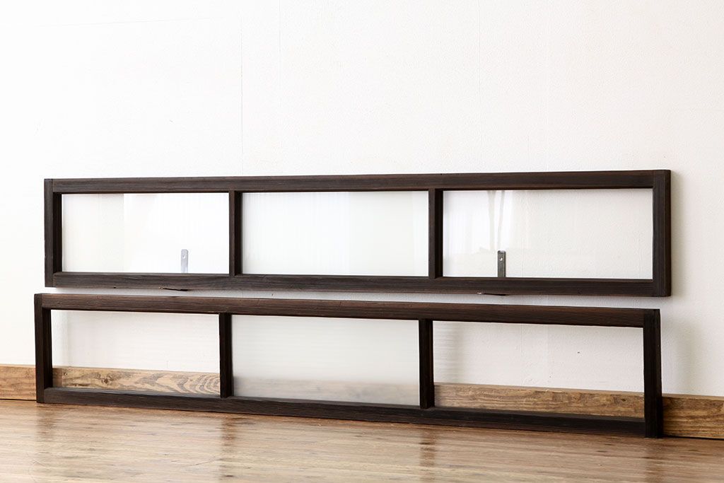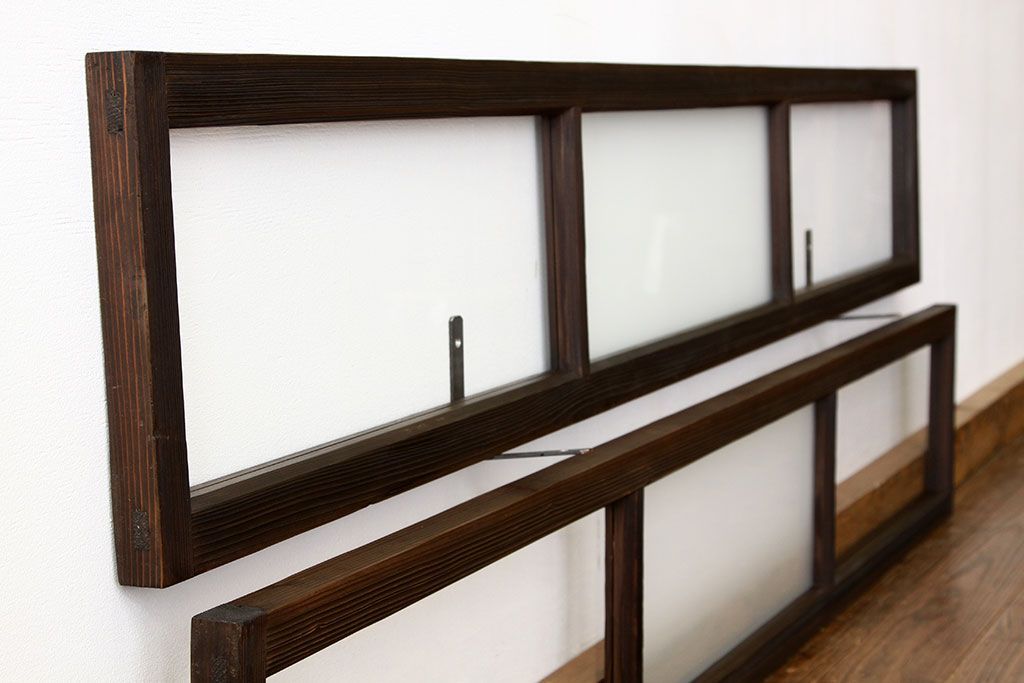 アンティーク 古い木のシンプルな明り取り2枚セット?(ガラス戸・欄間)です。