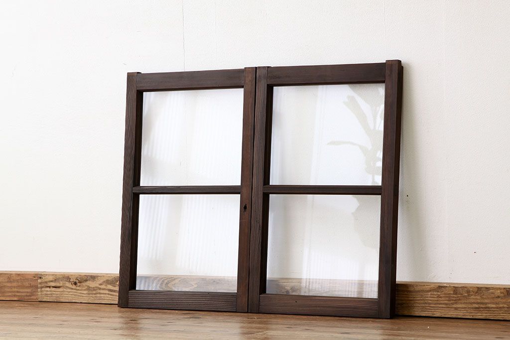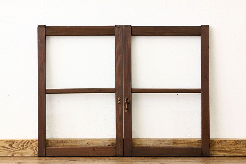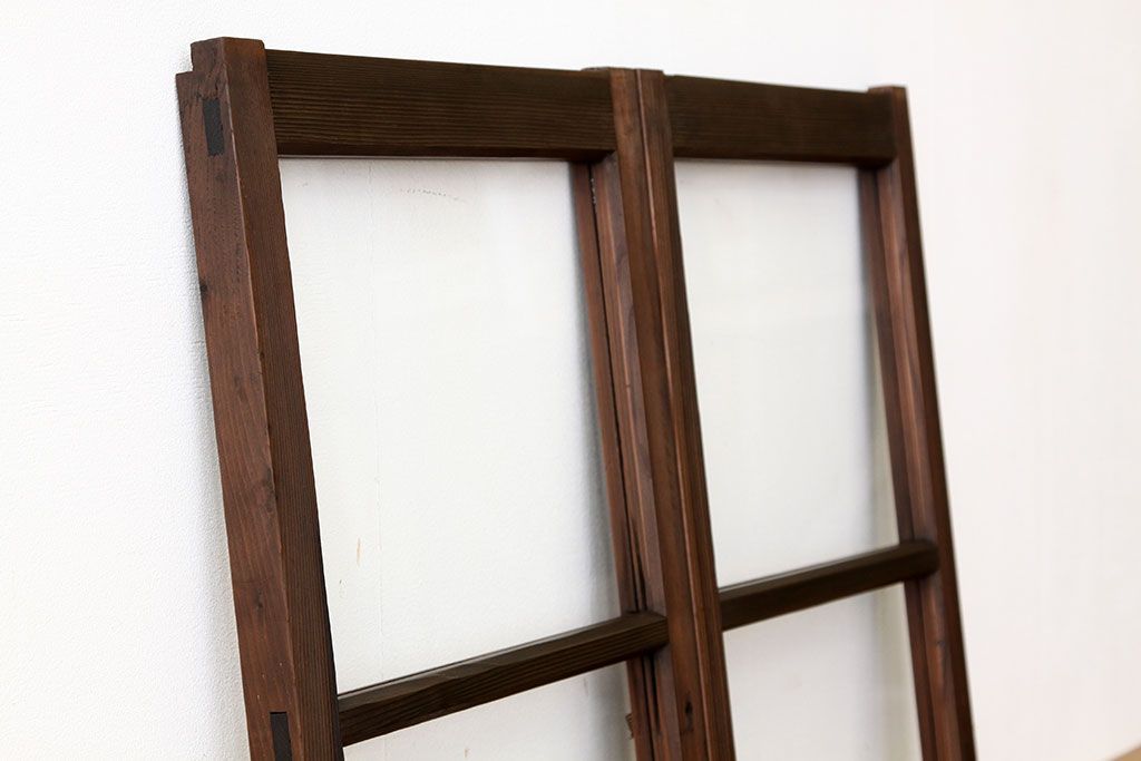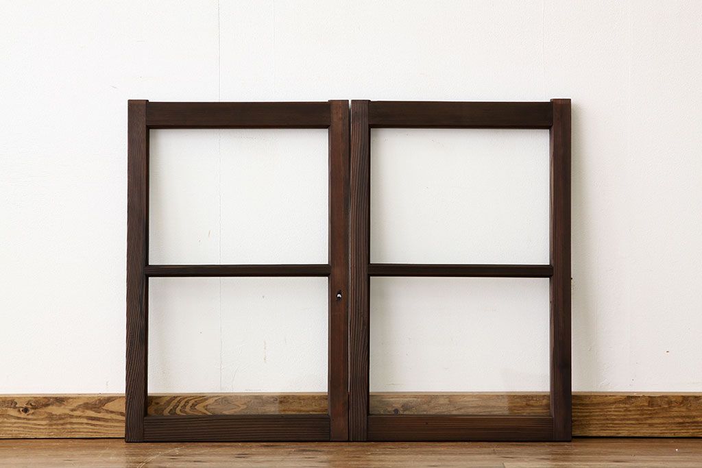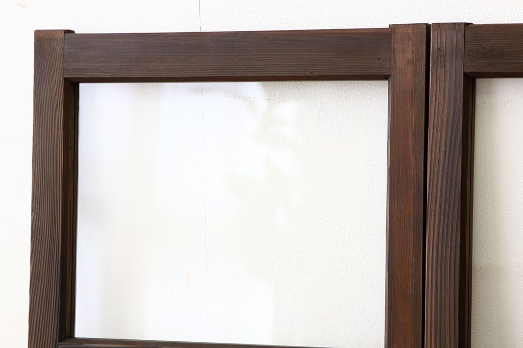 アンティーク 古い木の小さなガラス戸2枚(引き戸)