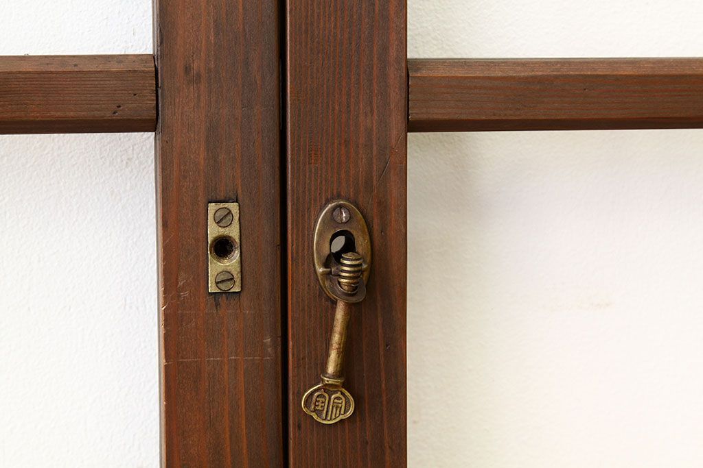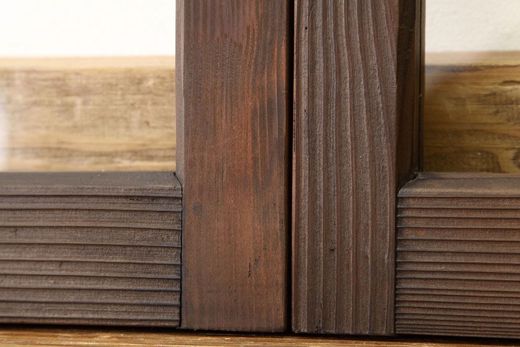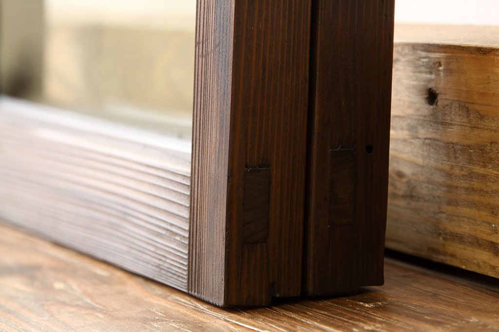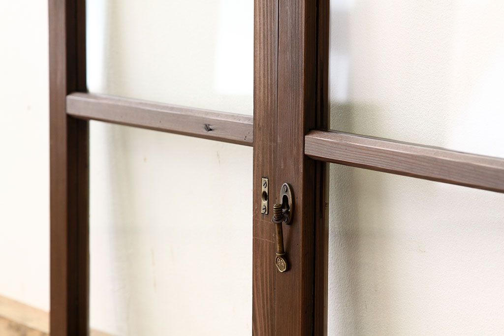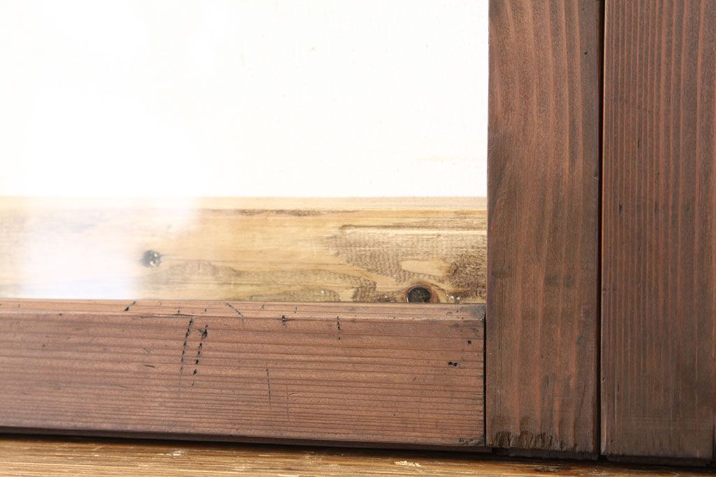アンティーク 古い木の小さなガラス戸2枚(引き戸)