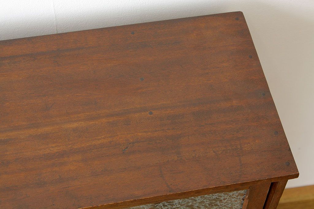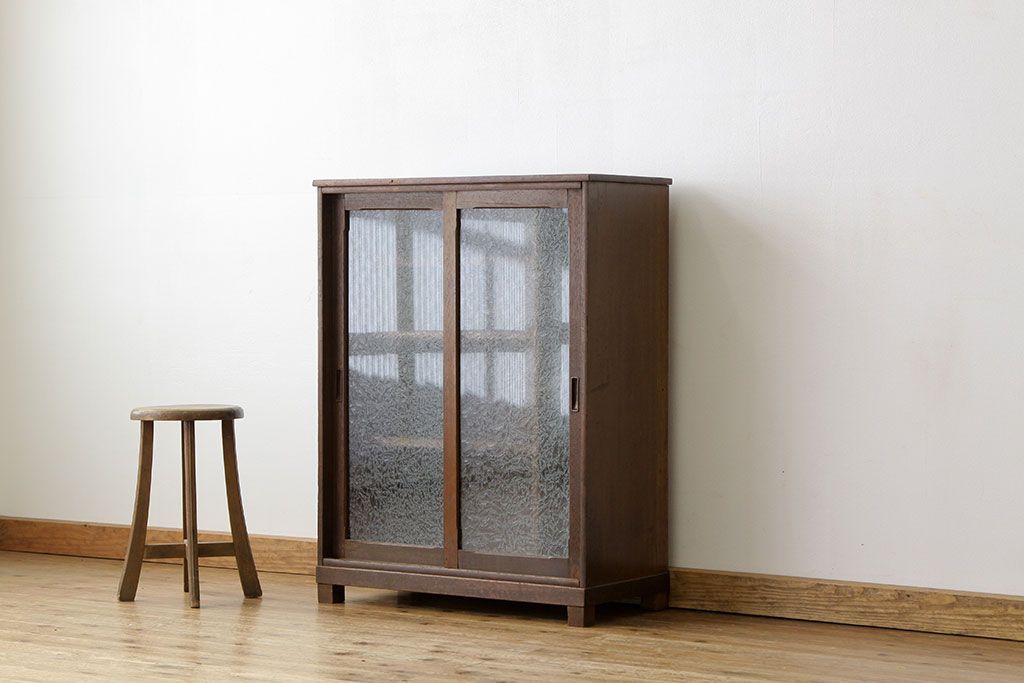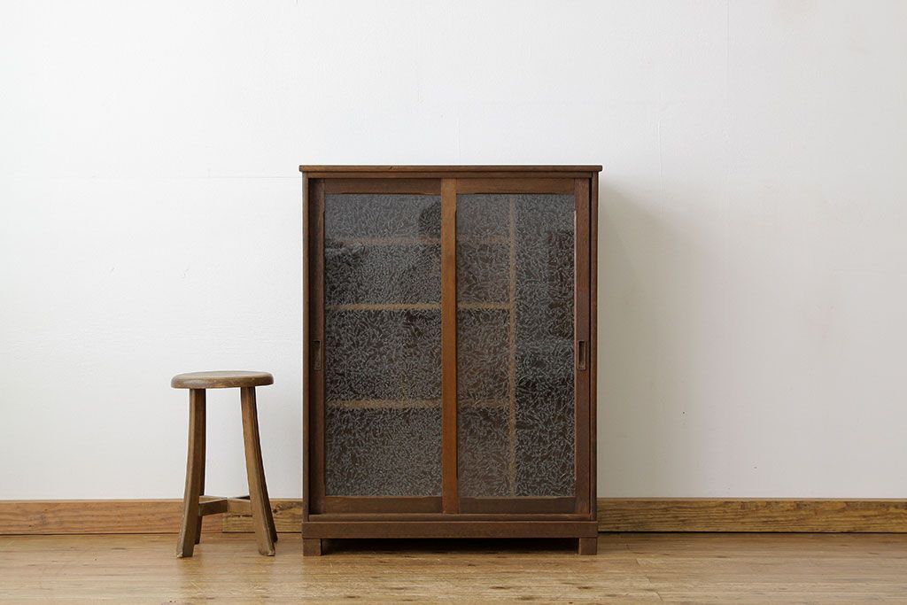 アンティーク古い無垢板の結霜ガラスの下駄箱(収納棚)です。
