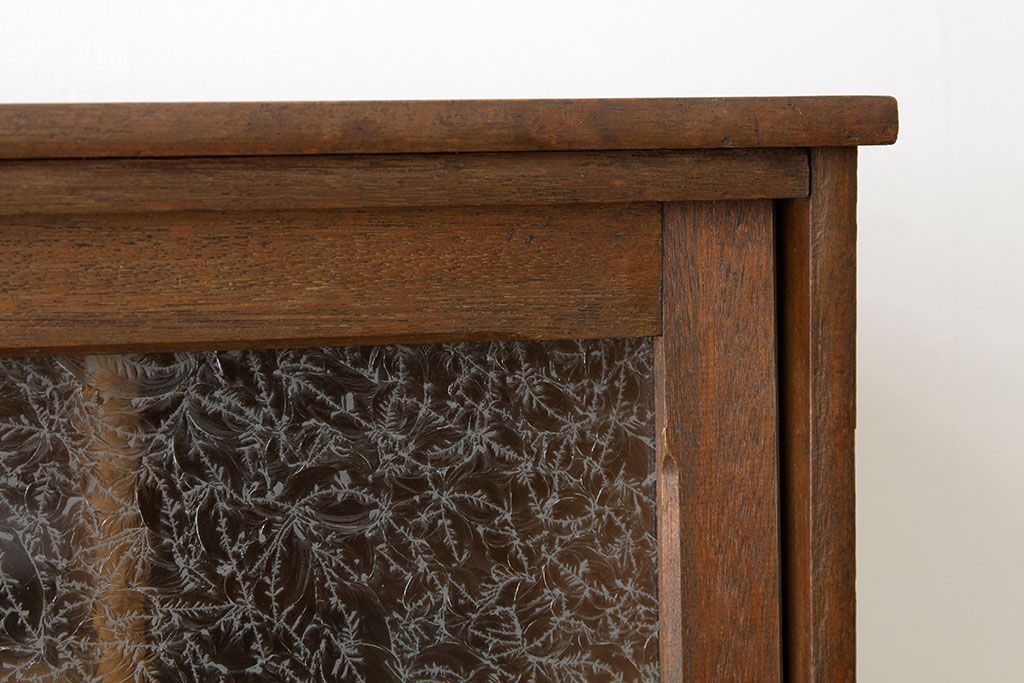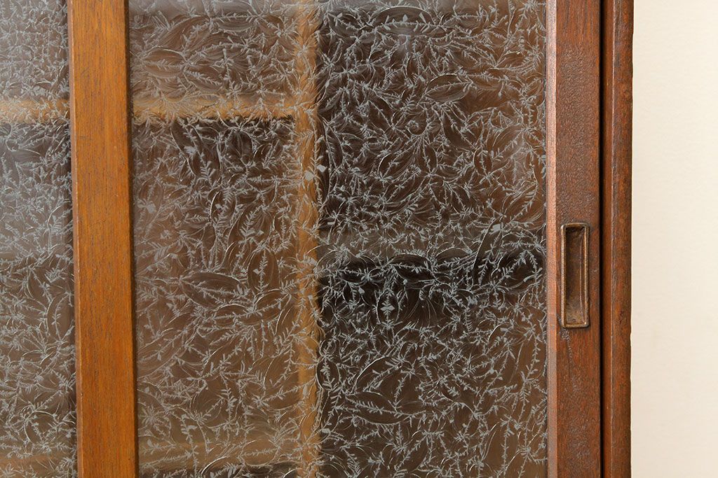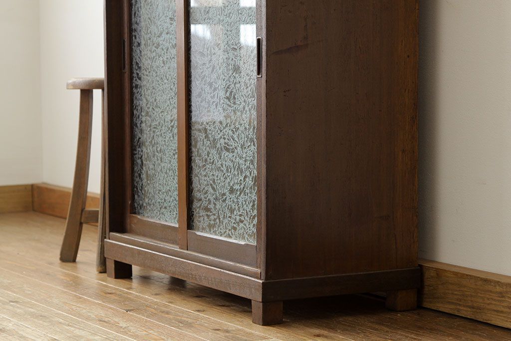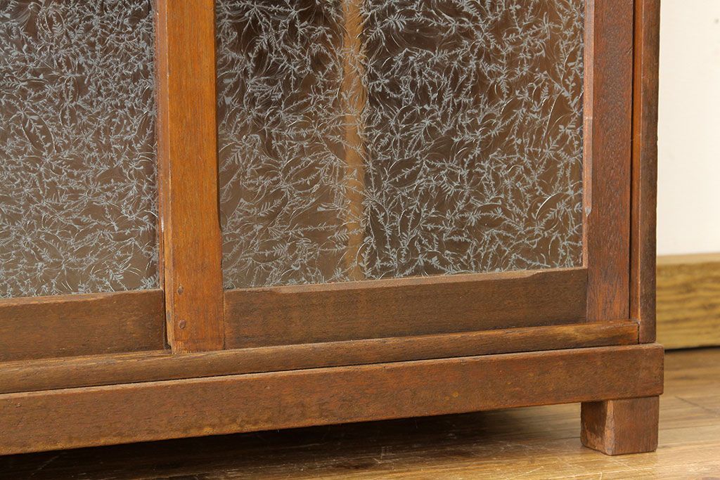 アンティーク家具 アンティーク古い無垢板の結霜ガラスの下駄箱(収納棚)
