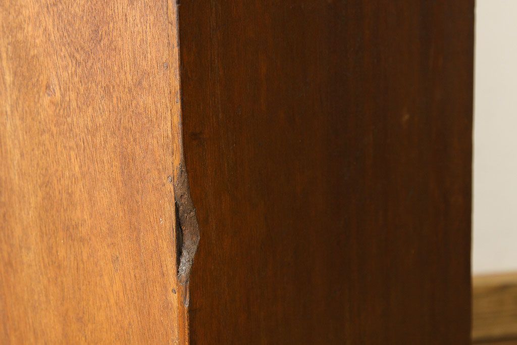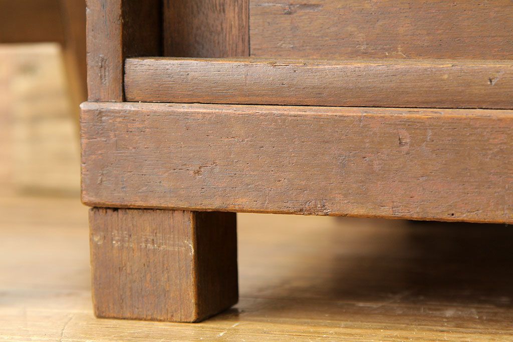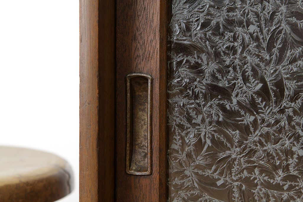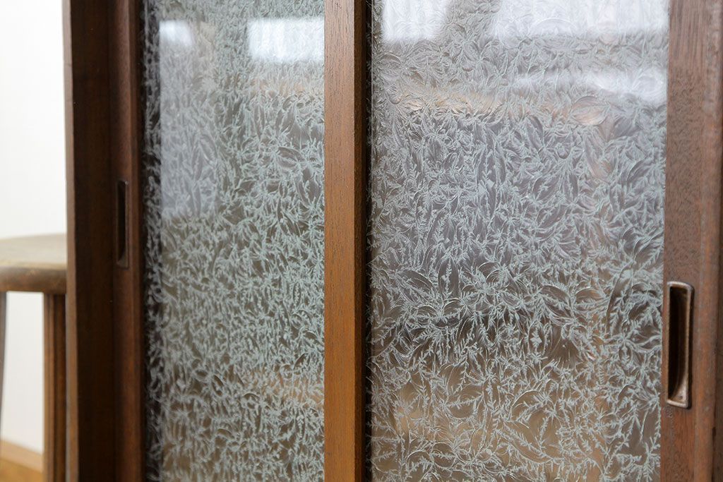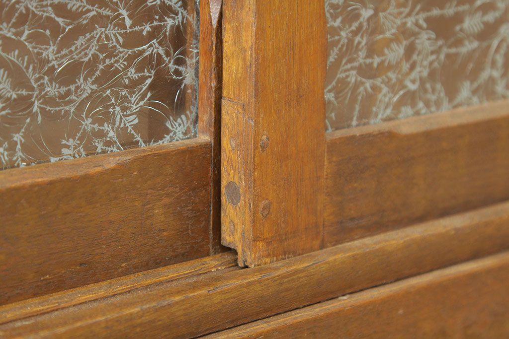 アンティーク家具 アンティーク古い無垢板の結霜ガラスの下駄箱(収納棚)
