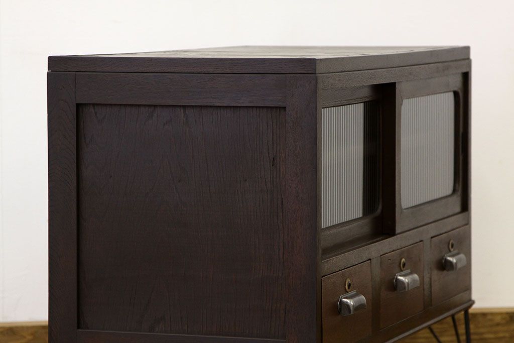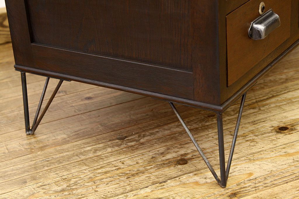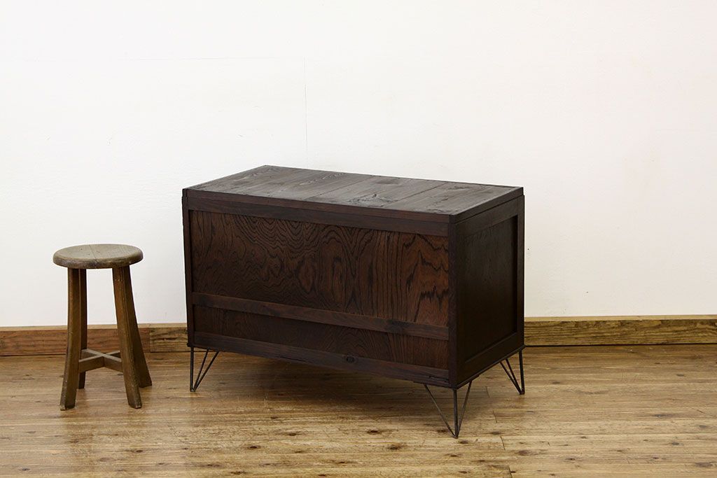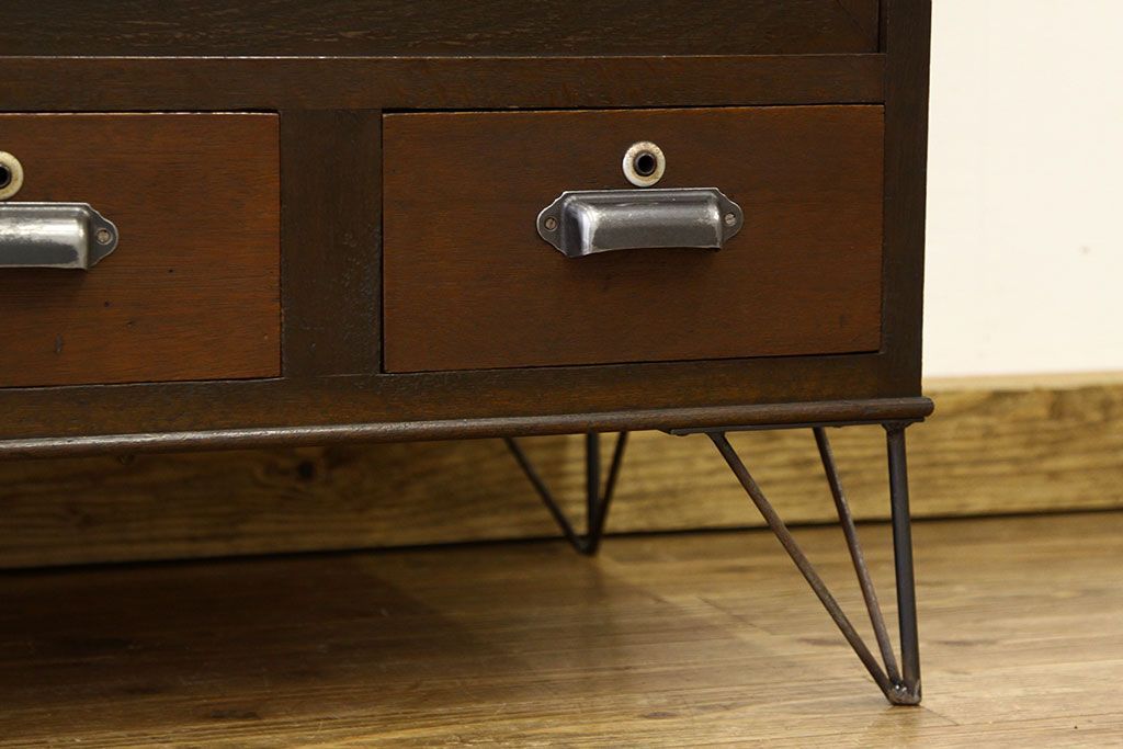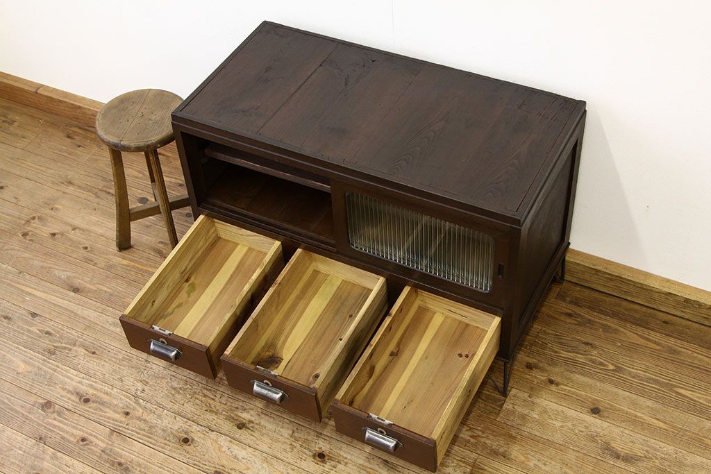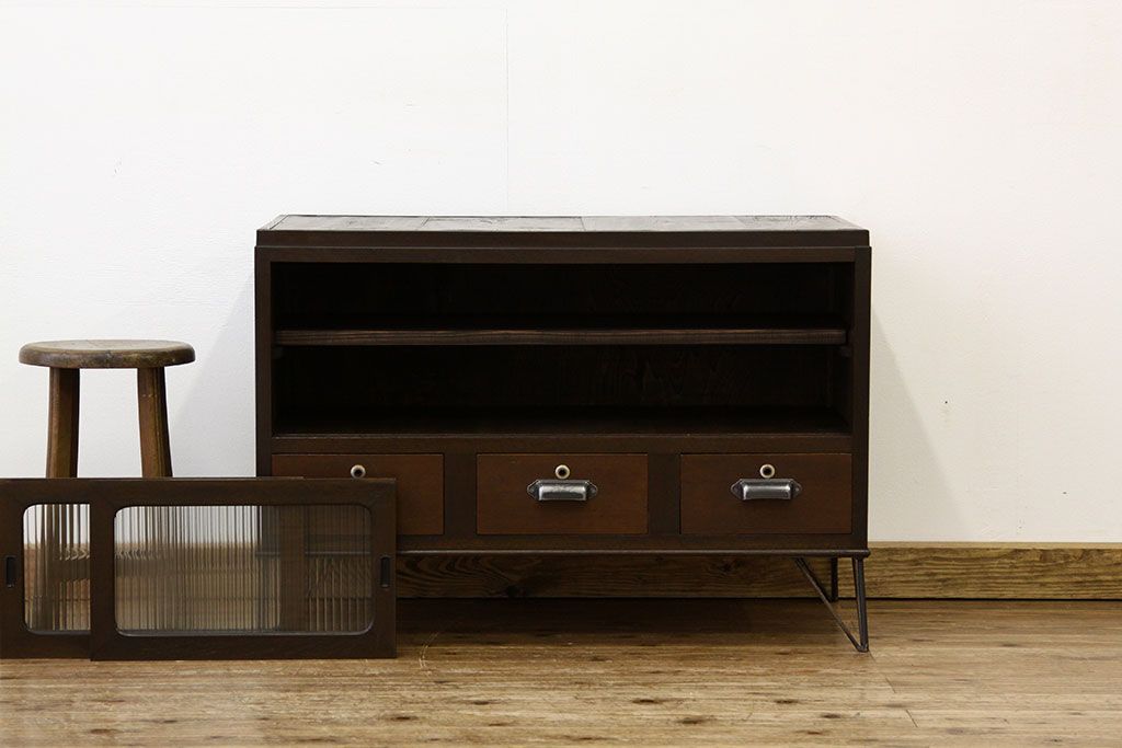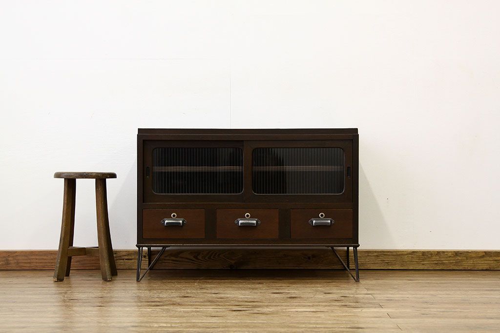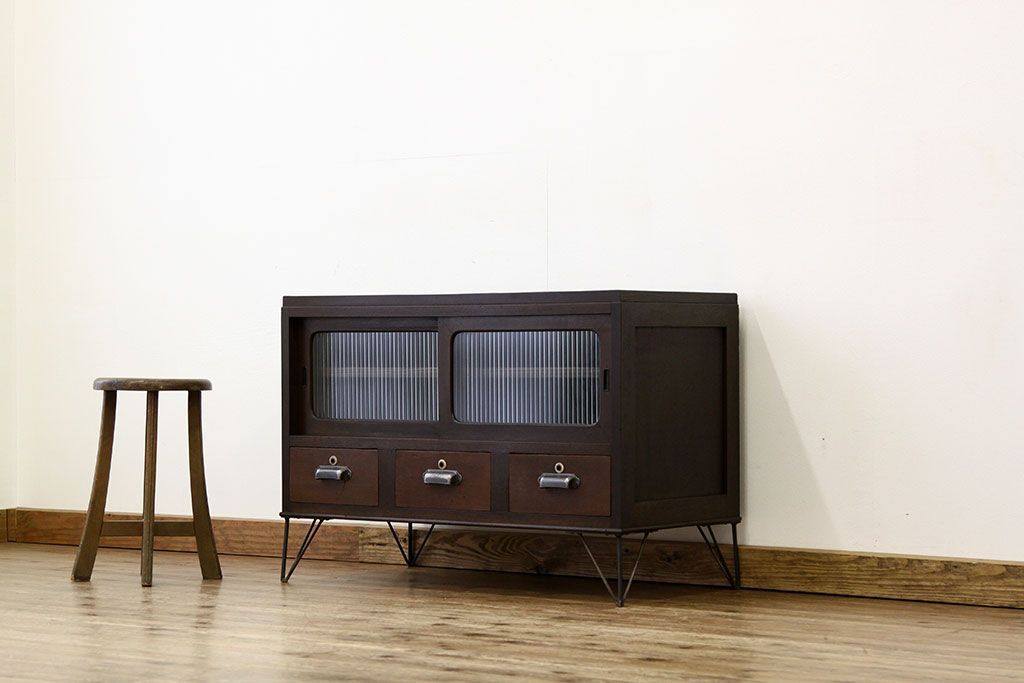 鉄脚付きモールガラスローボード(アイアン レトロ 箪笥 チェスト)です。
