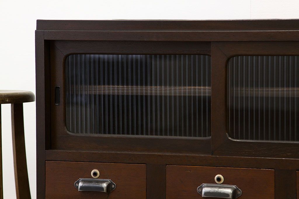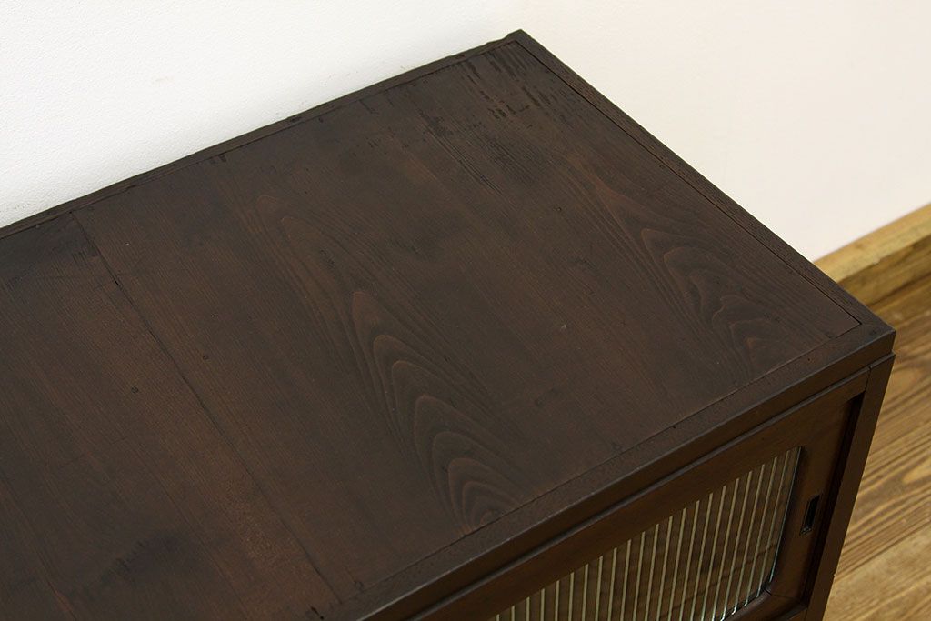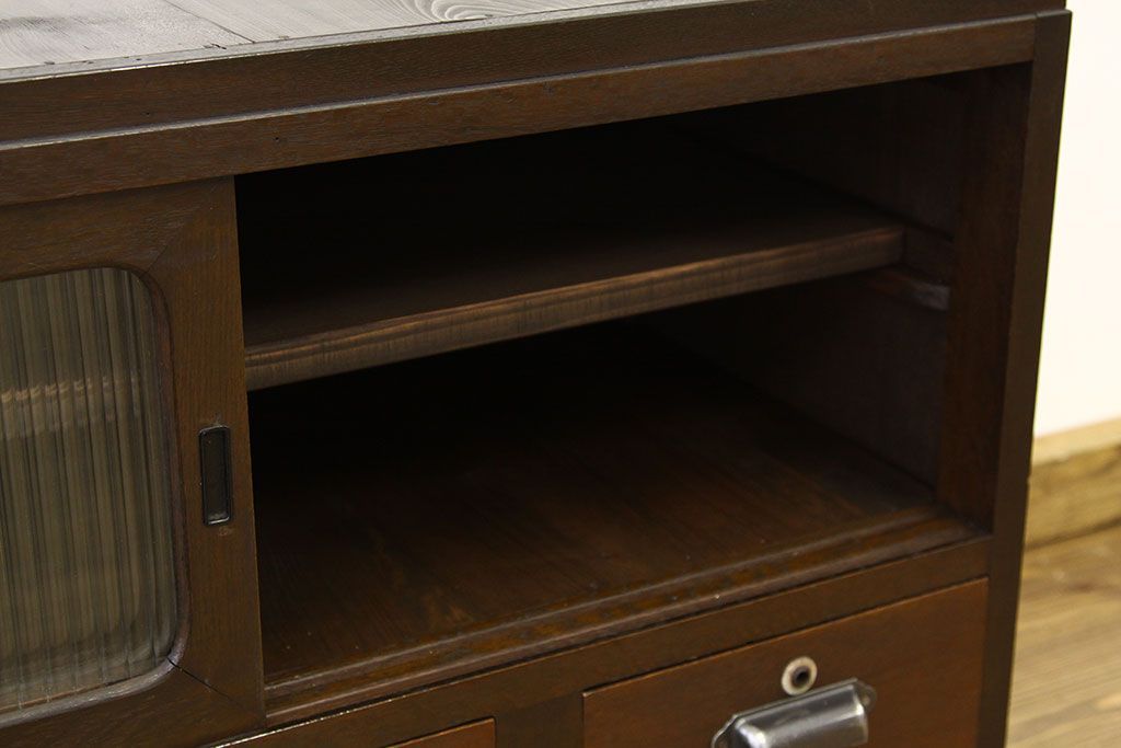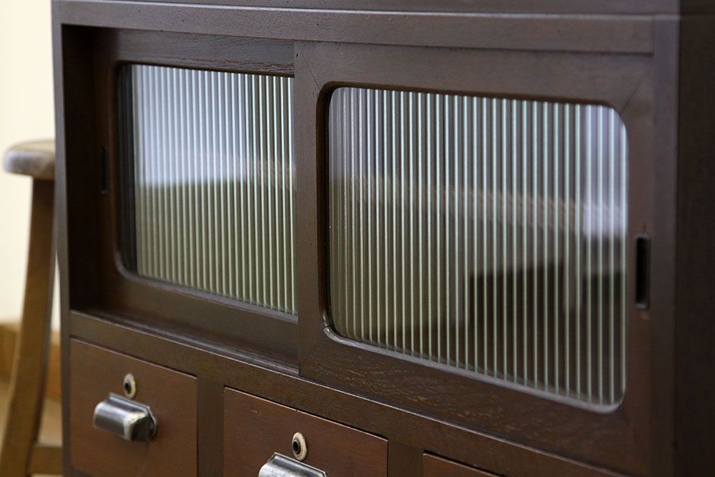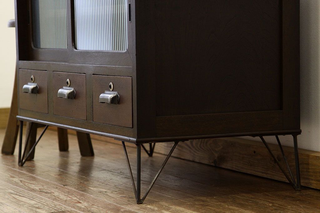 和箪笥 > レトロ家具 鉄脚付きモールガラスローボード(アイアン レトロ 箪笥 チェスト)