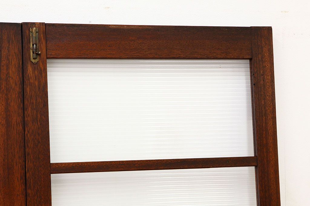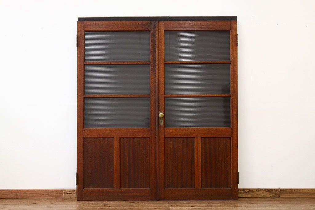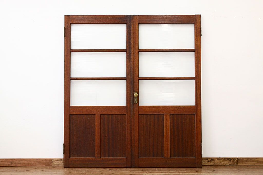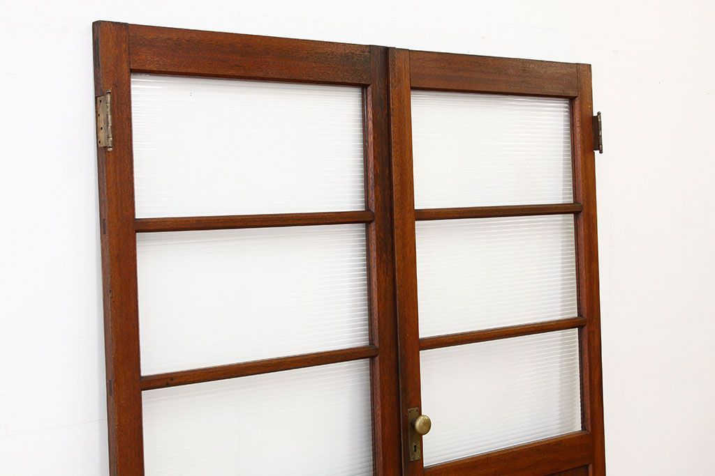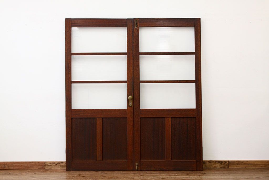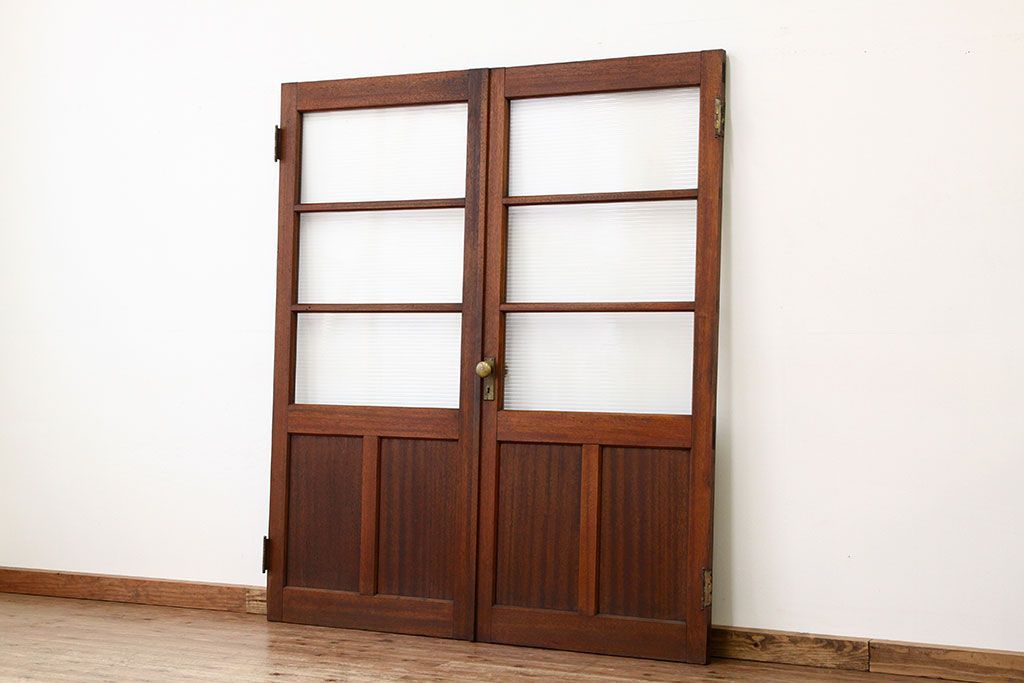 アンティーク 古い木のモールガラス観音開きドアセット(扉・建具)です。